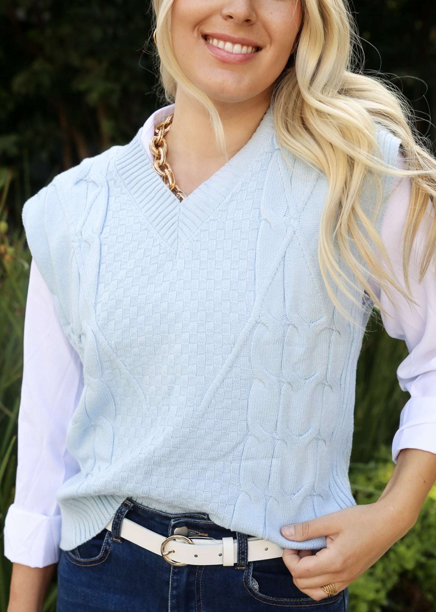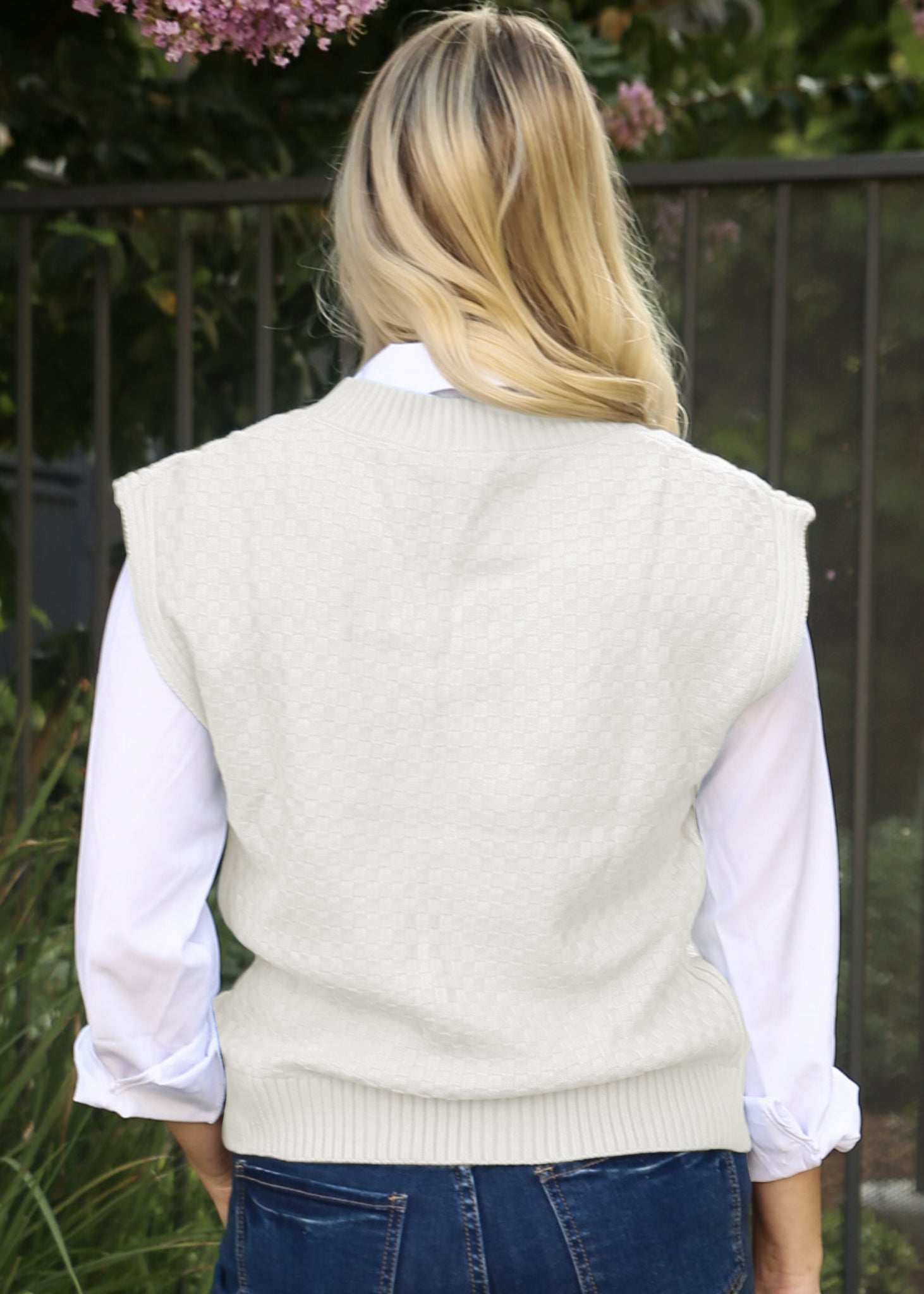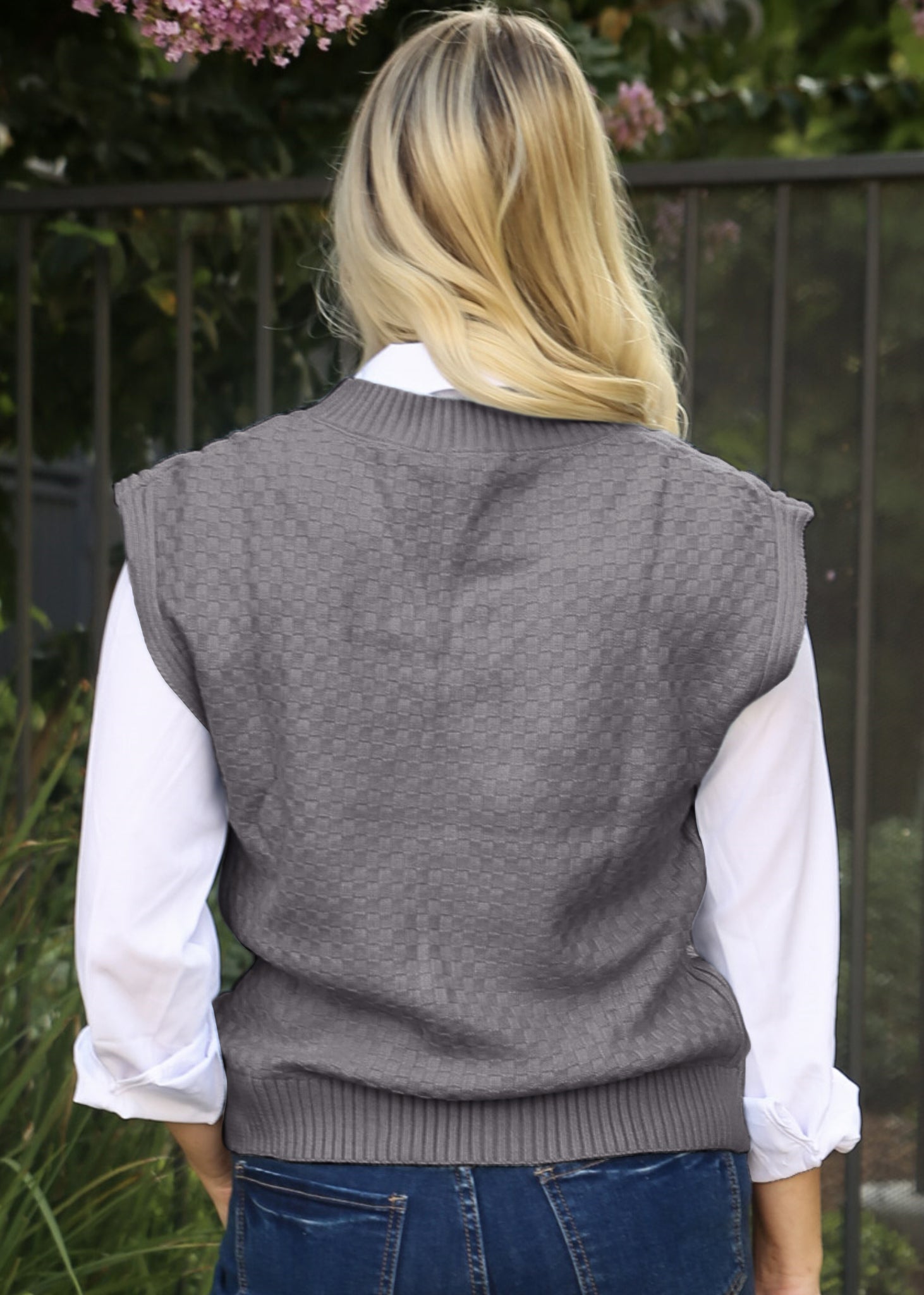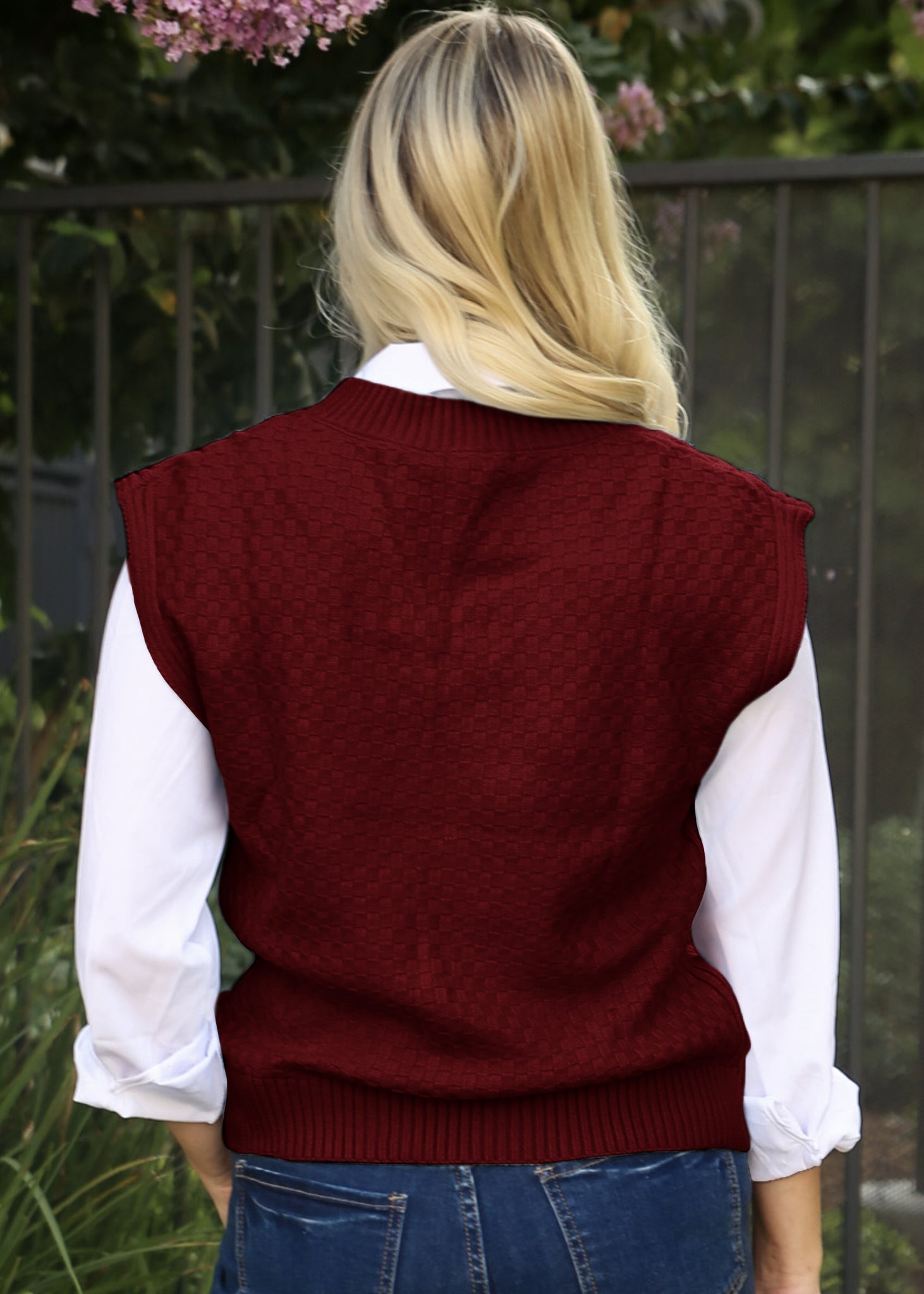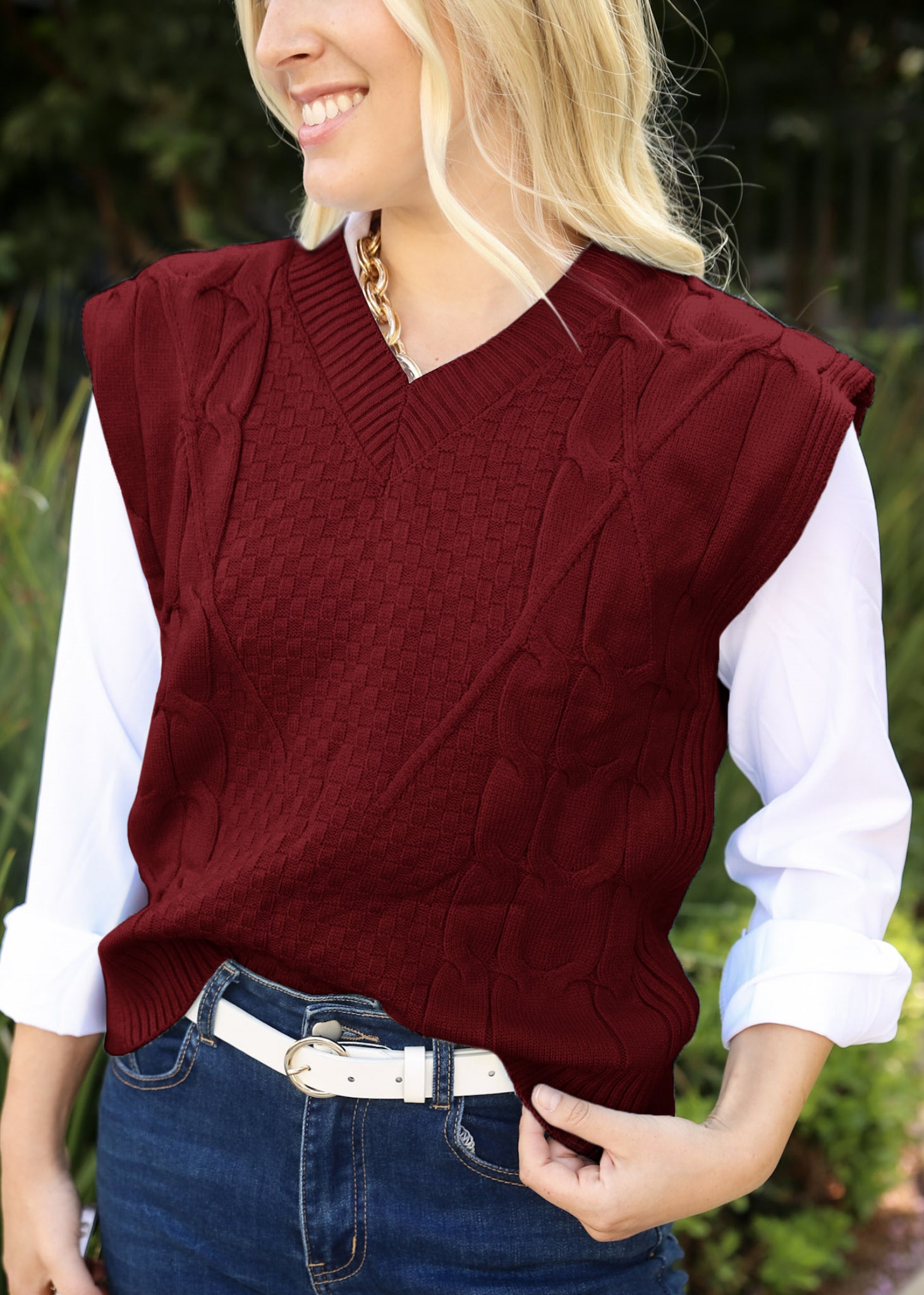 The sweatervest is detailed with a fantastic geometric pattern. Features solid color, v neck line, sleeveless, and regular fit. Layer it over a dress and heels for a preppy look.