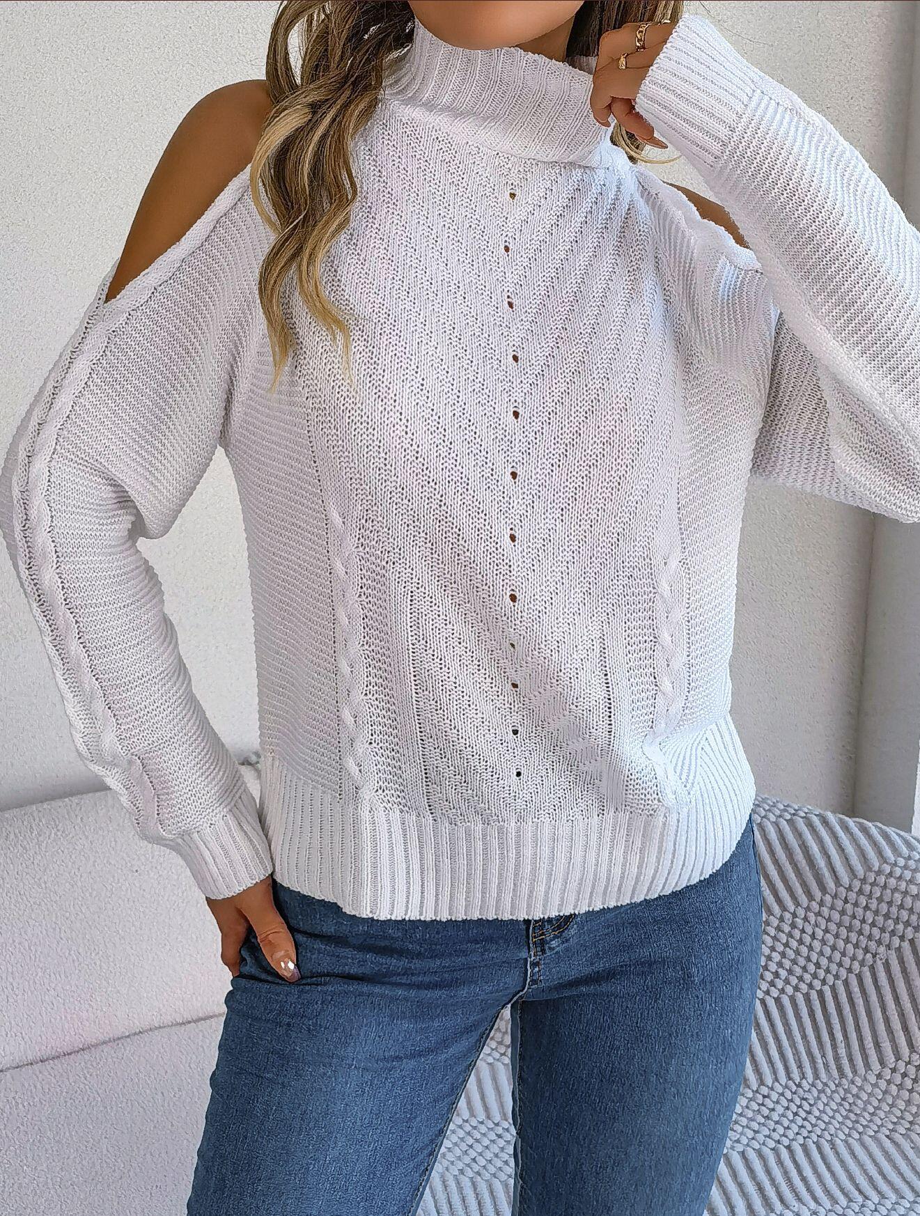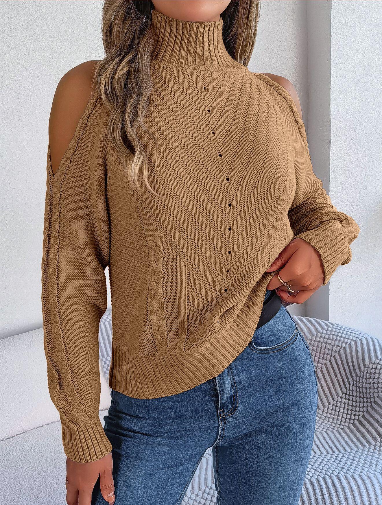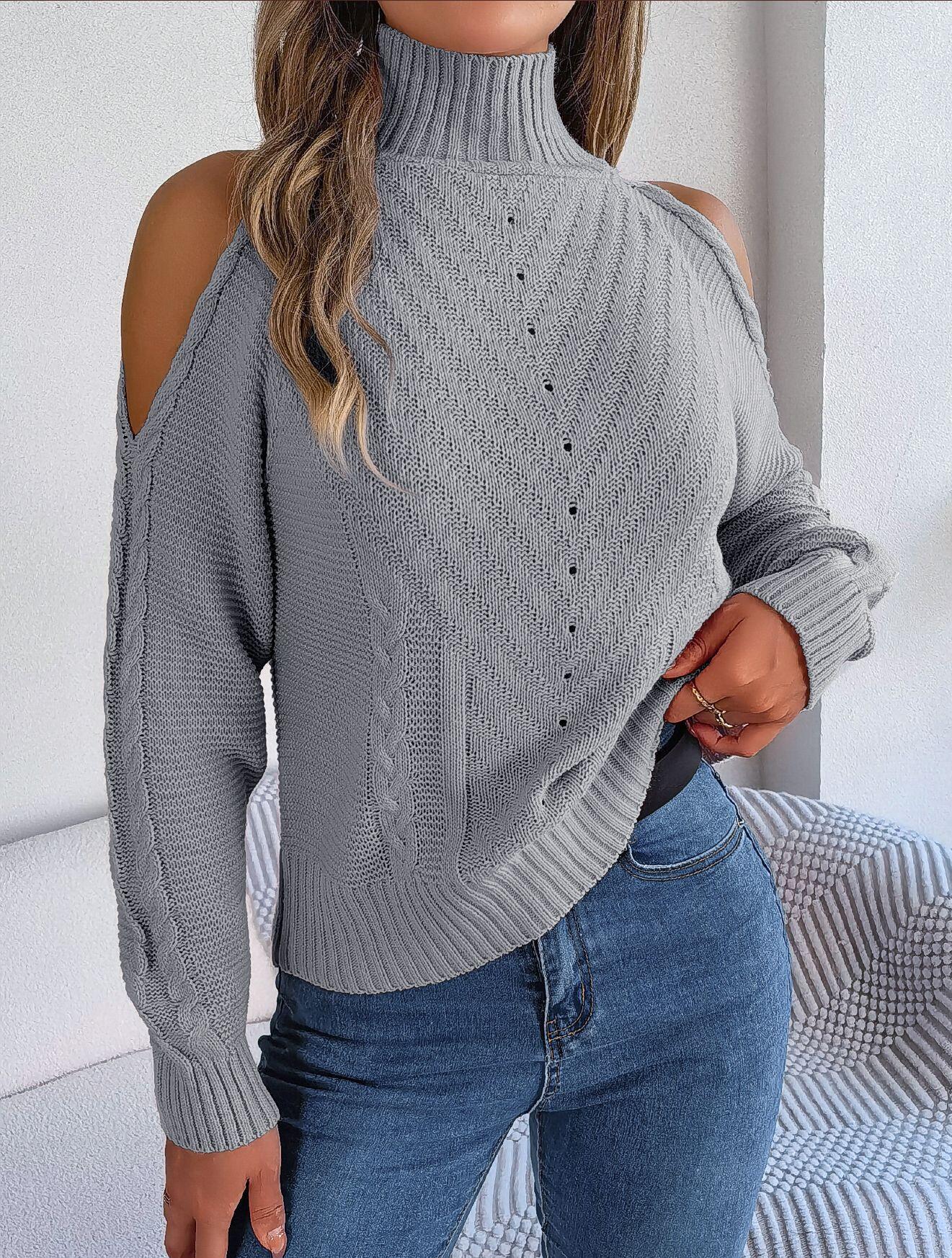 The sweater is detailed with a flirty cold shoulder. Features turtleneck, braided knit design, long sleeves, and regular fit. Pair it with jeans and boots for a cute look.
