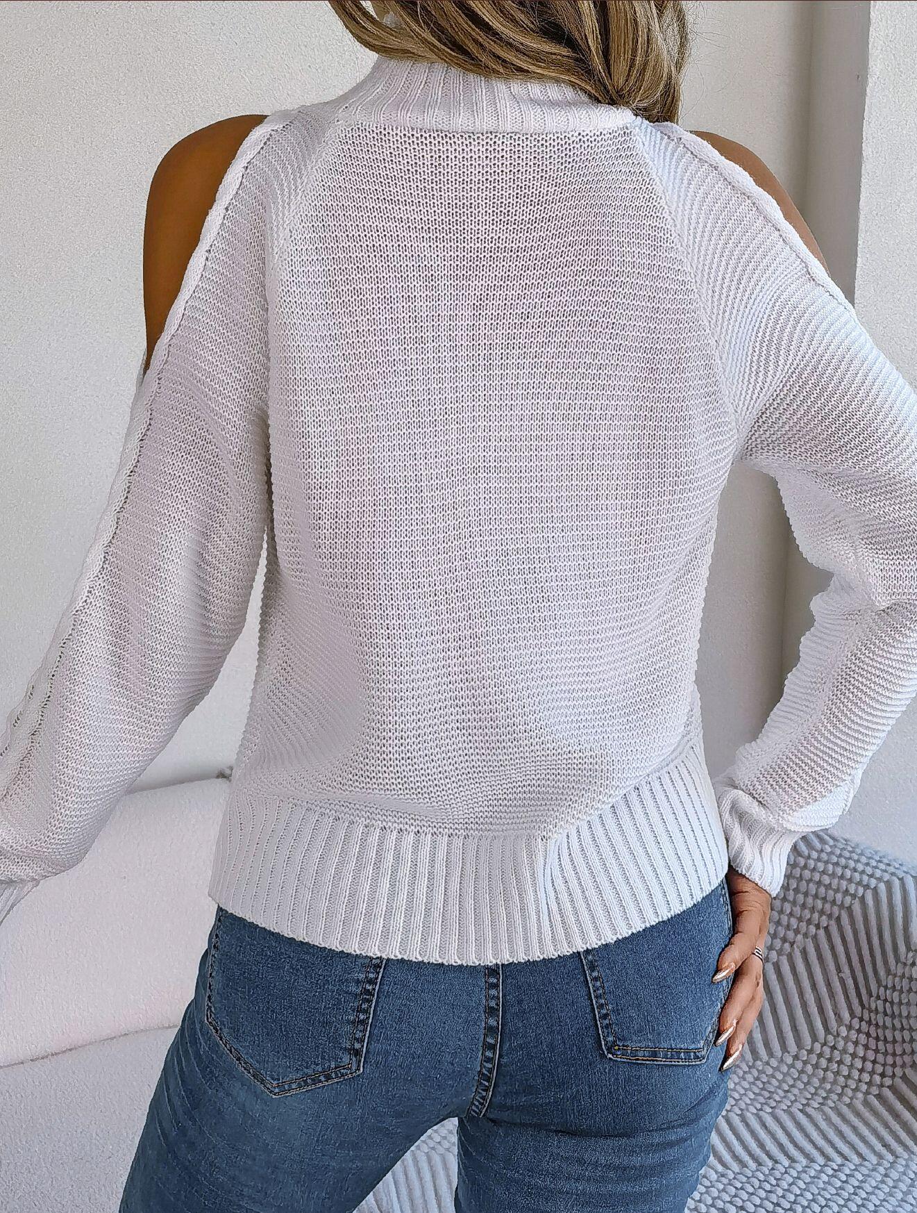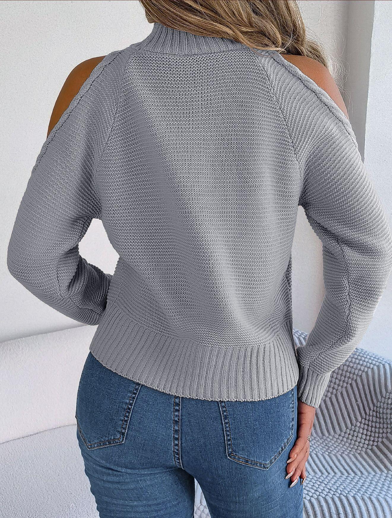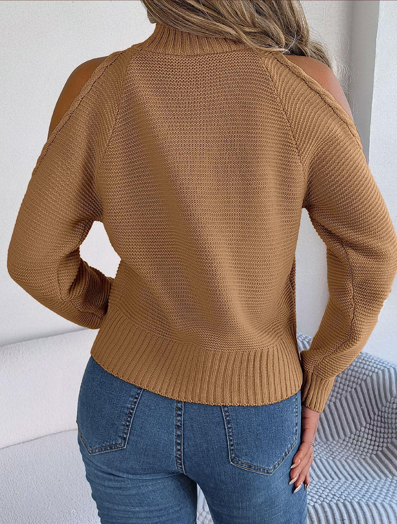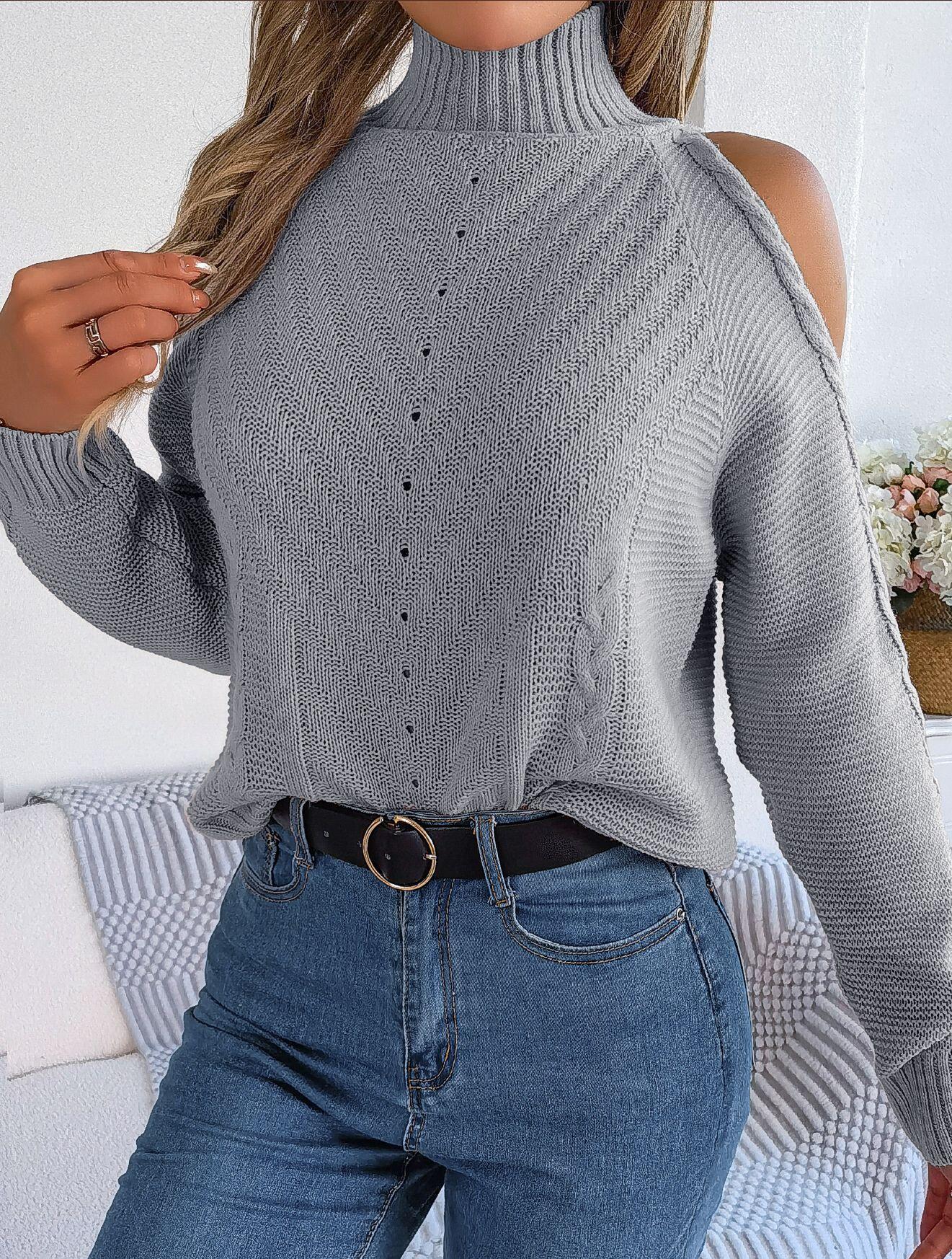 The sweater is detailed with a flirty cold shoulder. Features turtleneck, braided knit design, long sleeves, and regular fit. Pair it with jeans and boots for a cute look.