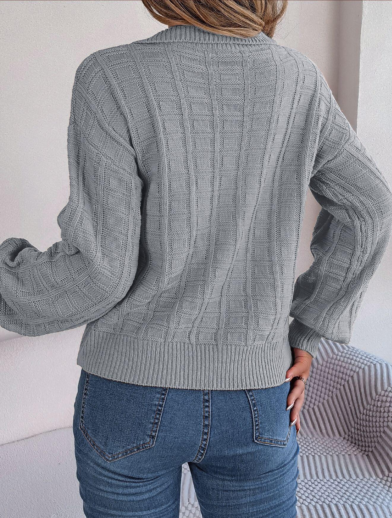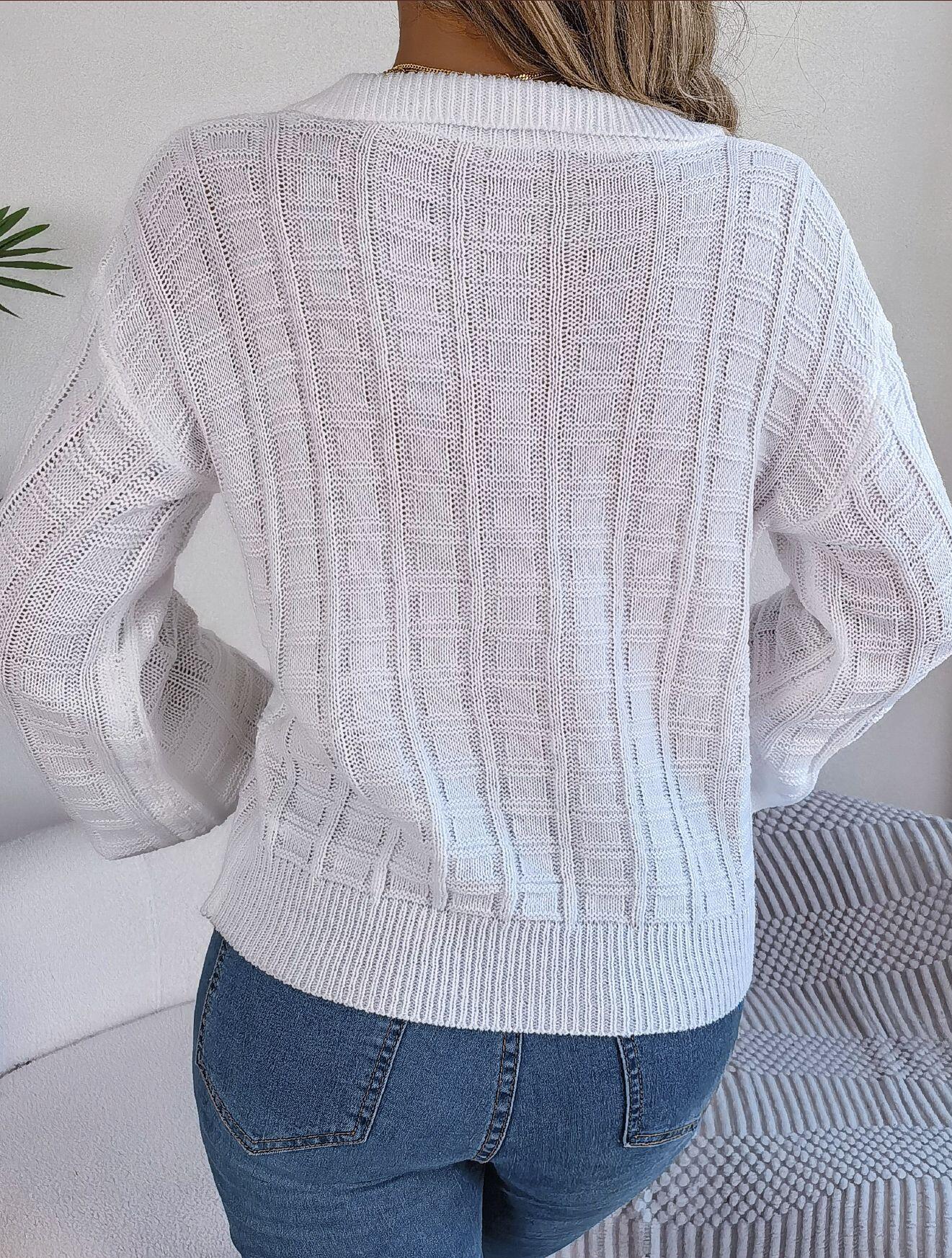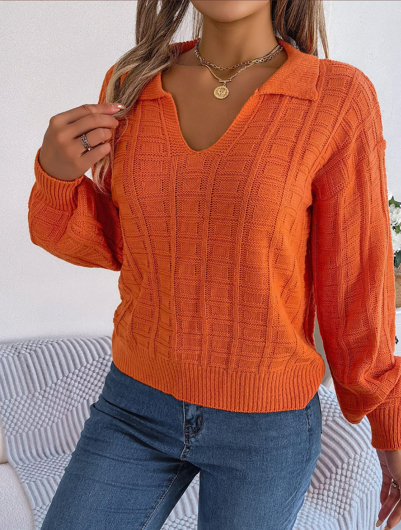 The sweater is detailed with a unique square pattern. Features a collar, drop shoulder, long sleeves, textured knit material, and regular fit. Pair it with flared jeans and boots for a fantastic look.