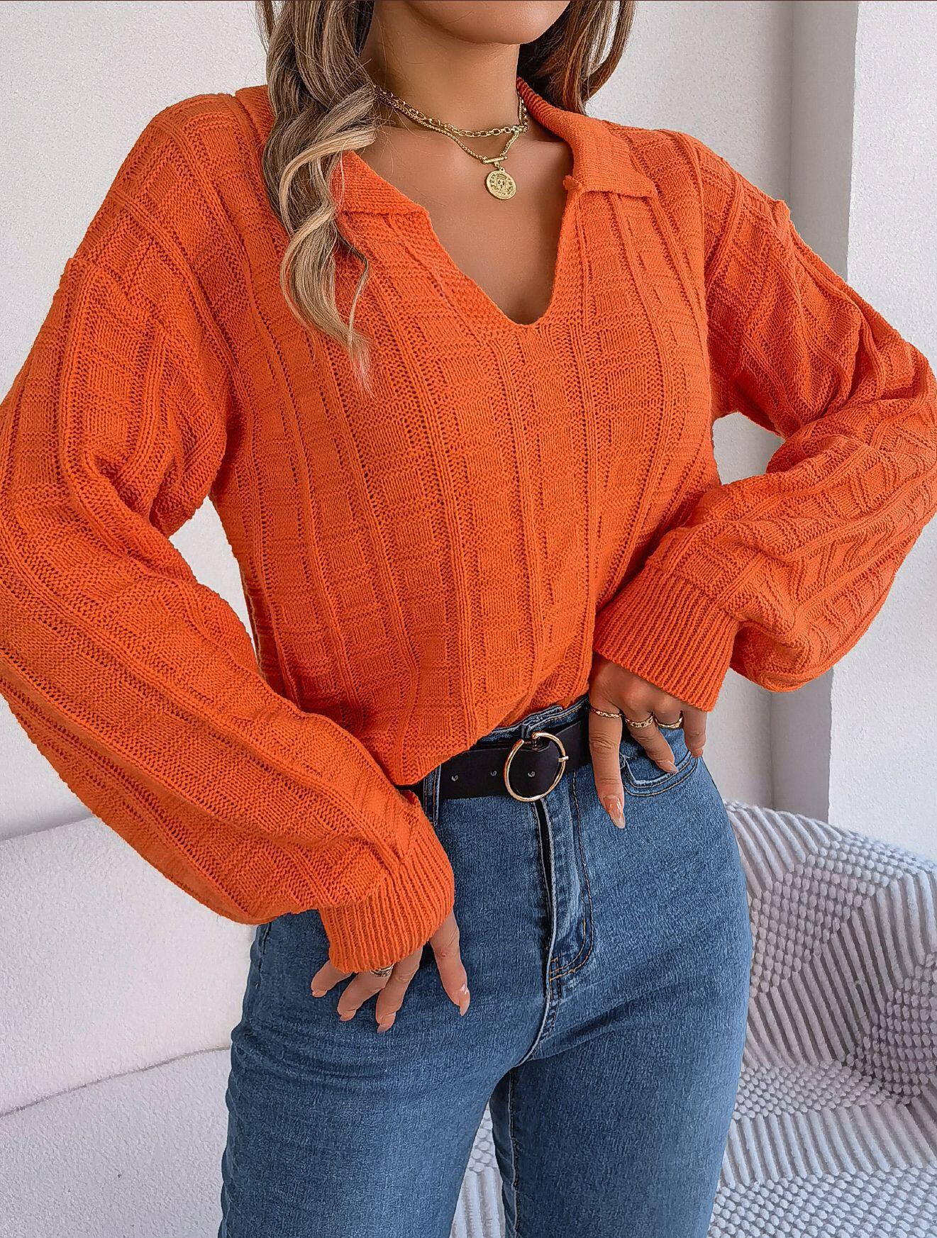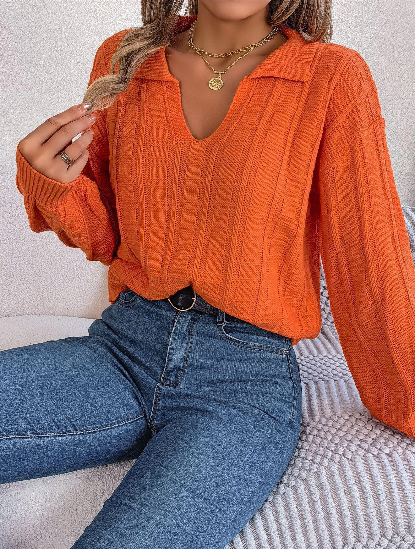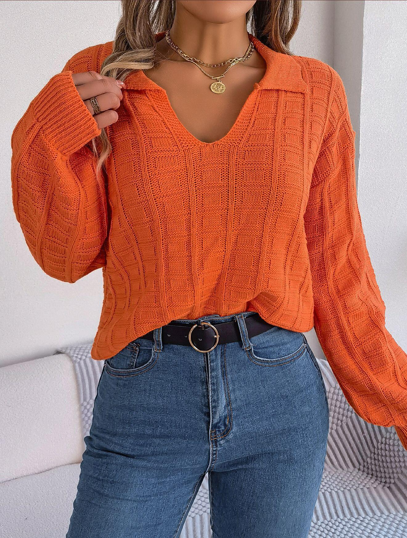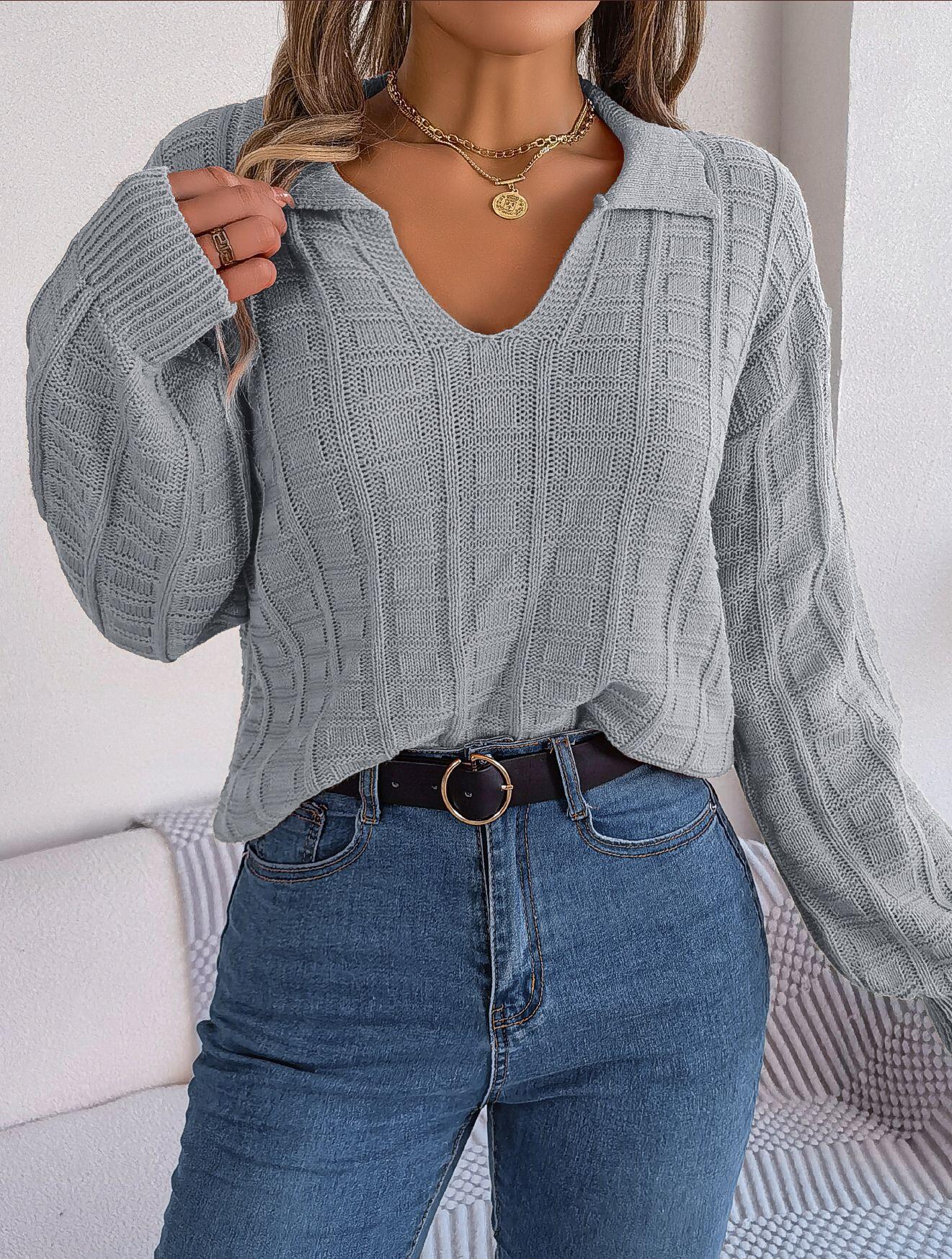 The sweater is detailed with a unique square pattern. Features a collar, drop shoulder, long sleeves, textured knit material, and regular fit. Pair it with flared jeans and boots for a fantastic look.