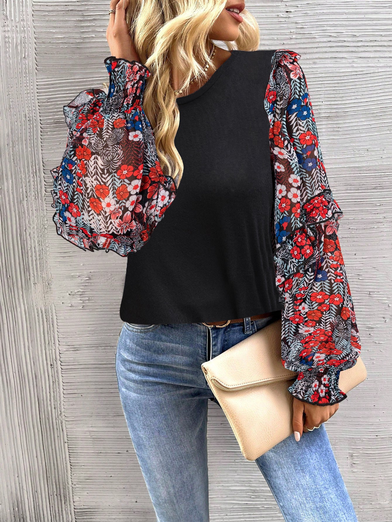 The sweater is detailed with funky leopard print sleeves. Features a round neck line, bishop sleeves, and regular fit. Pair it with jeans and boots for a laidback look.