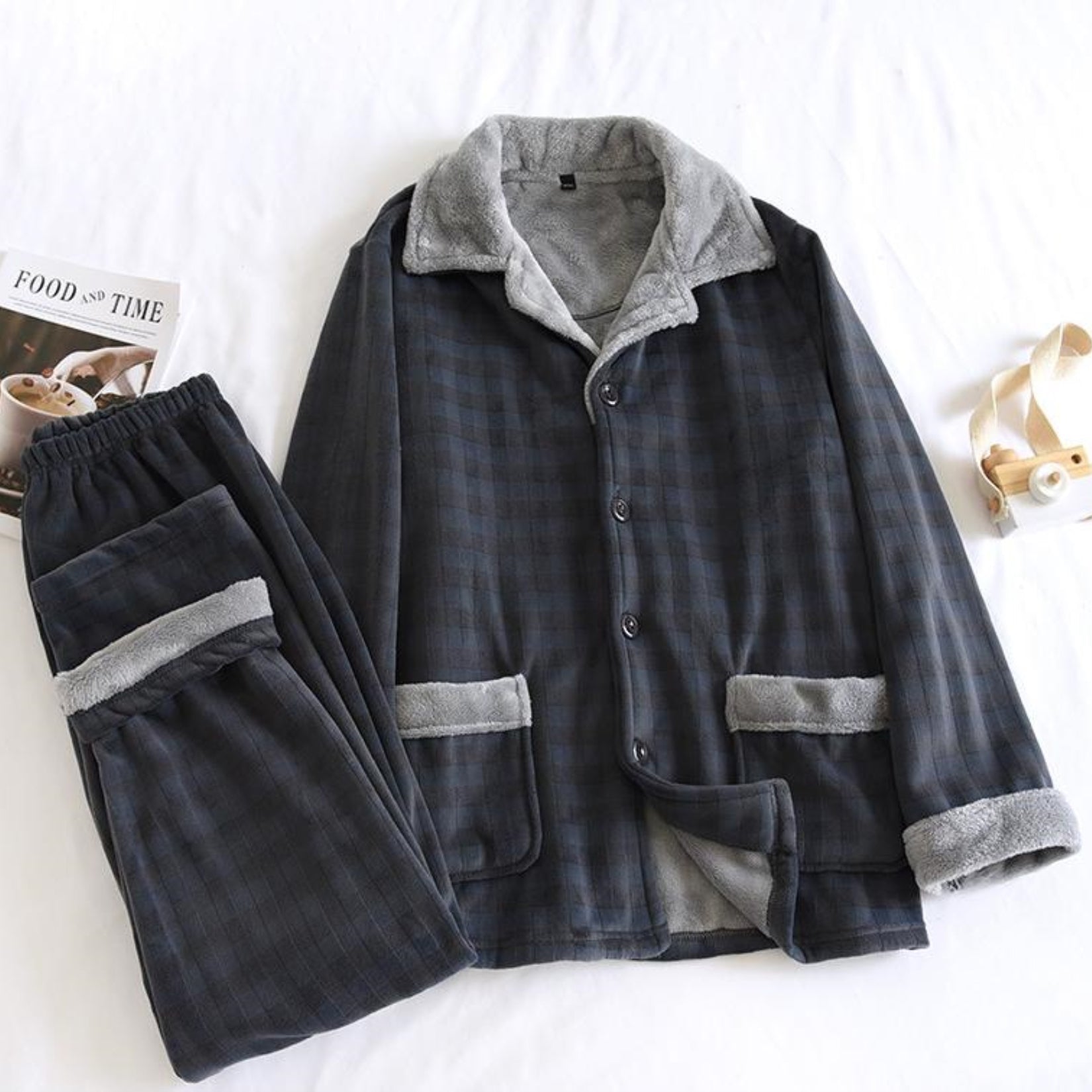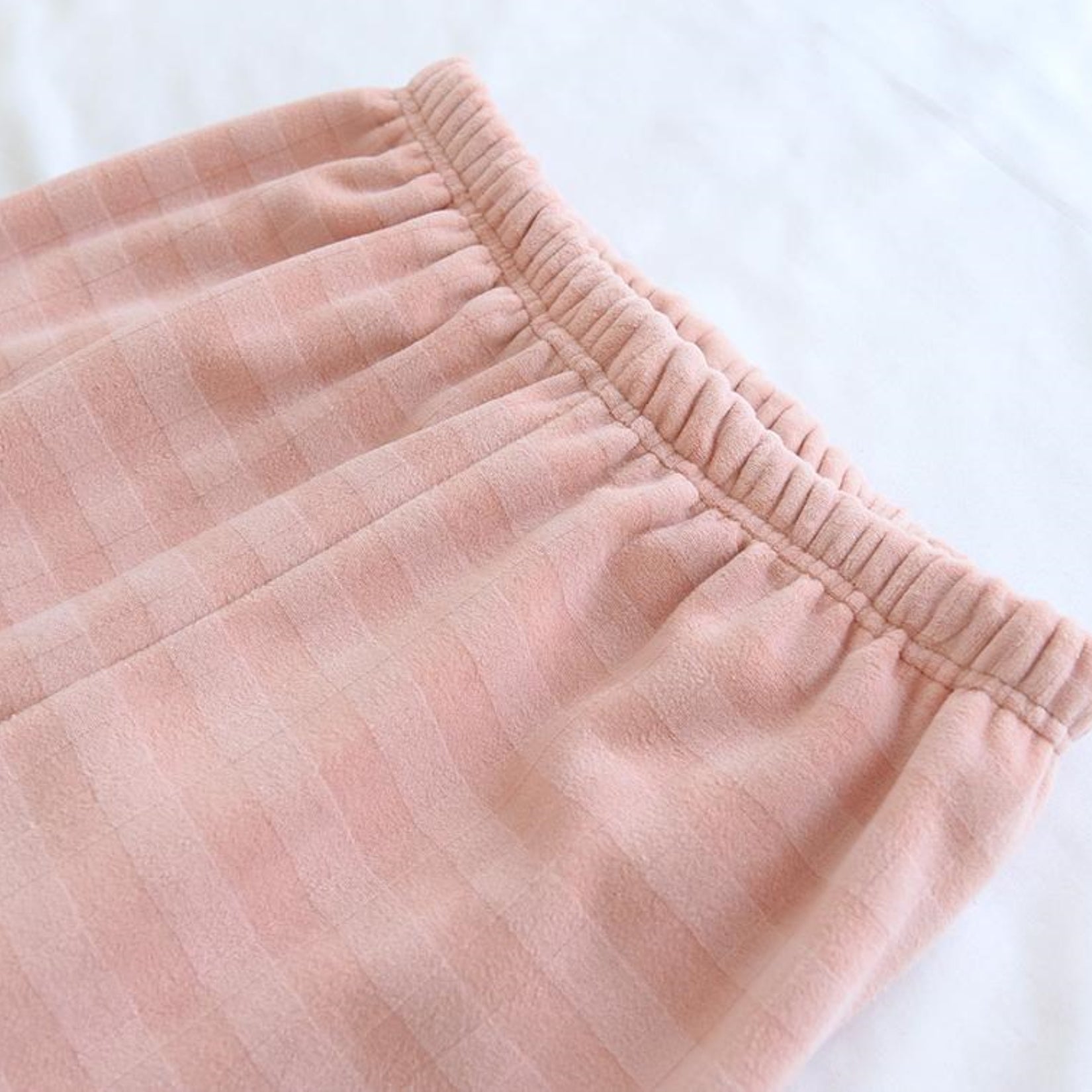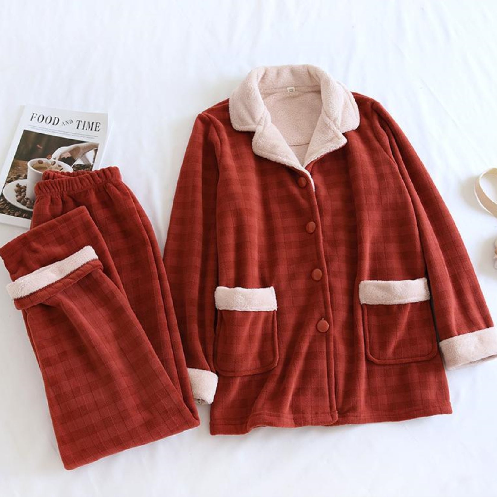 The coordinates are detailed with a cozy fur-lined inner. Features a gingham print, collared, button front, long sleeve shirt and matching pajama pants. Pair it together with fur slippers for a comfy look.