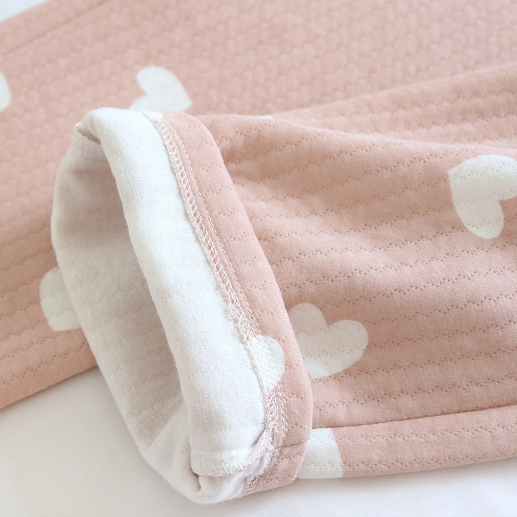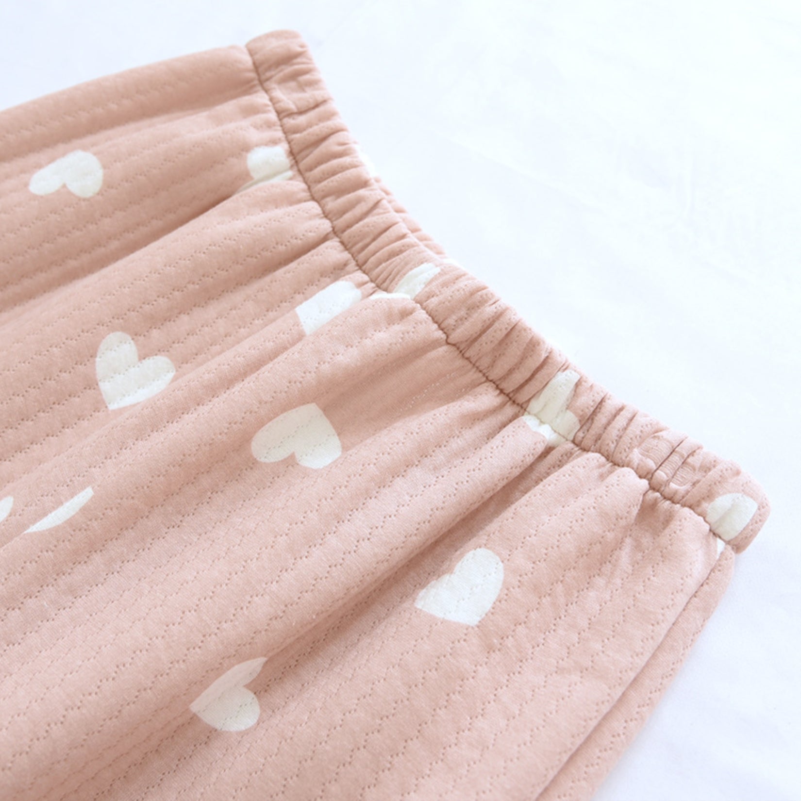 The coordinates are detailed with a beautiful heart pattern. Features a textured material, collar, long sleeves, button front shirt and matching pajama pants. Pair it together with slides for a comfy look.