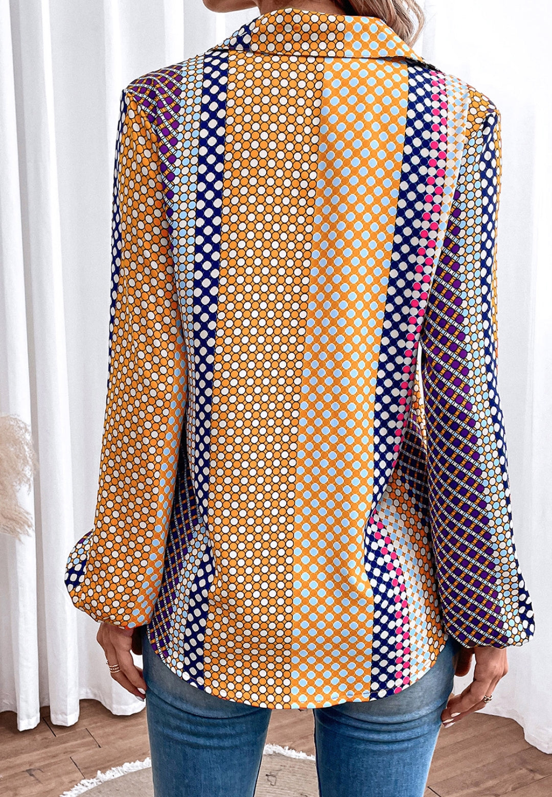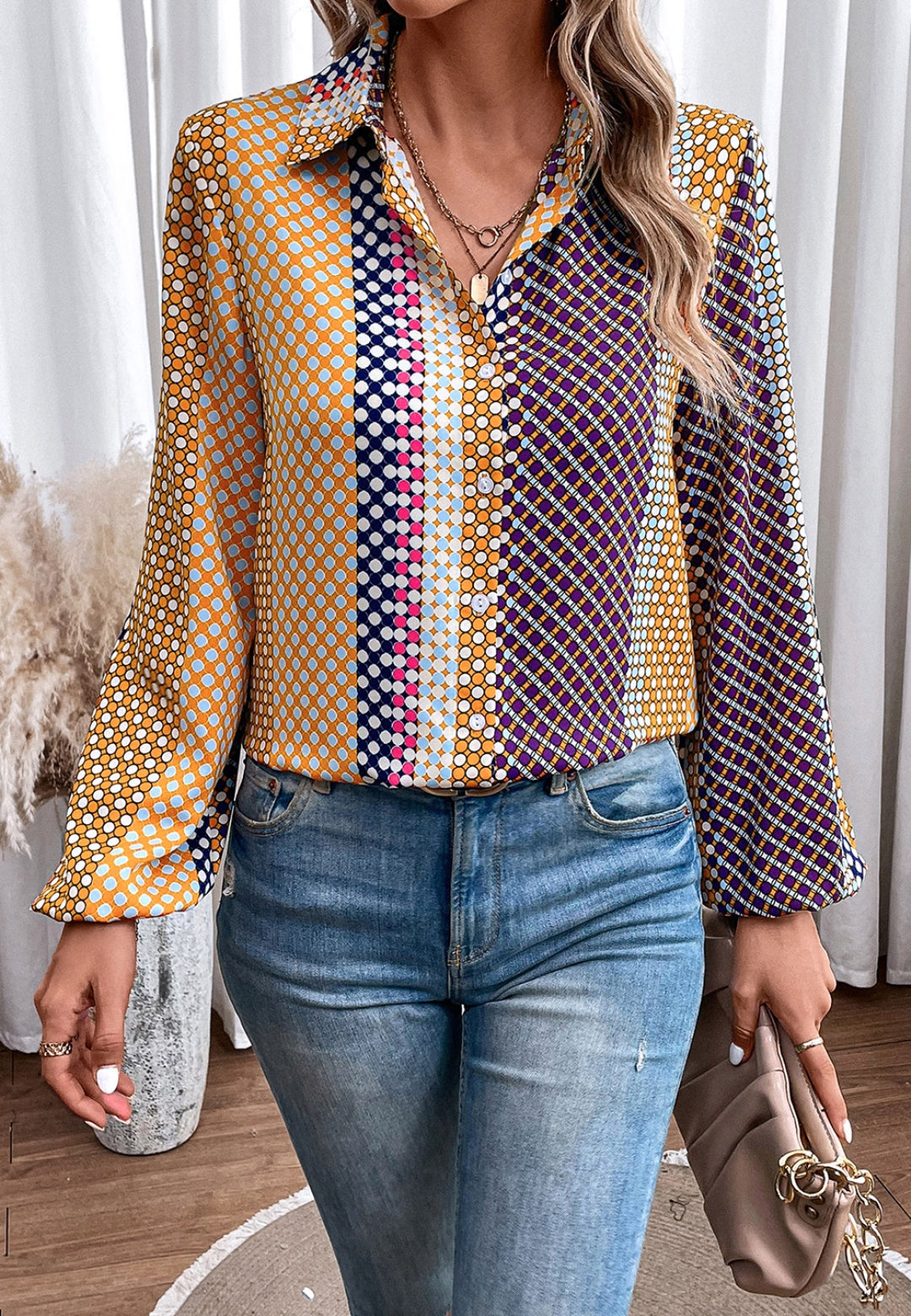 The shirt is detailed with a vintage multicolor geometric print. Features a collar, button down closure, long sleeves, and regular fit. Pair it with jeans and sandals for a cool look.