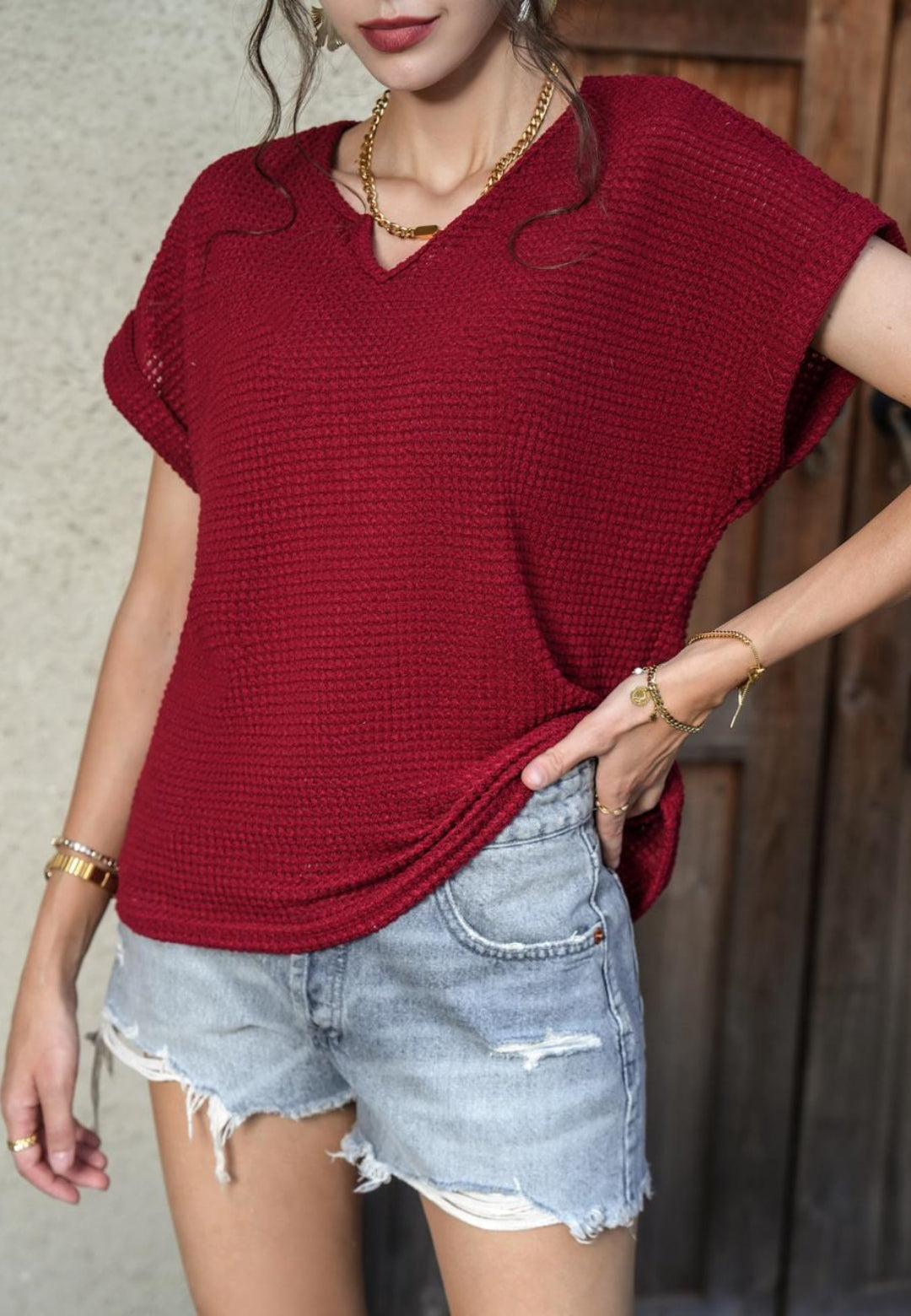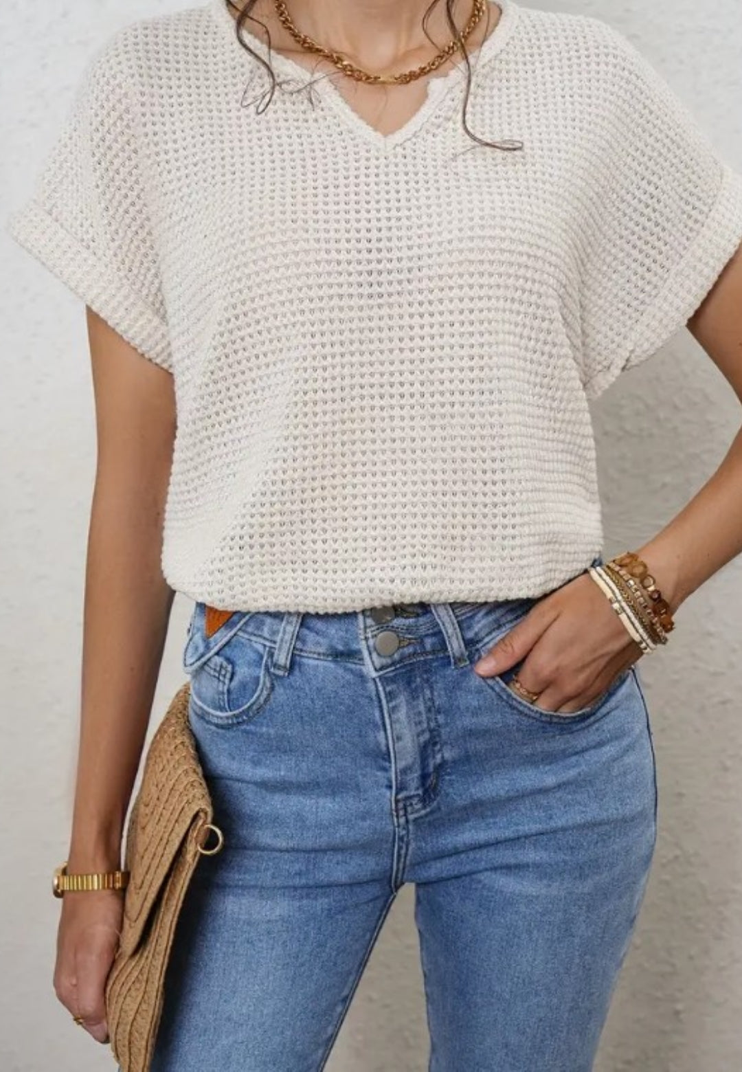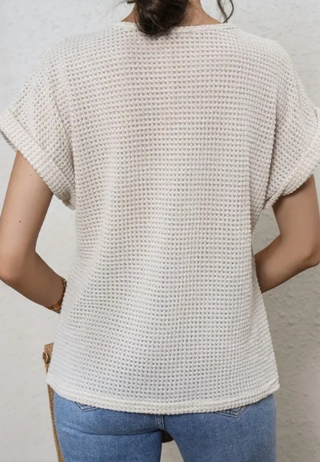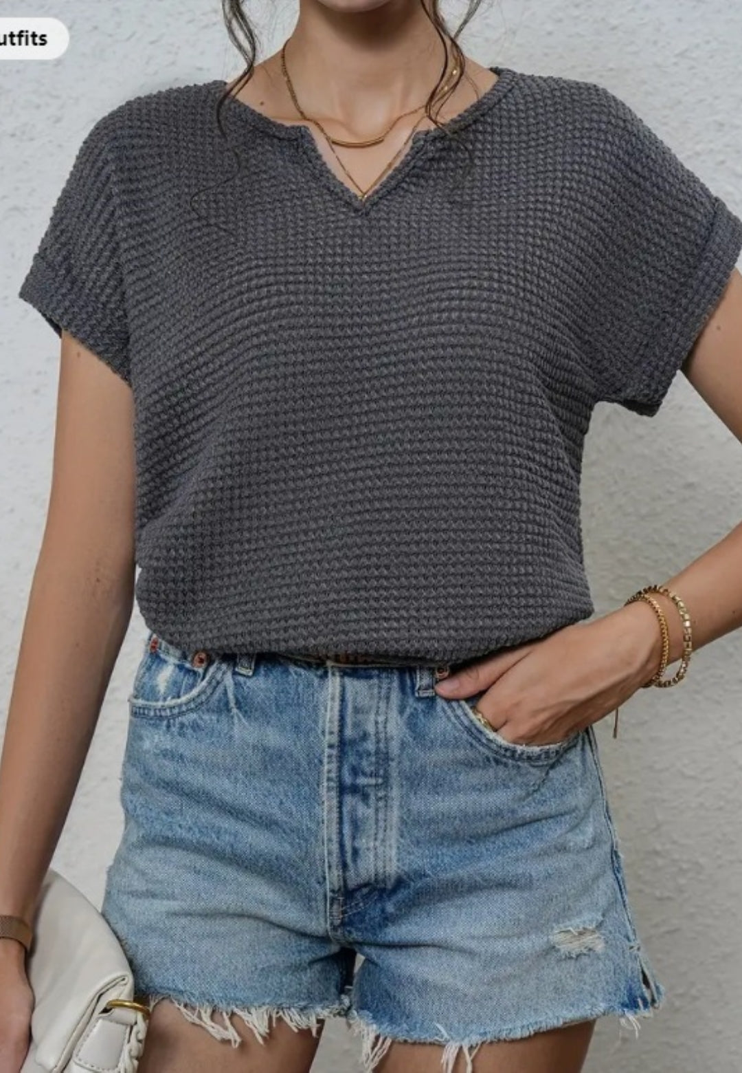 The shirt is detailed with a fun textured net material. Features solid color, split v neck line, short sleeves, and regular fit. Pair it with shorts and sneakers for a laidback look.