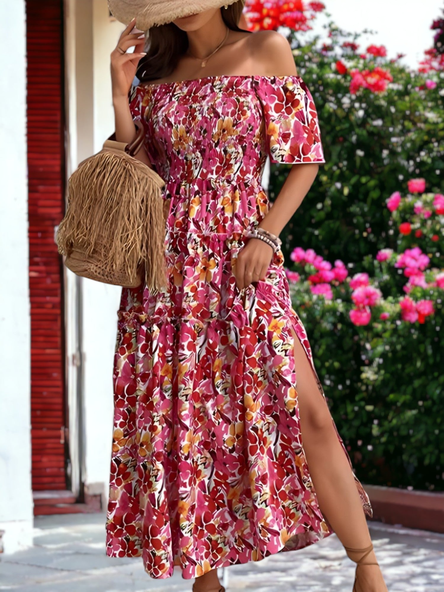 Embrace effortless elegance with our Floral Printed Off Shoulder Long Ruffle Dress. Perfect for any occasion, this stunning piece features a flattering off-shoulder neckline and cascading ruffles, adorned with a charming floral print. Elevate your style with this must-have addition to your wardrobe. Shop now and bloom with beauty wherever you go.