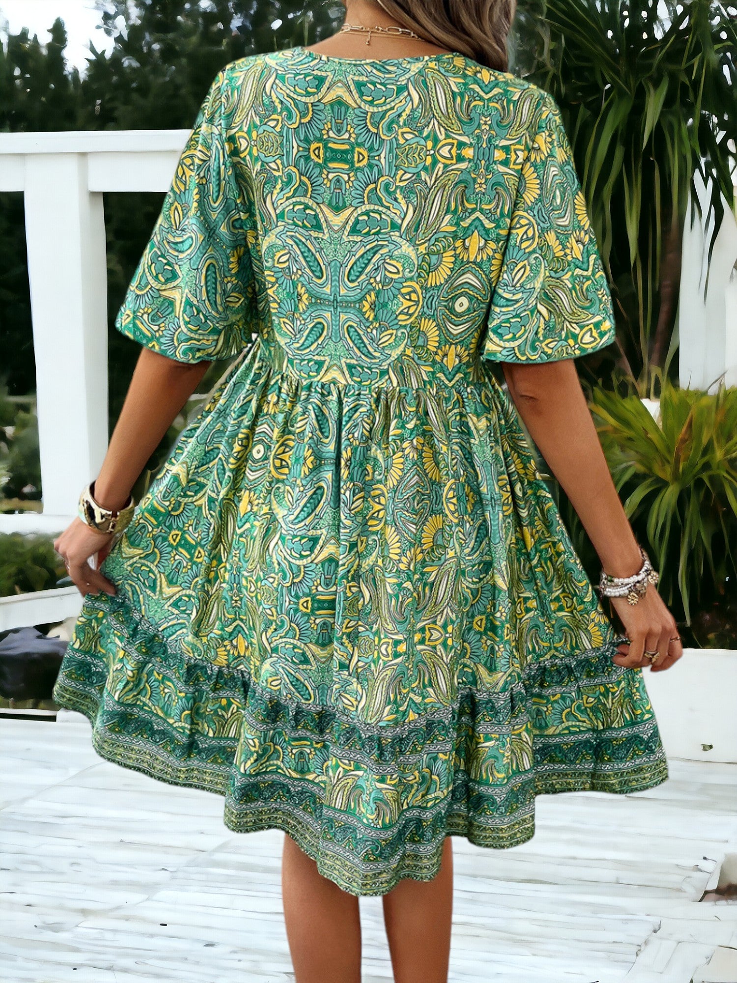 Discover effortless elegance with our Fashion V Neck Printed Casual Dress. Embrace chic style with its flattering V-neckline and captivating print, perfect for any occasion. Shop now and elevate your wardrobe with timeless sophistication.