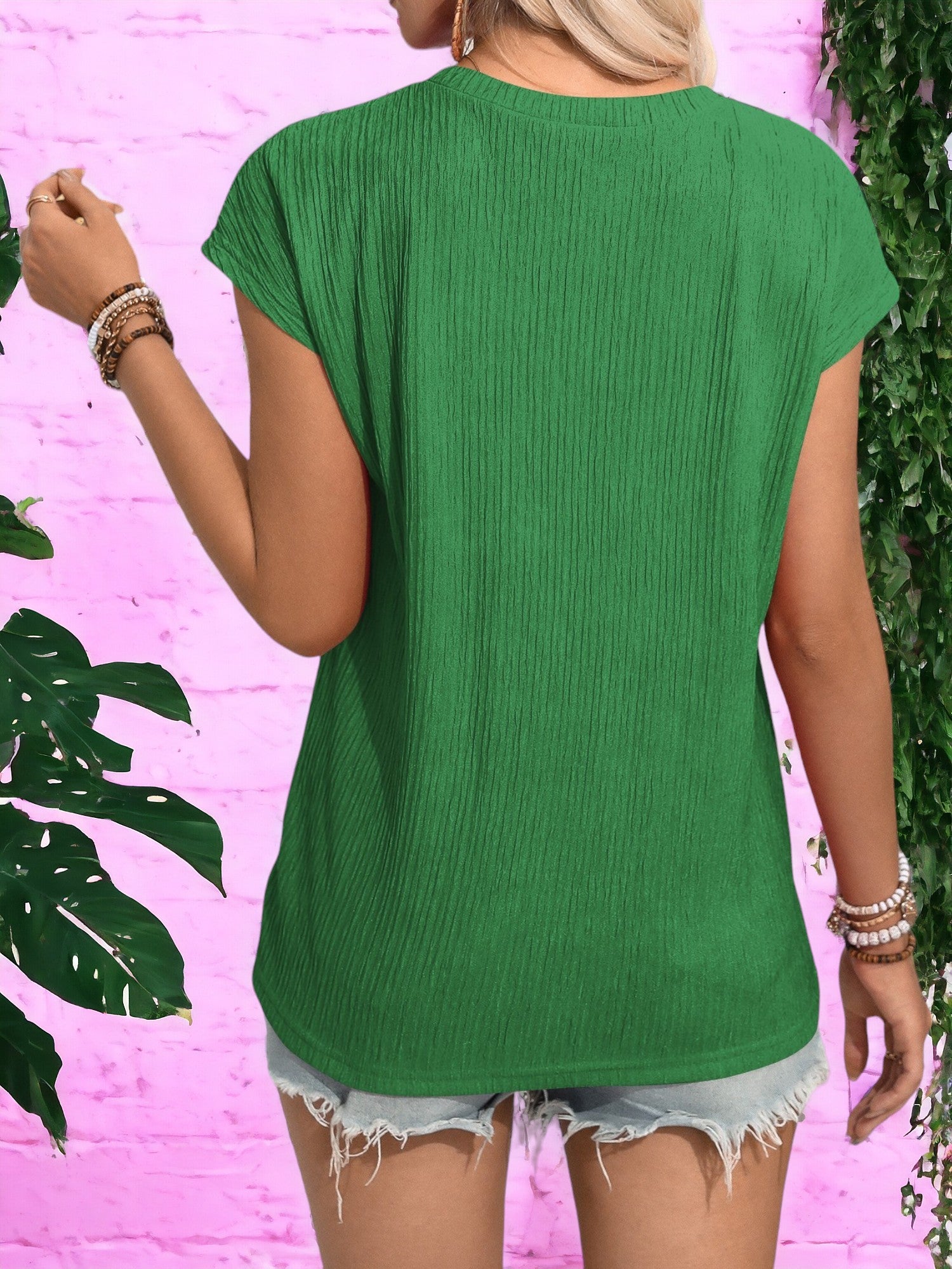 Elevate your wardrobe with our Round Neck Textured Short-Sleeved Blouse, featuring chic side pocket detail. Crafted for comfort and style, this versatile piece effortlessly blends sophistication with practicality. Explore timeless elegance with every wear.