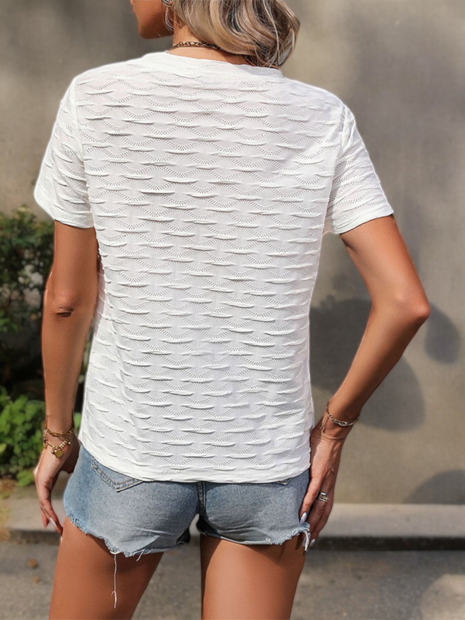 Anna-Kaci Women's Short Sleeve Crew Neck Textured Wave Pattern Casual Tee