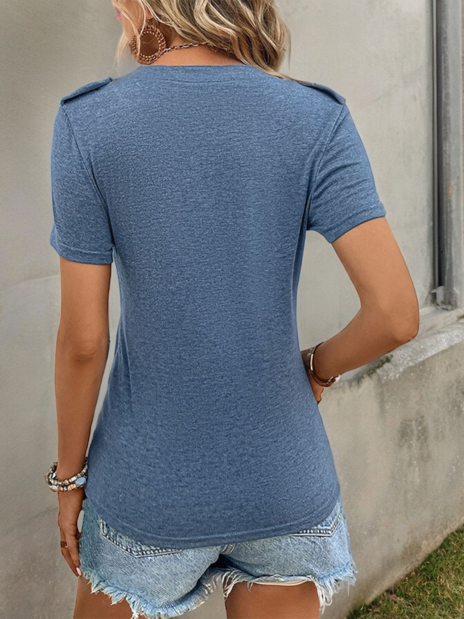 Short Sleeve Henley Top with Button Detailing and Chest Pocket