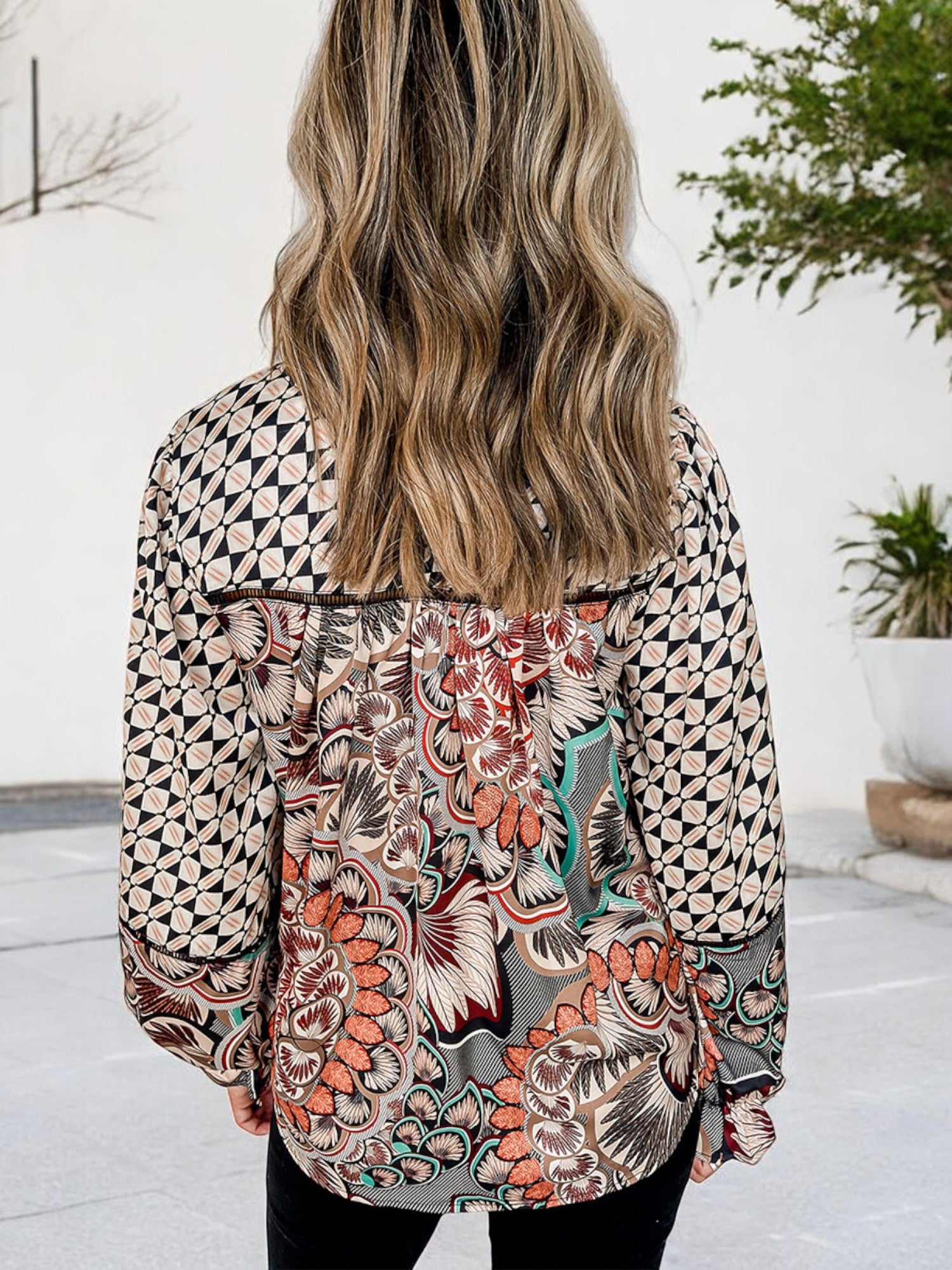Anna-Kaci Women's Long Sleeve Bohemian Patchwork Print Blouse