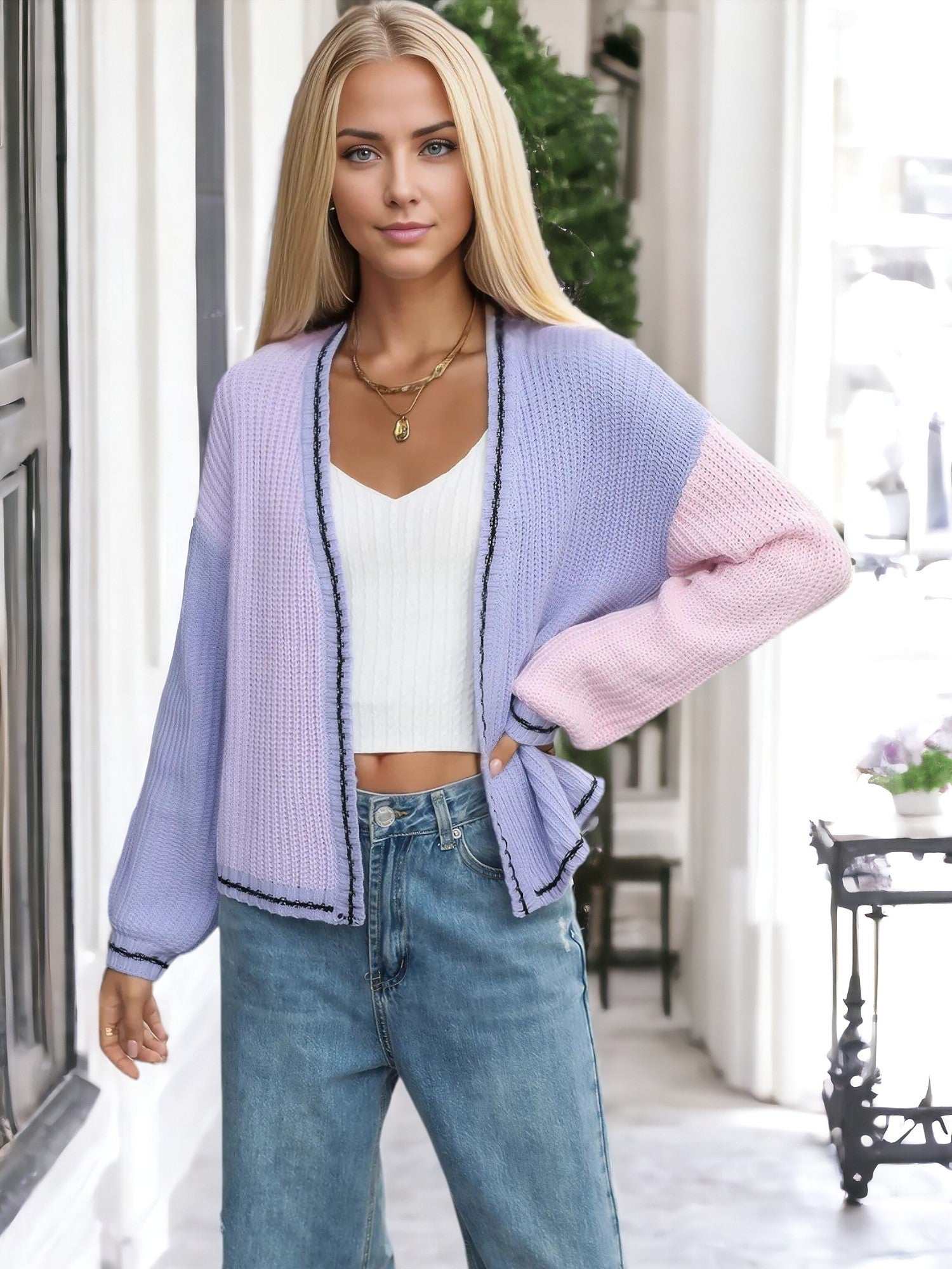 Anna-Kaci Women's Colorblock Knit Cardigan with Open Front and Long Sleeves