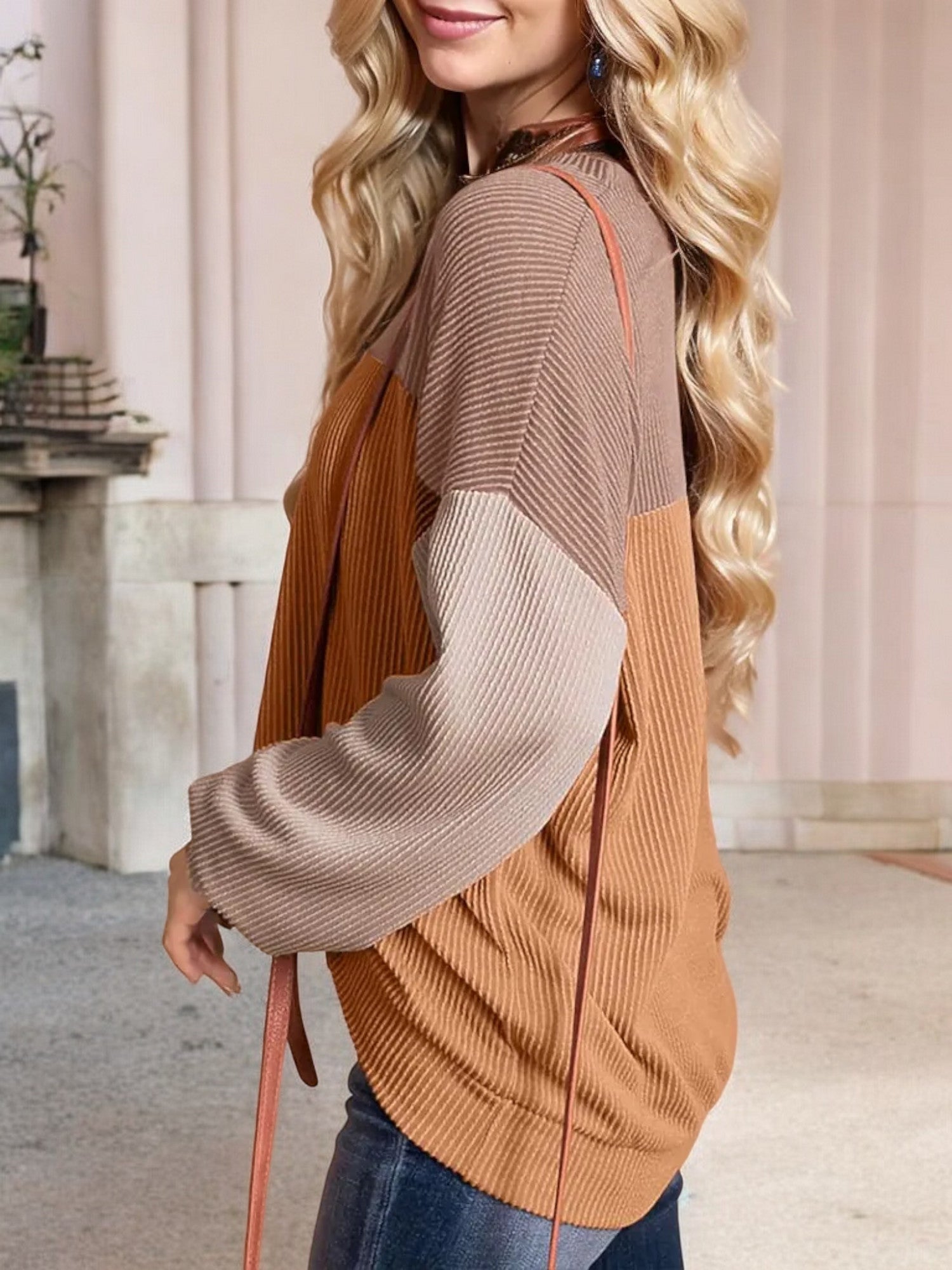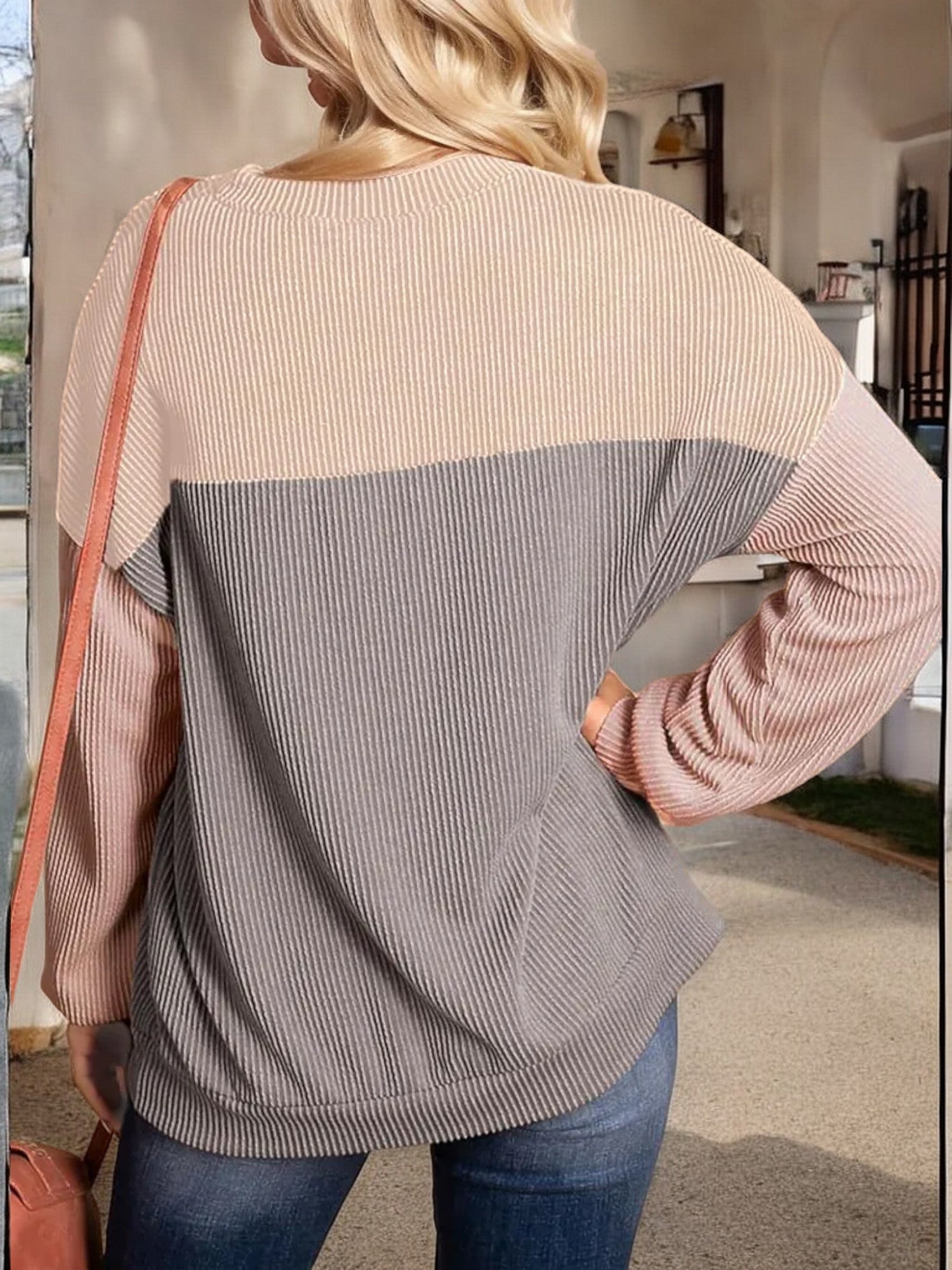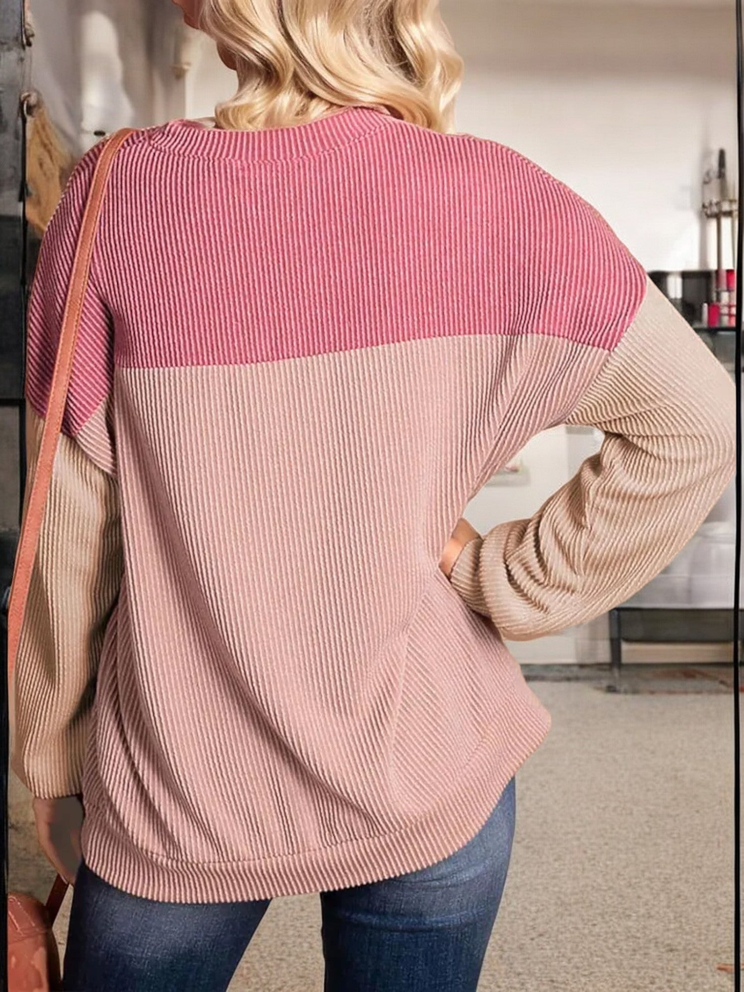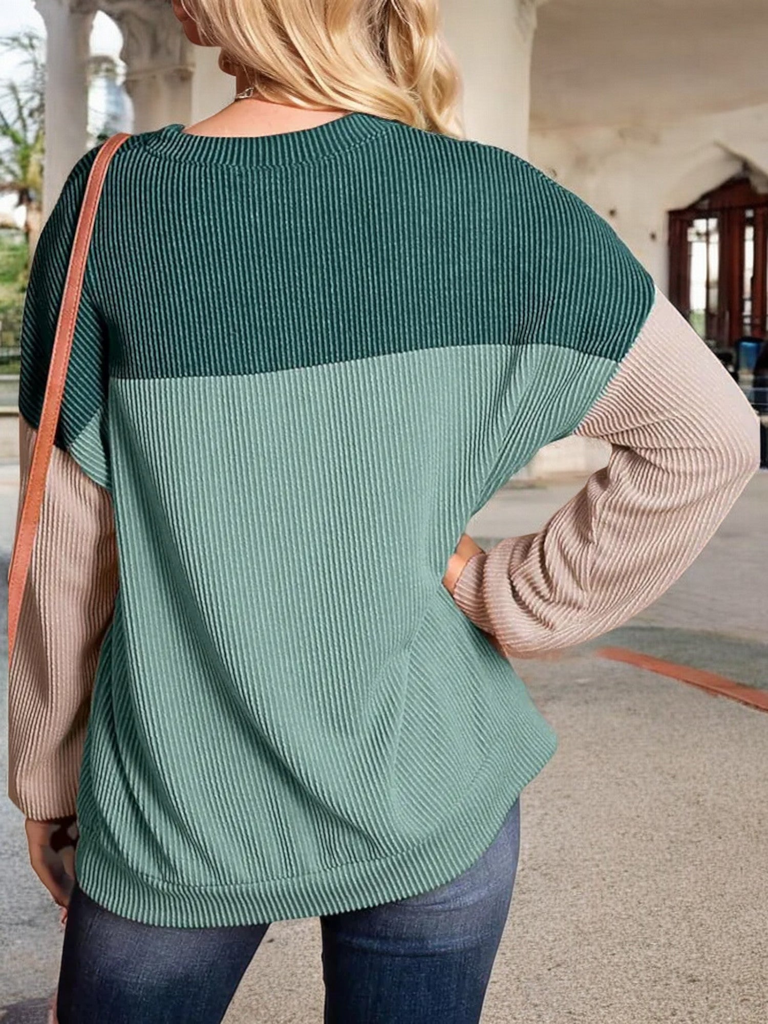 Anna-Kaci Women's Color Block Ribbed Knit Sweater with Long Sleeves and Crew Neckline