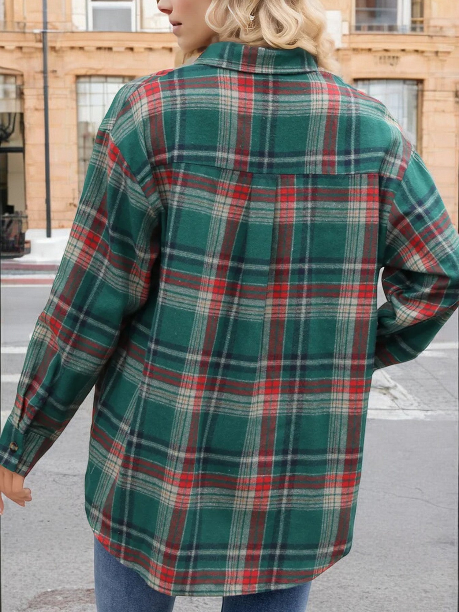 Anna-Kaci Women's Long Sleeve Plaid Button-Down Shirt with Front Pocket Detail