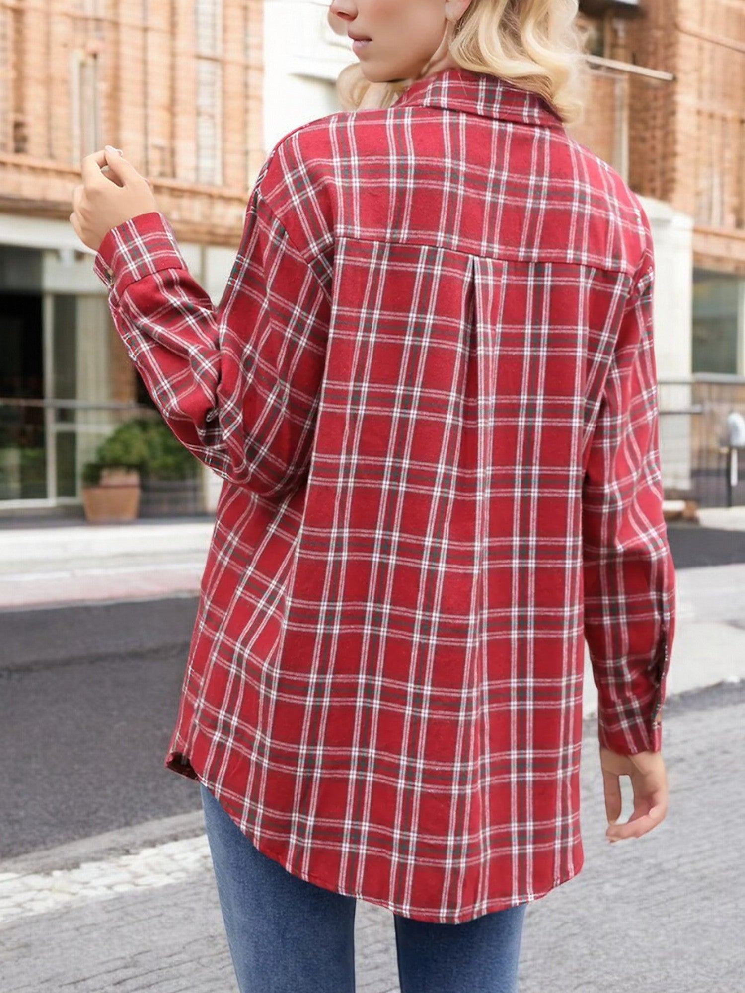 The Anna-Kaci Women's Long Sleeve Plaid Button-Down Shirt is a stylish essential for your casual wardrobe. Featuring a classic plaid pattern, this shirt brings a touch of rustic charm to your outfit. The button-down design allows for versatile styling, whether worn open over a tank or buttoned up for a more polished look. With a front pocket detail and a relaxed fit, this shirt offers both comfort and functionality. Perfect for layering during cooler seasons or wearing alone, this plaid shirt is a go-to piece for effortless style.