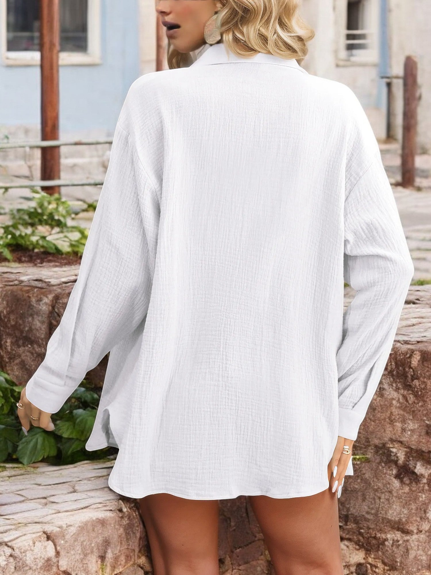 Elevate your casual wardrobe with the Anna-Kaci Women's Button-Down Long Sleeve Lightweight Shirt. This versatile shirt features a relaxed fit, perfect for layering over your favorite tank top or wearing on its own. The soft, breathable fabric ensures comfort throughout the day, making it an ideal choice for both casual outings and beach cover-ups. With its classic button-down design, long sleeves, and a convenient front pocket, this shirt effortlessly blends style and practicality. Whether you're pairing it with shorts for a laid-back look or dressing it up with jeans, this lightweight shirt is a must-have addition to your wardrobe.