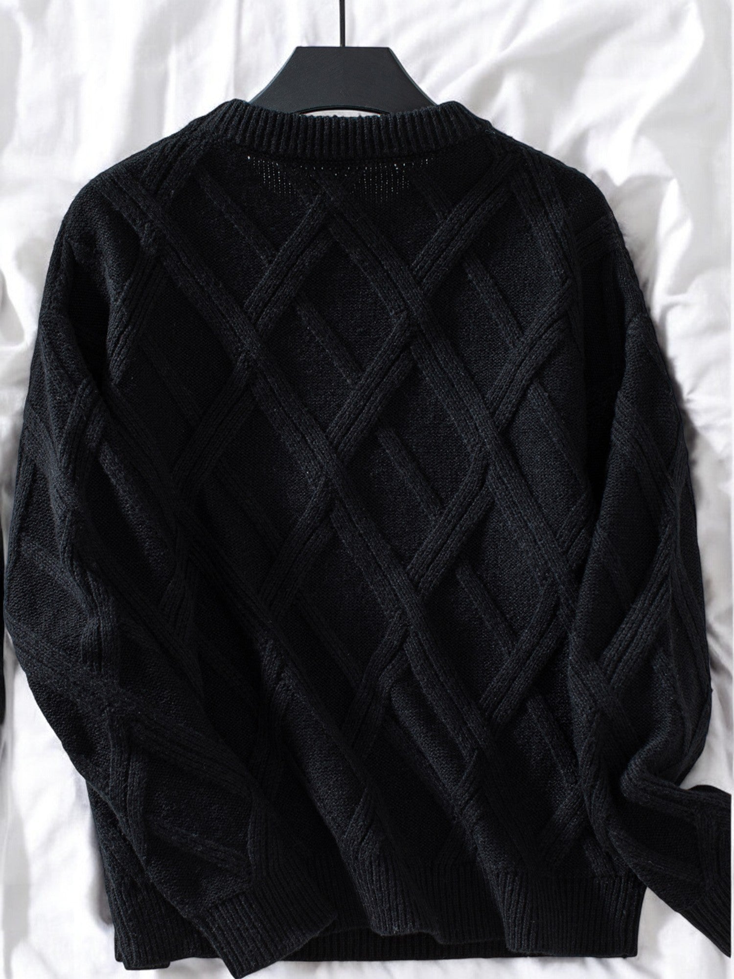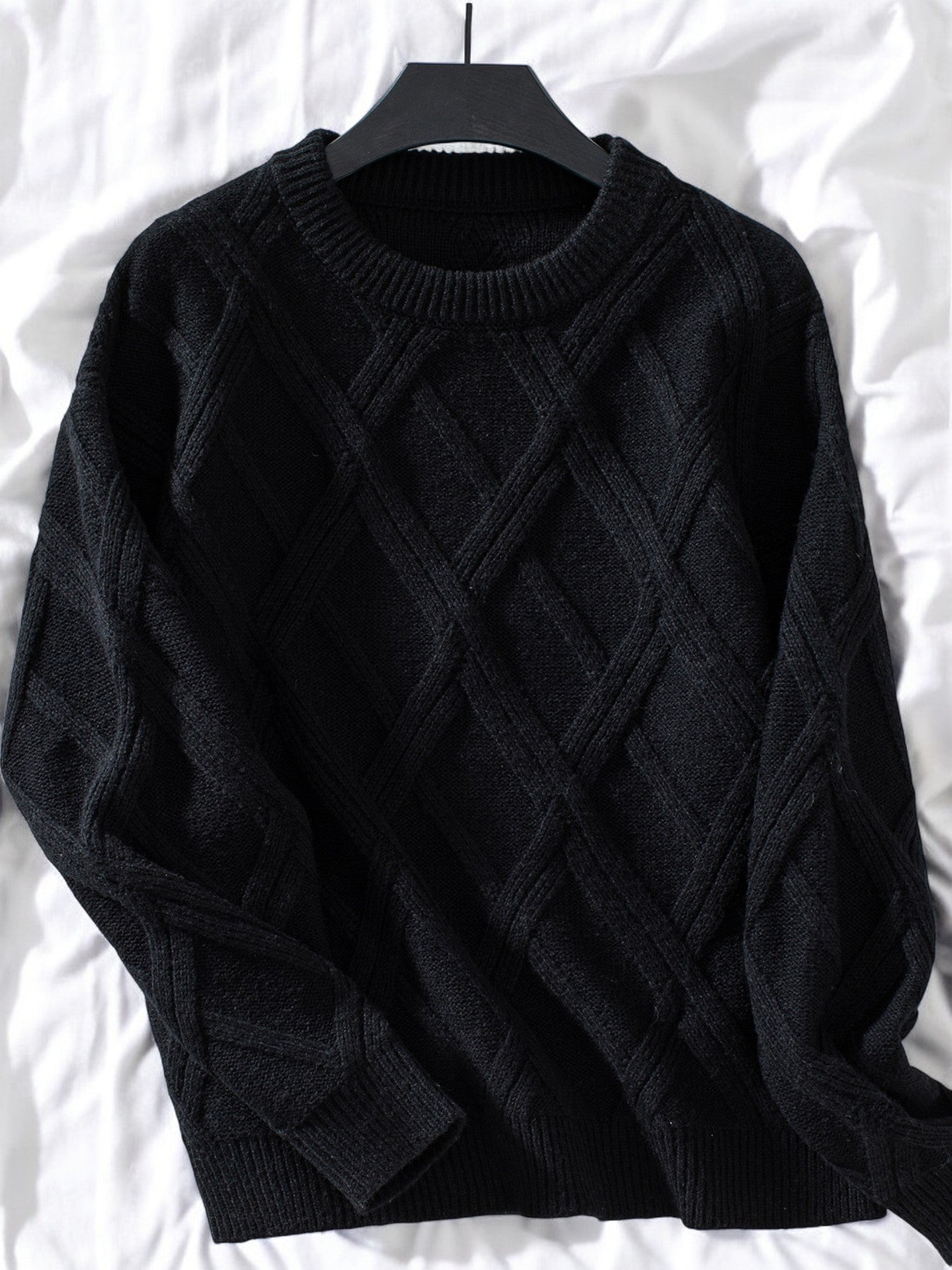 Anna-Kaci Women's Diamond Knit Pattern Sweater with Long Sleeves and Ribbed Cuffs