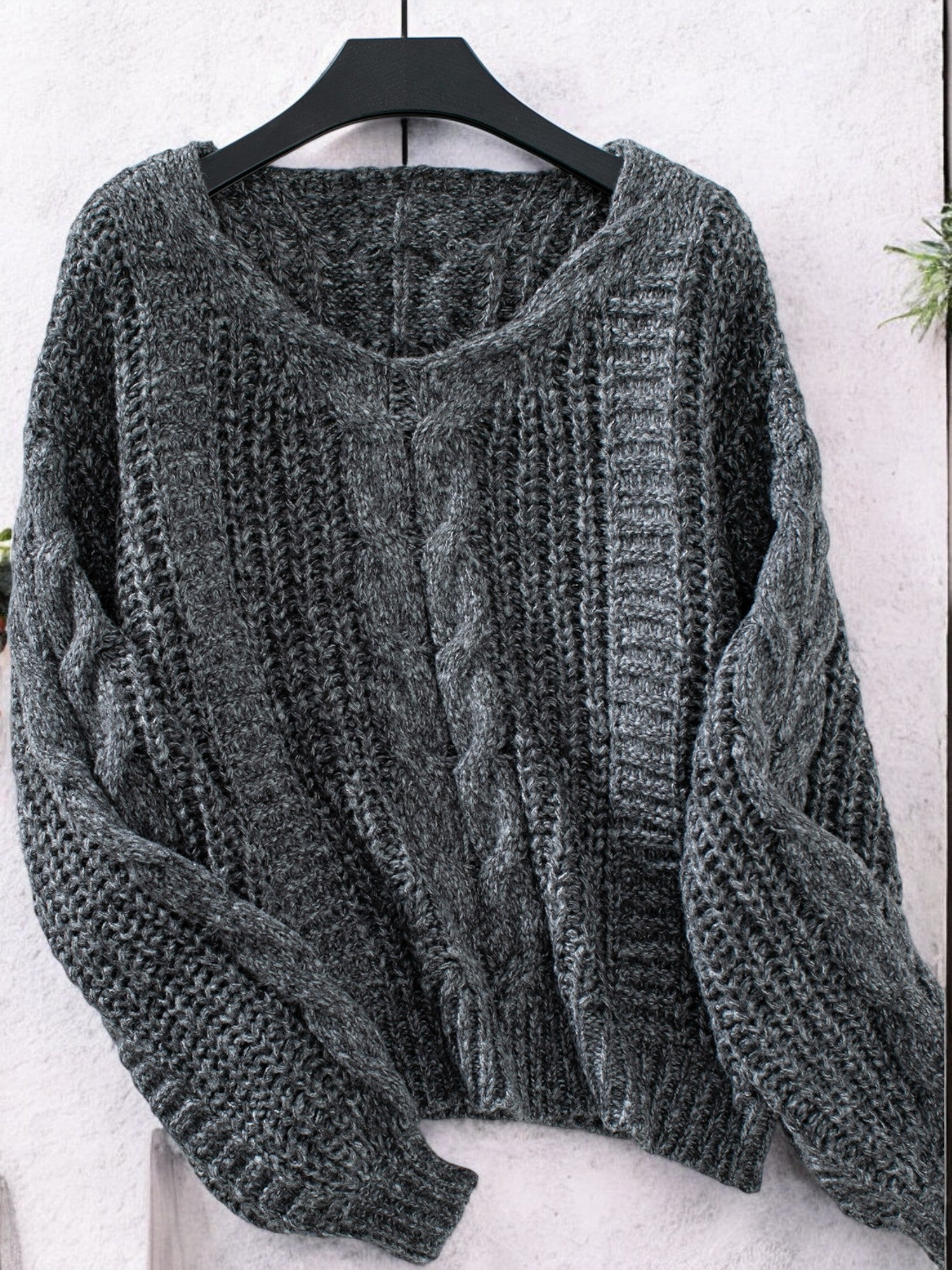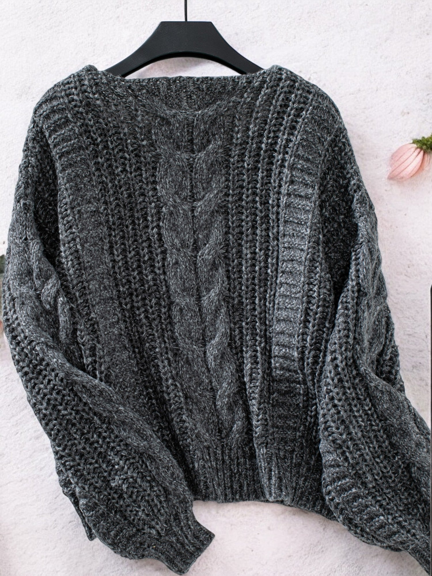 The Anna-Kaci Women's Cable Knit V-Neck Sweater brings a cozy and stylish appeal to your wardrobe. This beautifully crafted sweater features an intricate cable knit design that adds texture and warmth, while the flattering V-neckline offers a touch of femininity. The voluminous balloon sleeves create a dramatic yet elegant silhouette, perfect for pairing with jeans or a skirt for a chic, casual look. Whether you're heading out for a coffee date or enjoying a relaxed day at home, this versatile sweater will keep you comfortable and on-trend throughout the season.