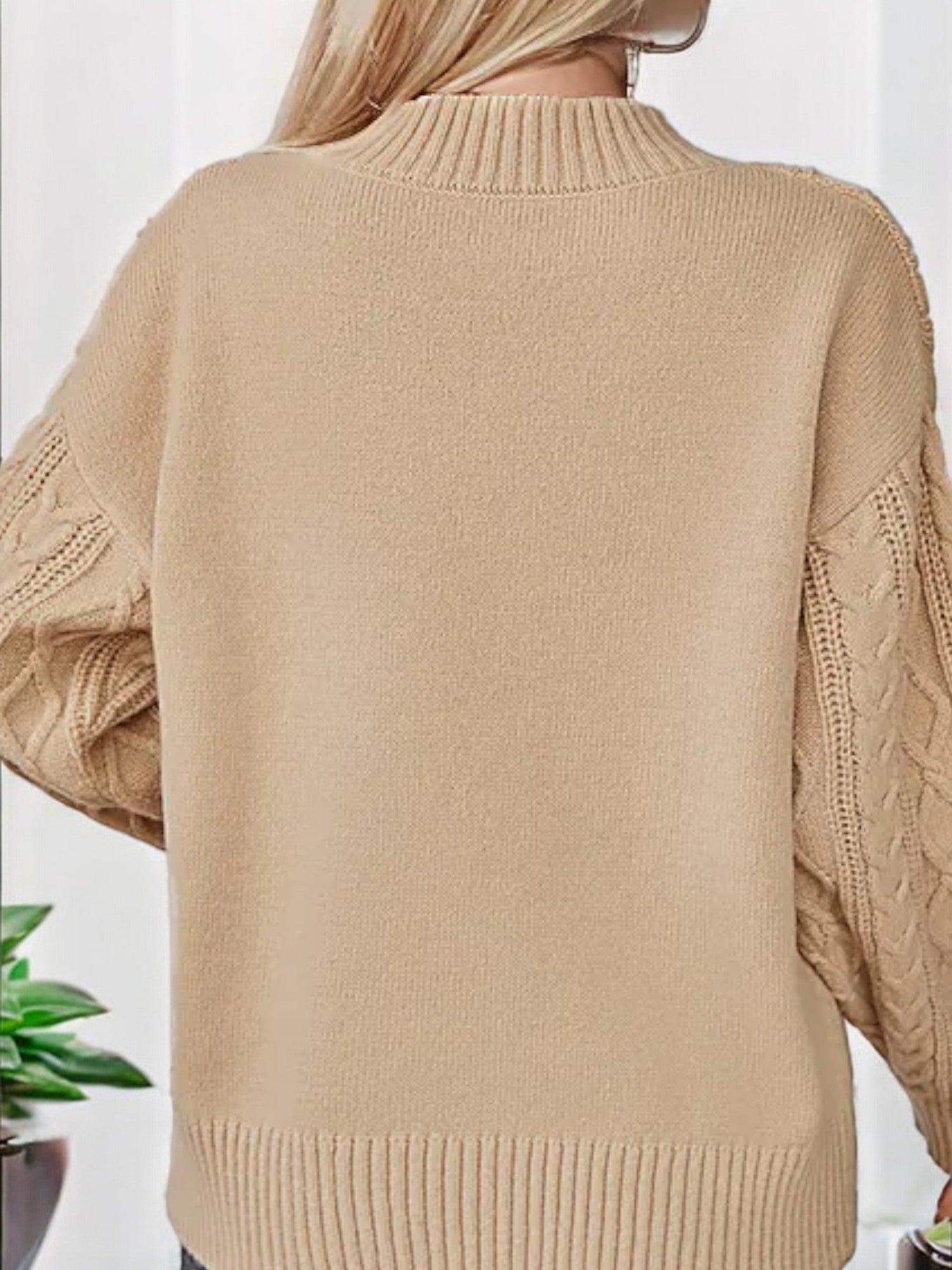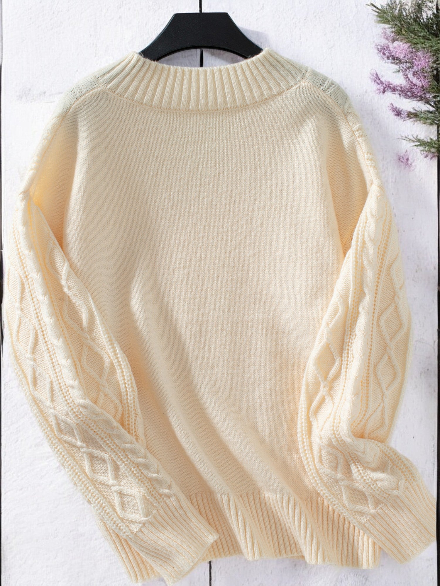 Anna-Kaci Women's Cable Knit Sweater with Ribbed Cuffs and V-Notch Neckline