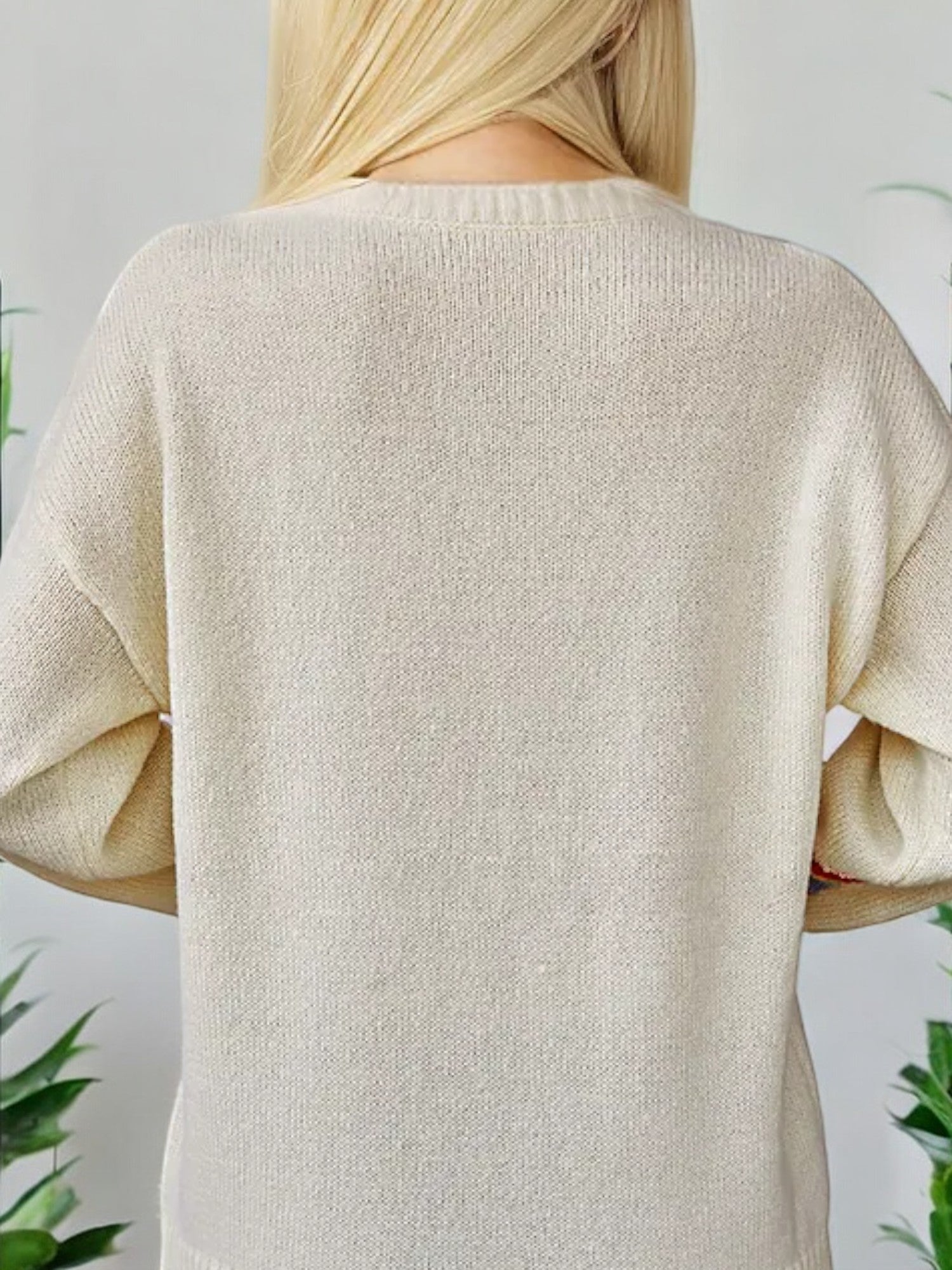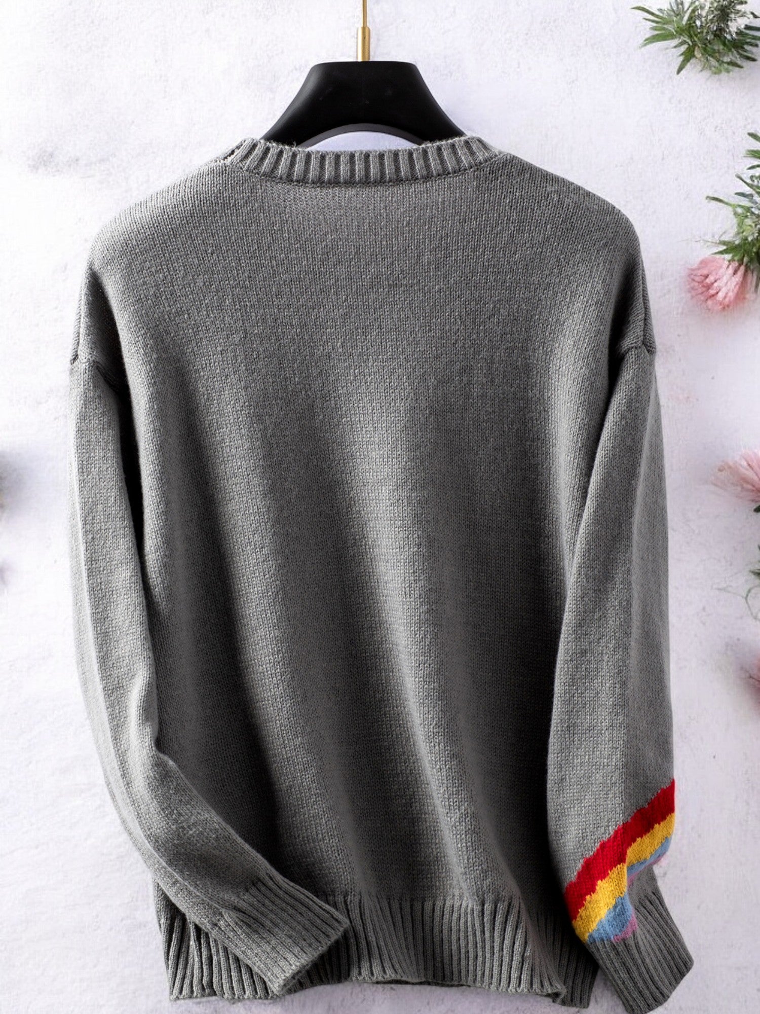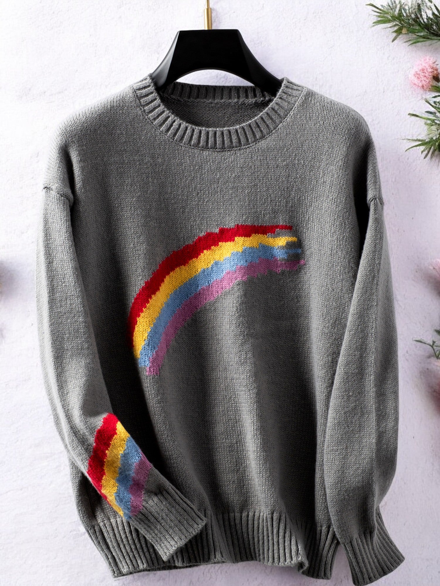 Anna-Kaci Women's Rainbow Stripe Knit Sweater with Ribbed Cuffs and Hem