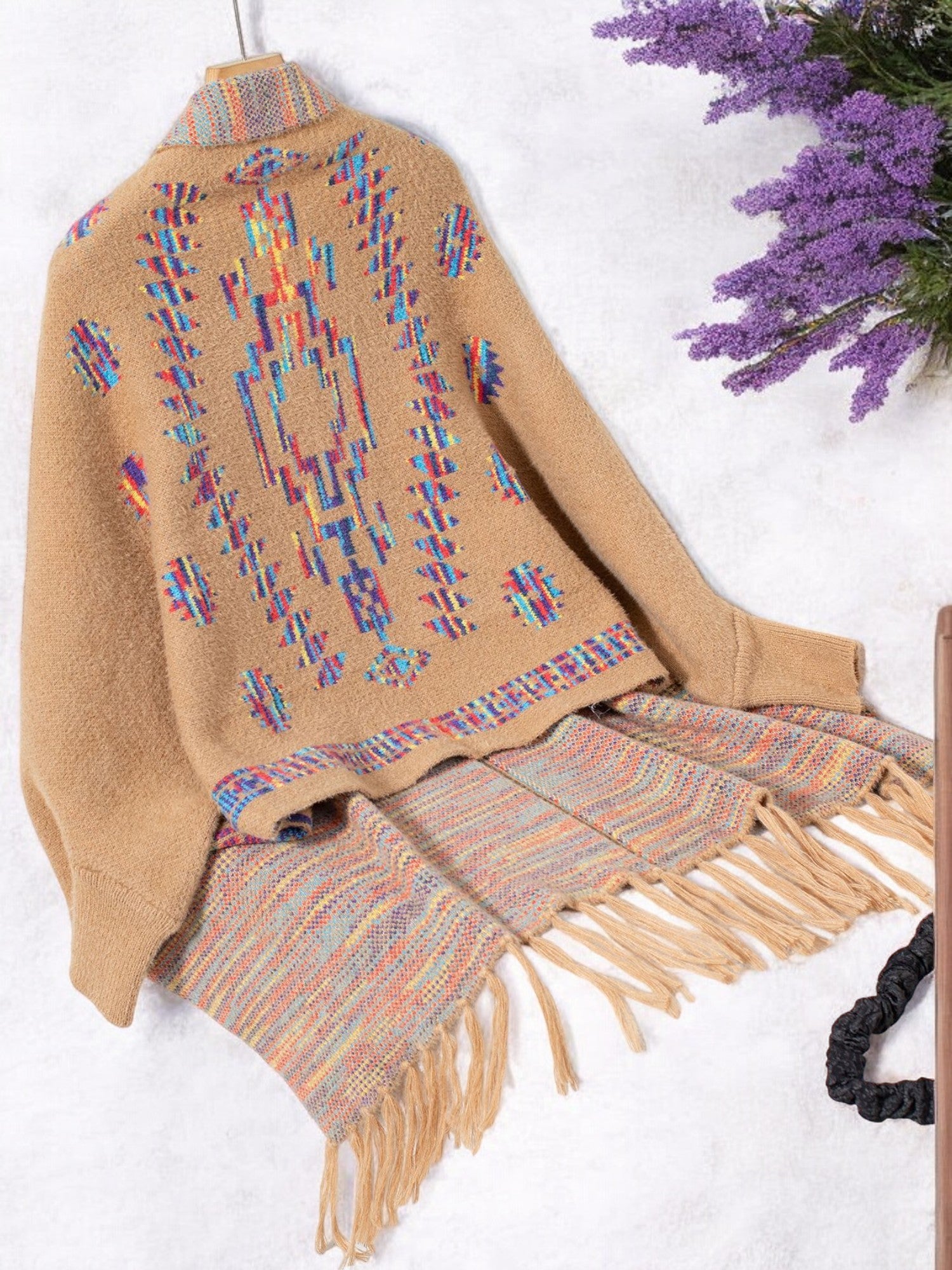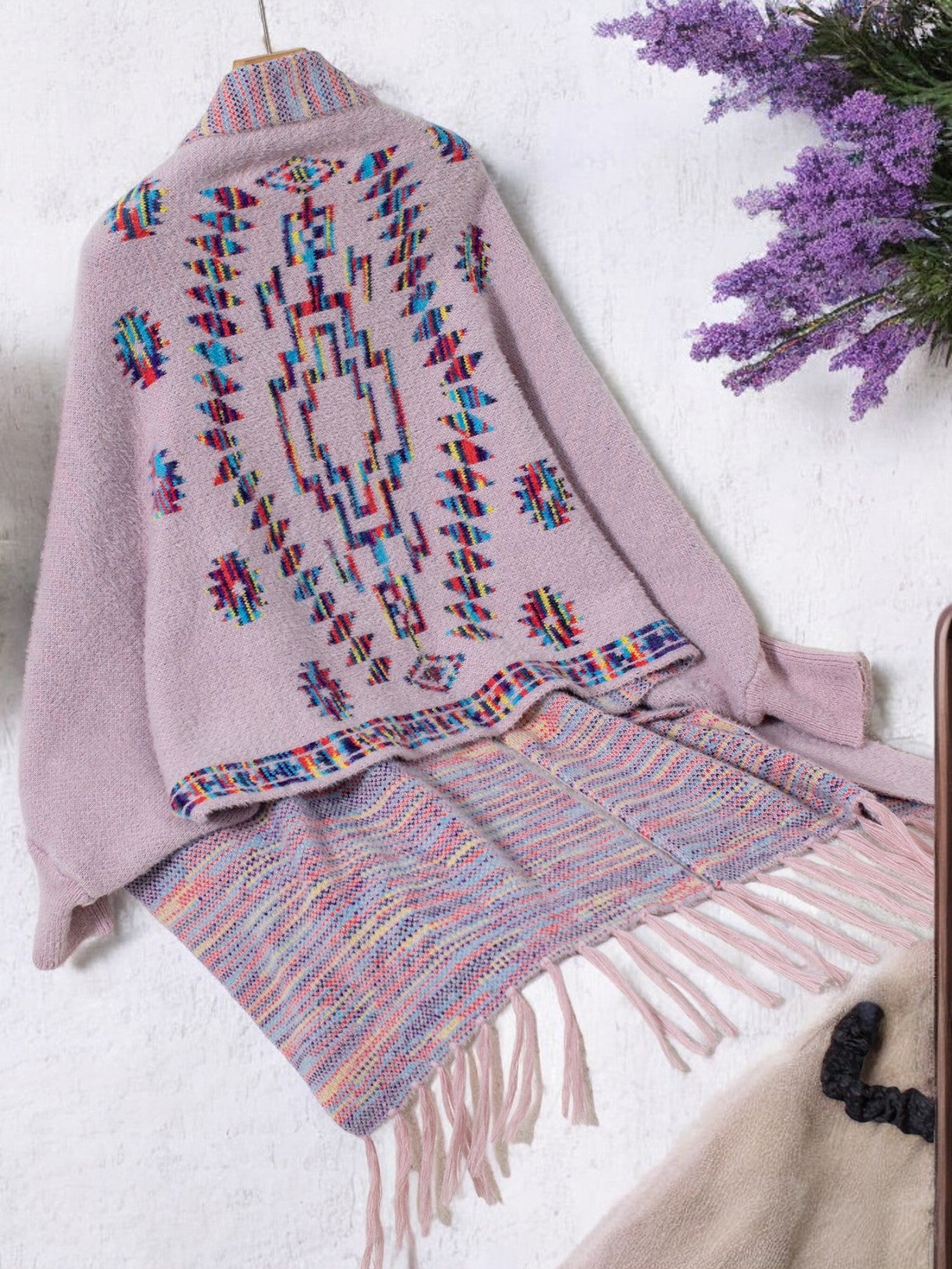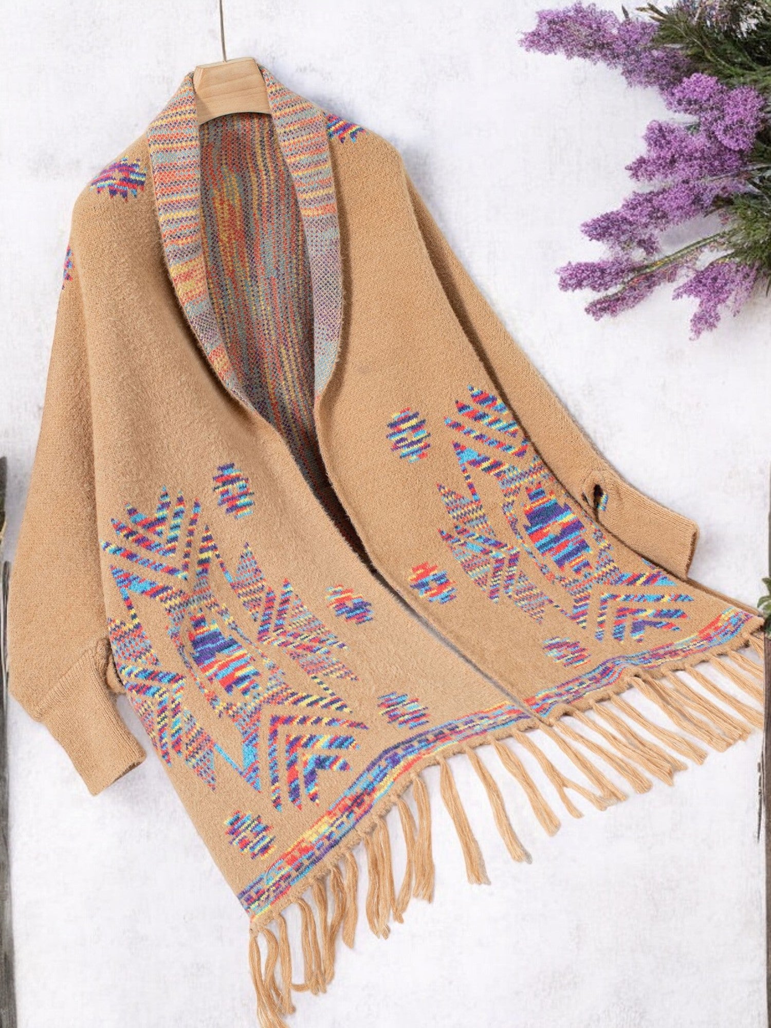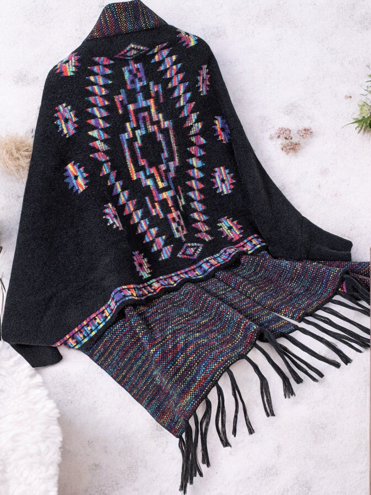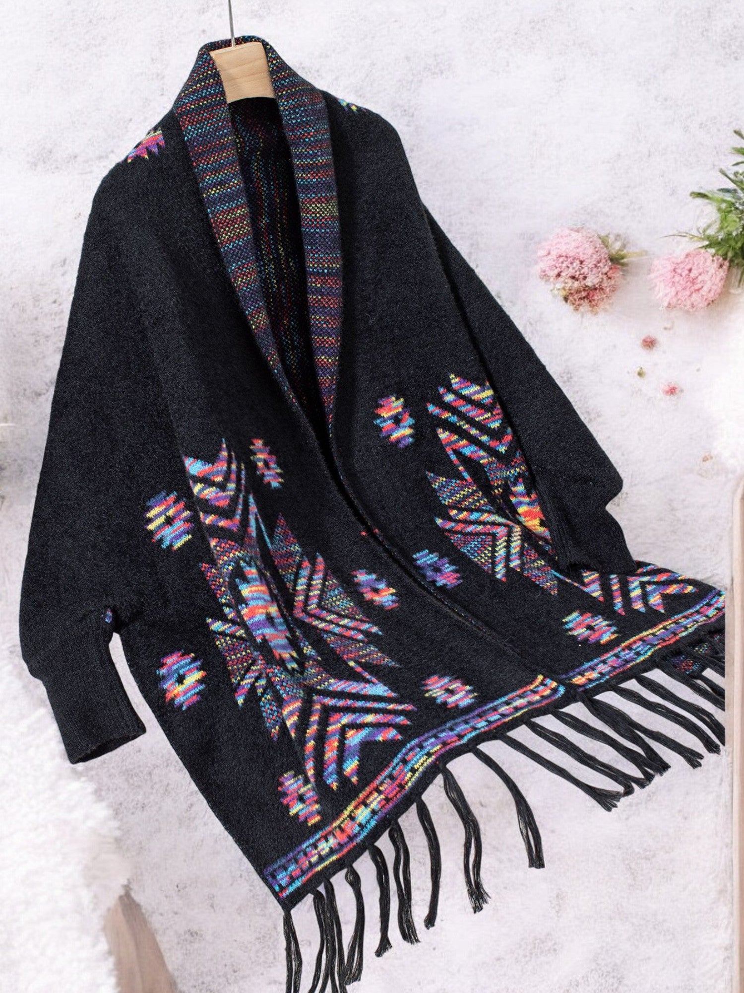 Anna-Kaci Women's Bohemian Tribal Patterned Shawl with Fringe Detail