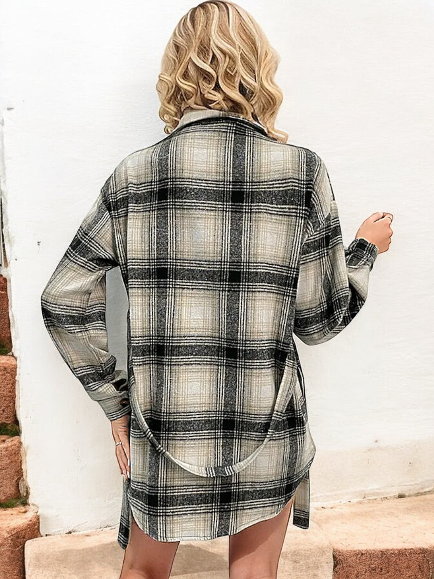 The Anna-Kaci Women's Long Sleeve Plaid Button-Down Shacket is the perfect blend of a shirt and jacket, offering both style and functionality. Designed with a classic plaid pattern, this versatile piece features button-down closures and dual chest pockets for added practicality. The relaxed fit allows for easy layering over your favorite tops, making it ideal for transitioning between seasons. Whether worn as a light jacket on cool days or styled as a statement shirt, this shacket effortlessly combines comfort and trendiness, making it a must-have addition to your casual wardrobe.