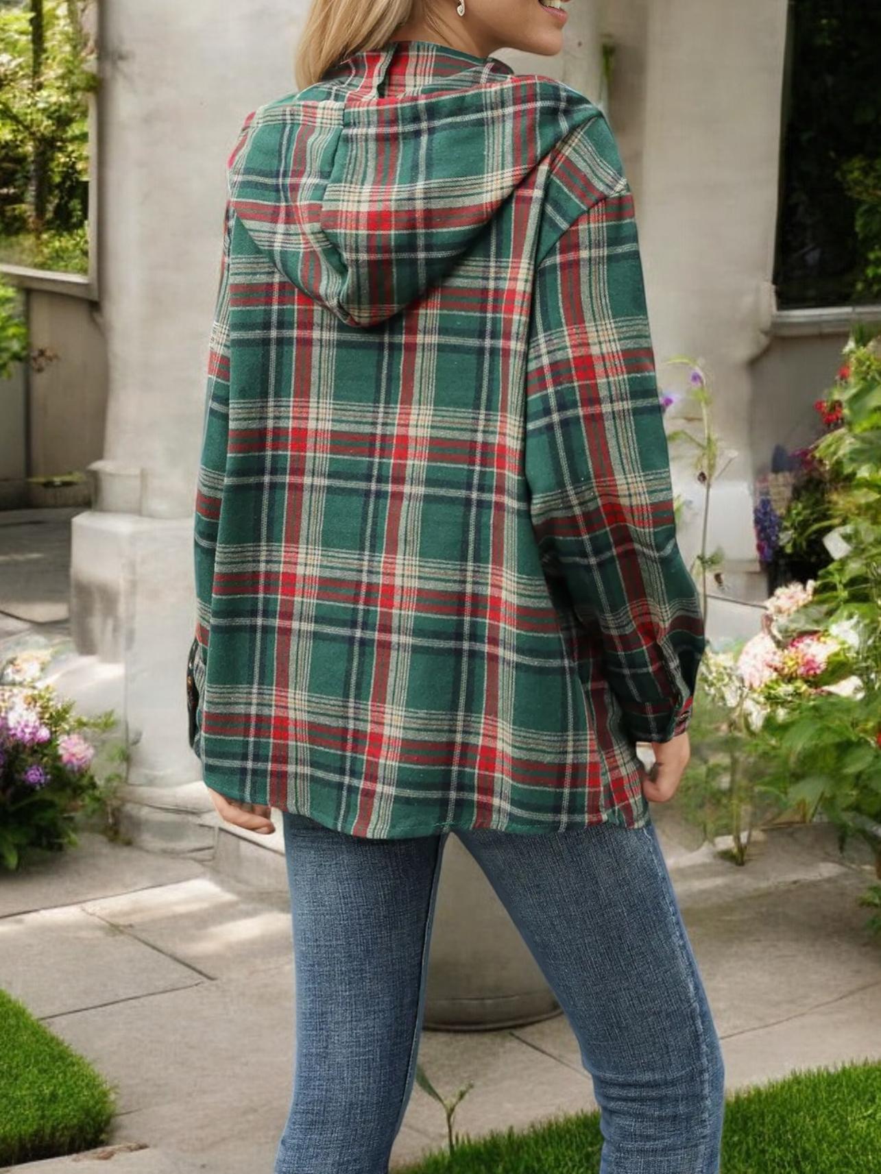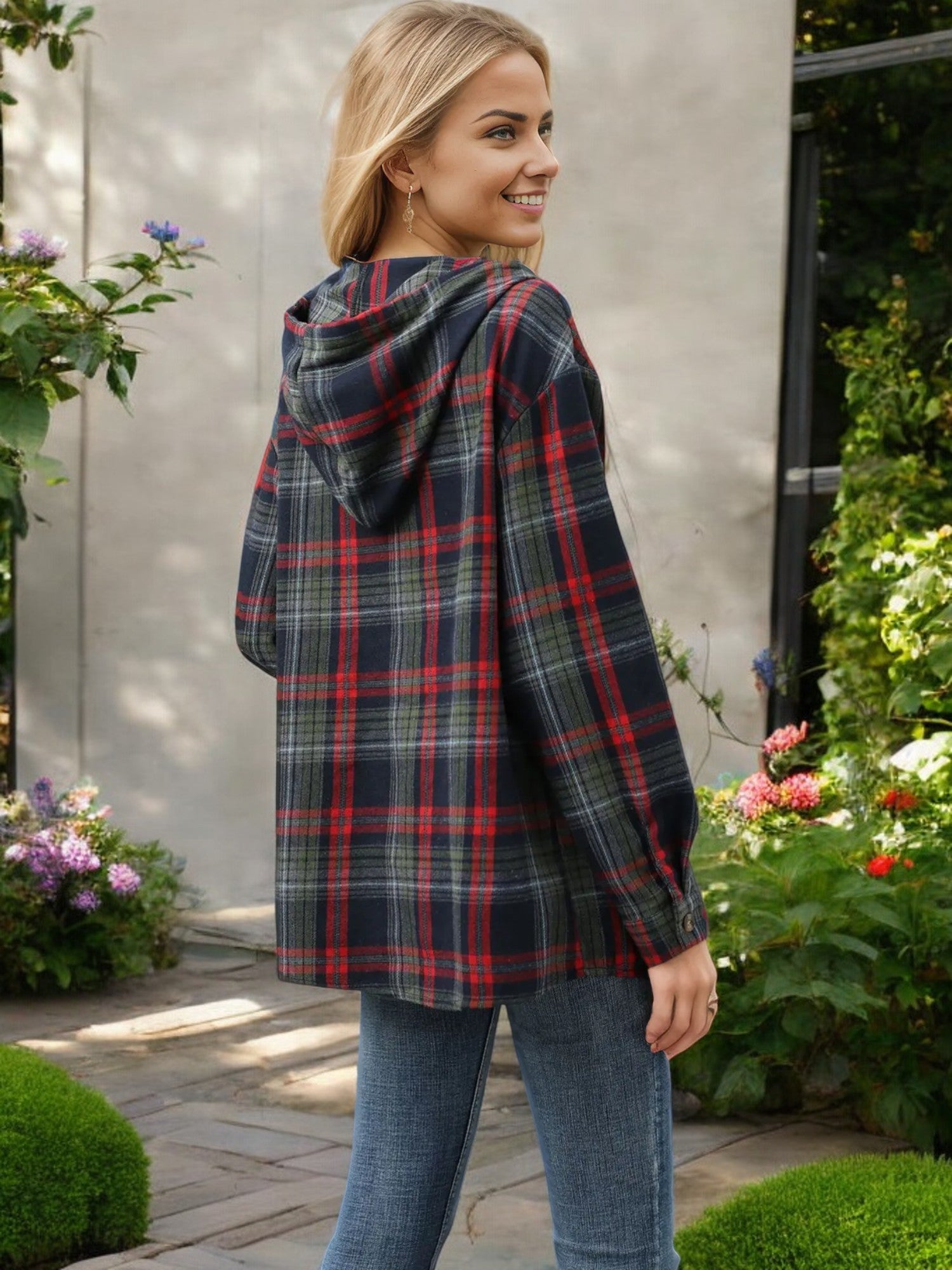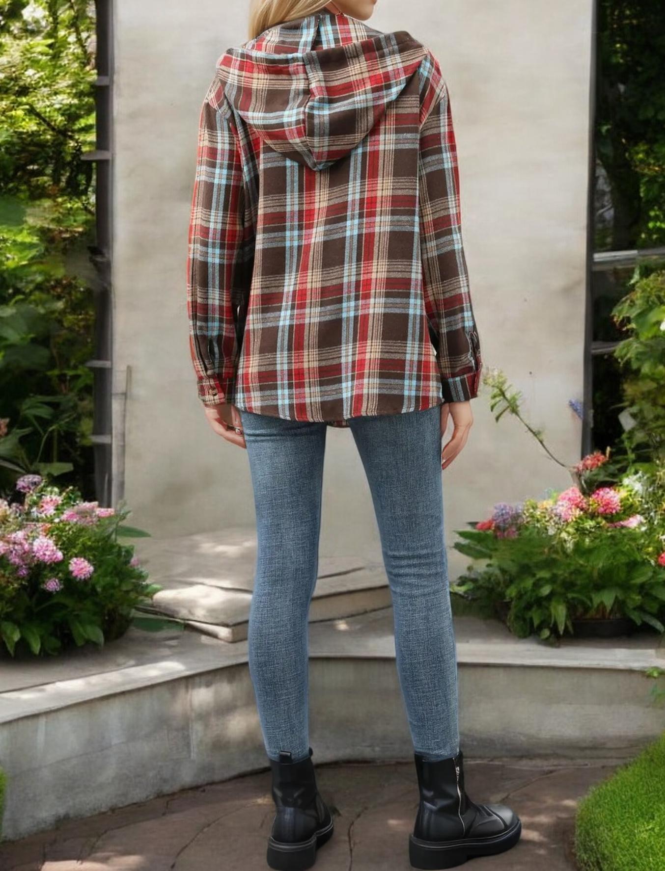 Stay cozy and stylish with this Plaid Hooded Button-Up Shirt, featuring a classic plaid pattern and comfortable hood with adjustable drawstring. The relaxed fit and button-up design make it perfect for layering over tees or wearing on its own. With its soft fabric and practical front pocket, this shirt is ideal for casual outings, weekend adventures, or cozy evenings by the fire. Pair it with jeans and boots for a laid-back yet trendy look that's perfect for any season.