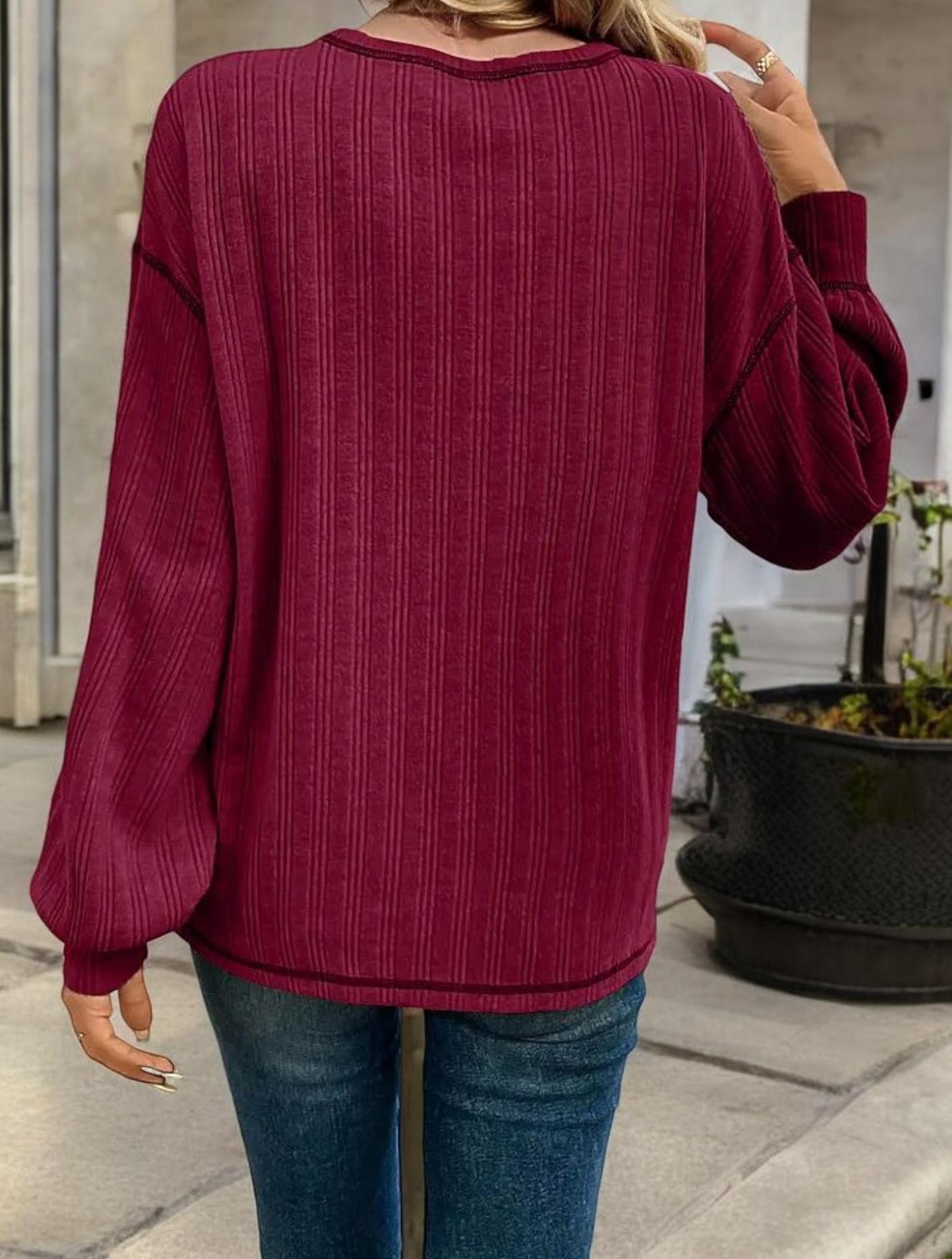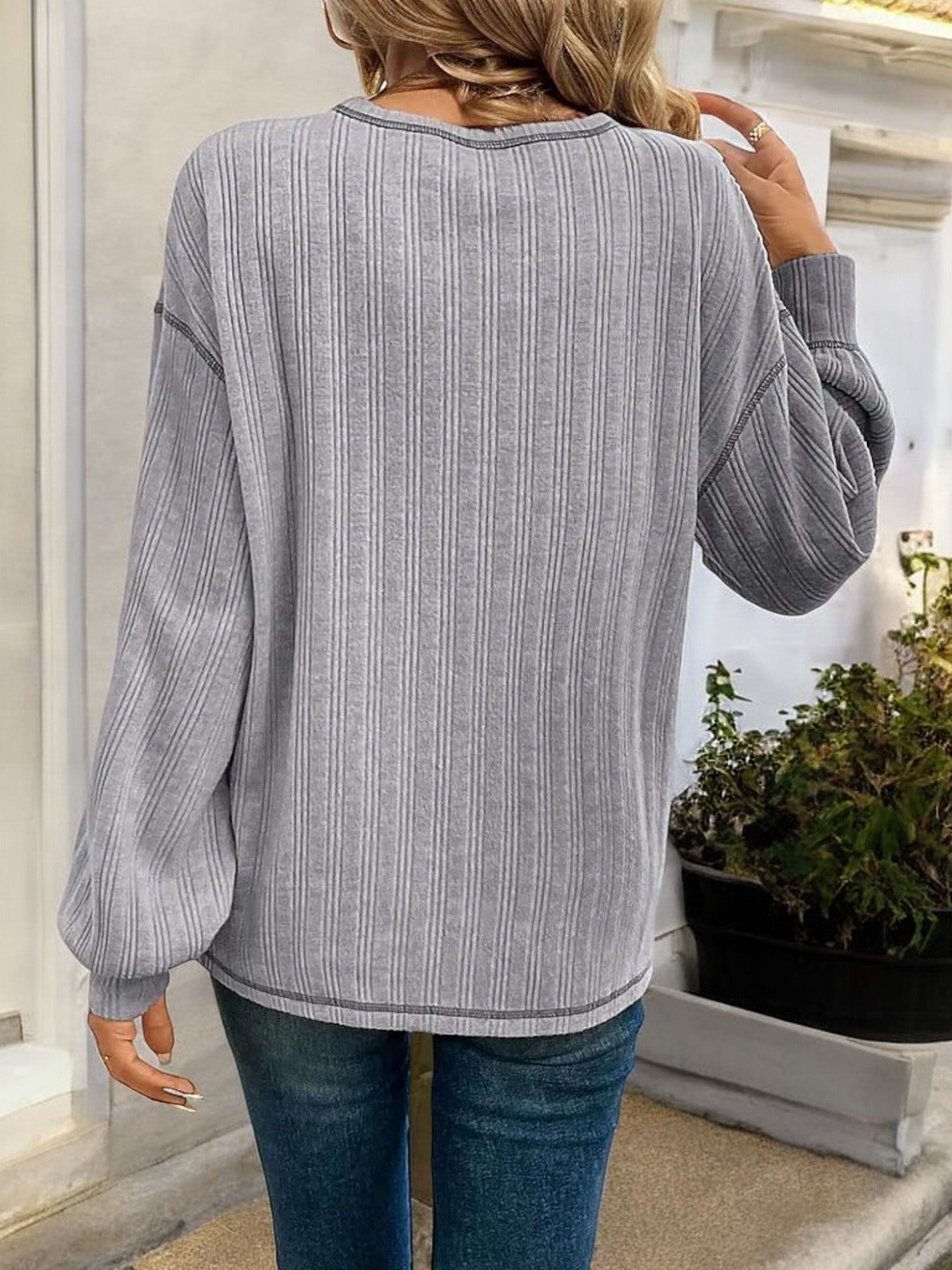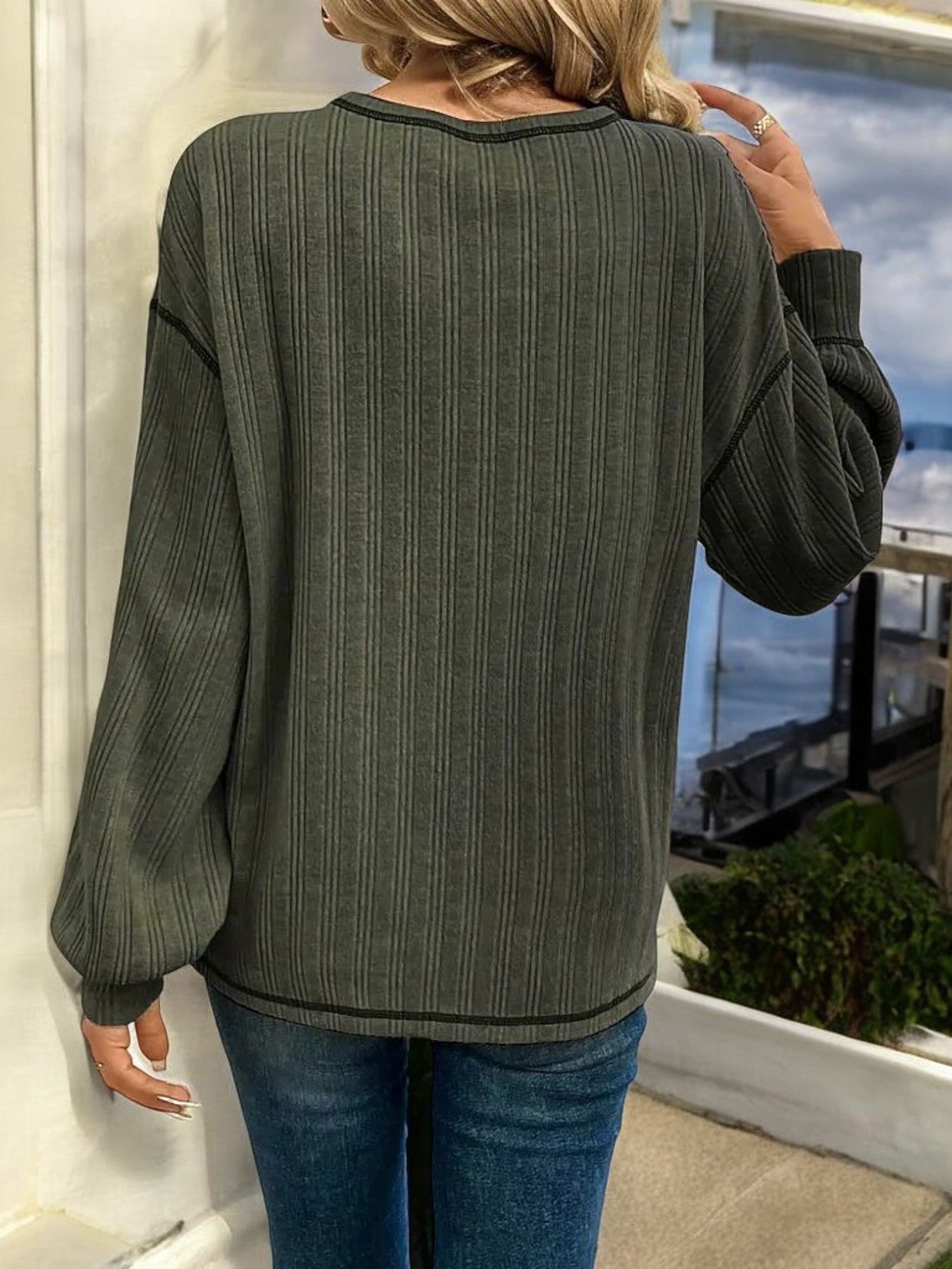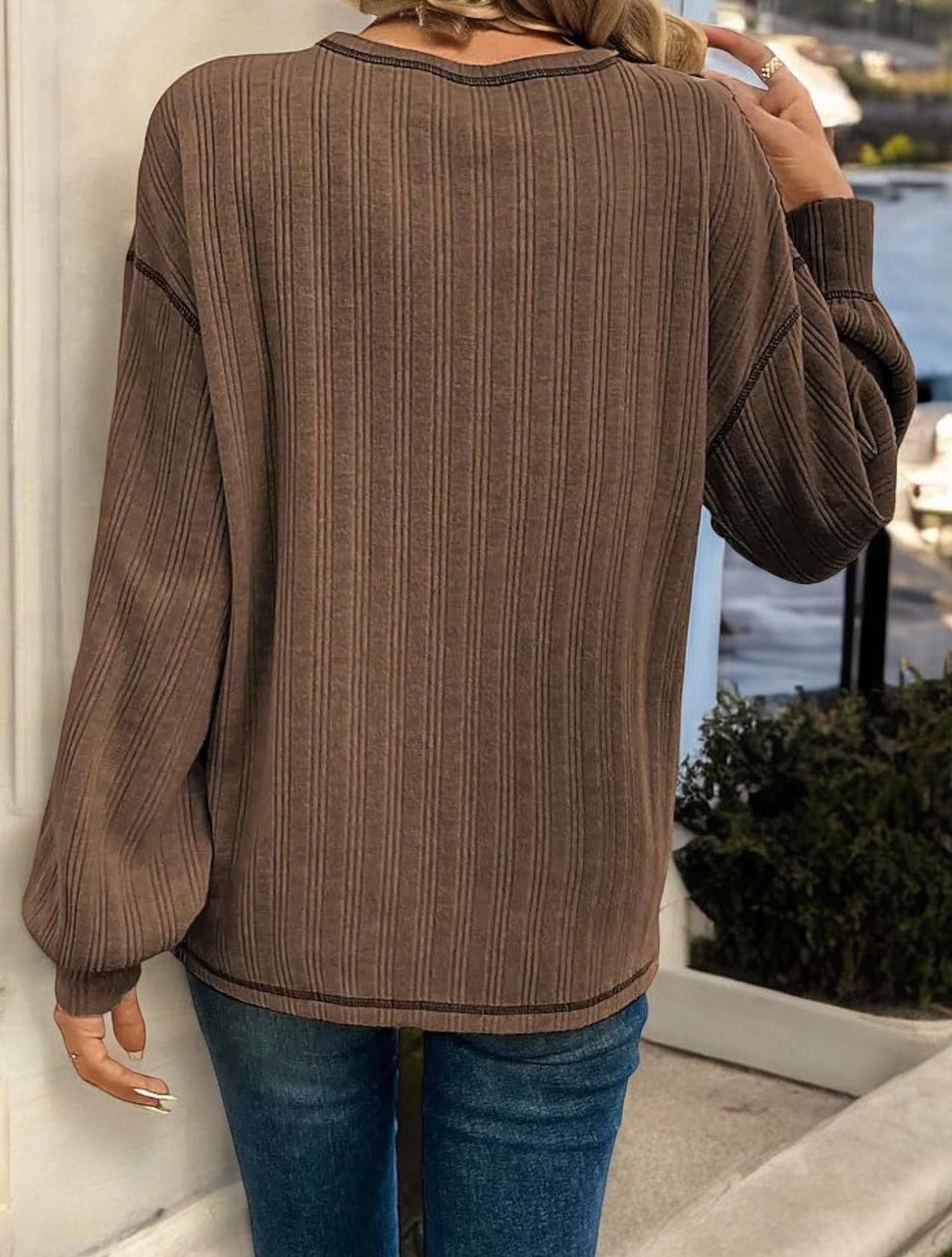 Striped Long Sleeve Top with Front Pocket and Relaxed Fit
