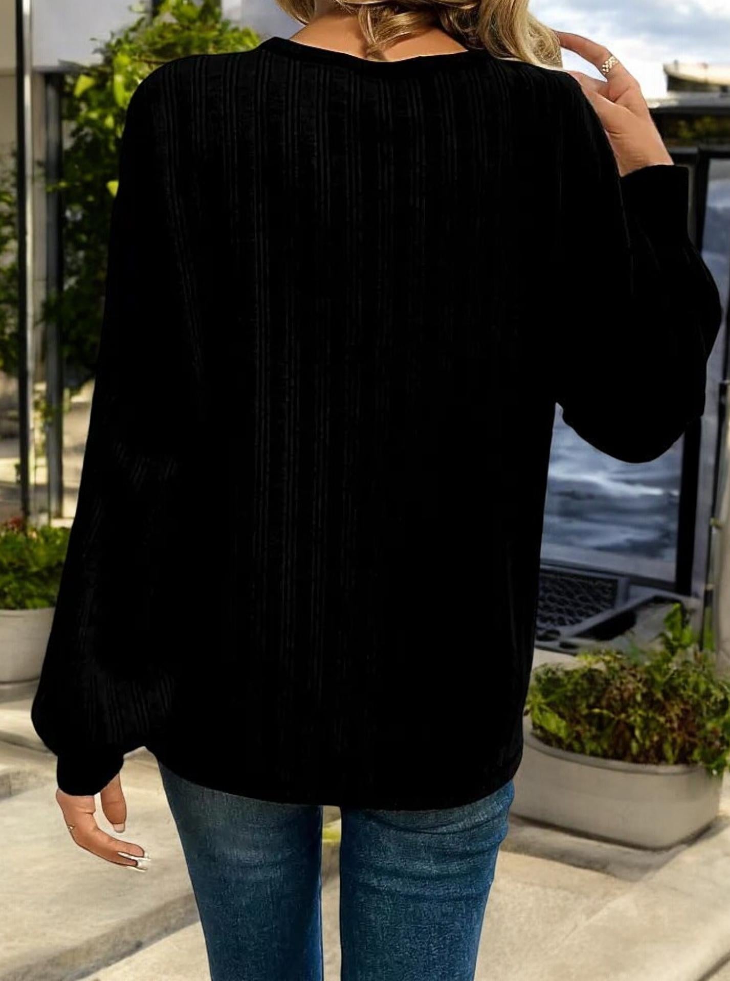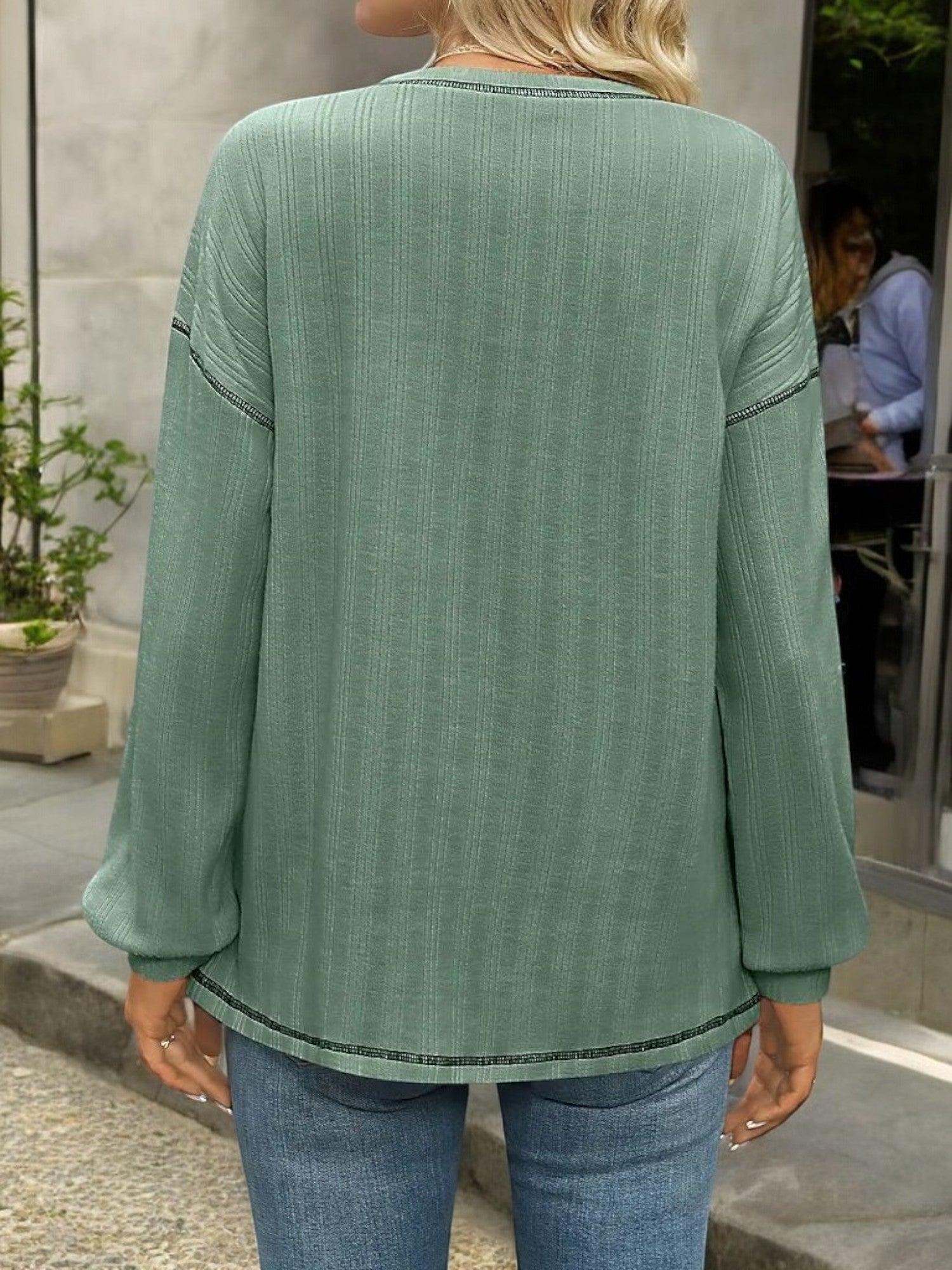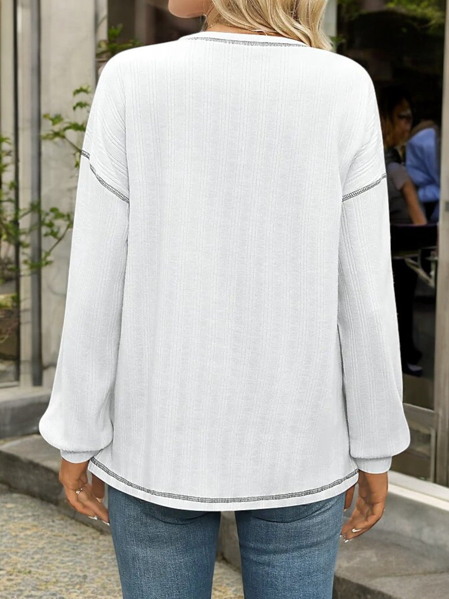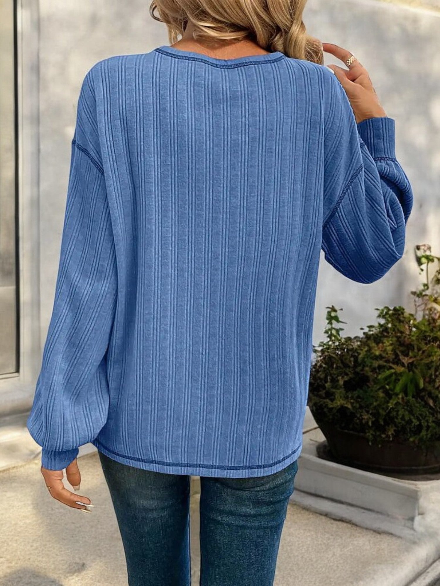 Striped Long Sleeve Top with Front Pocket and Relaxed Fit