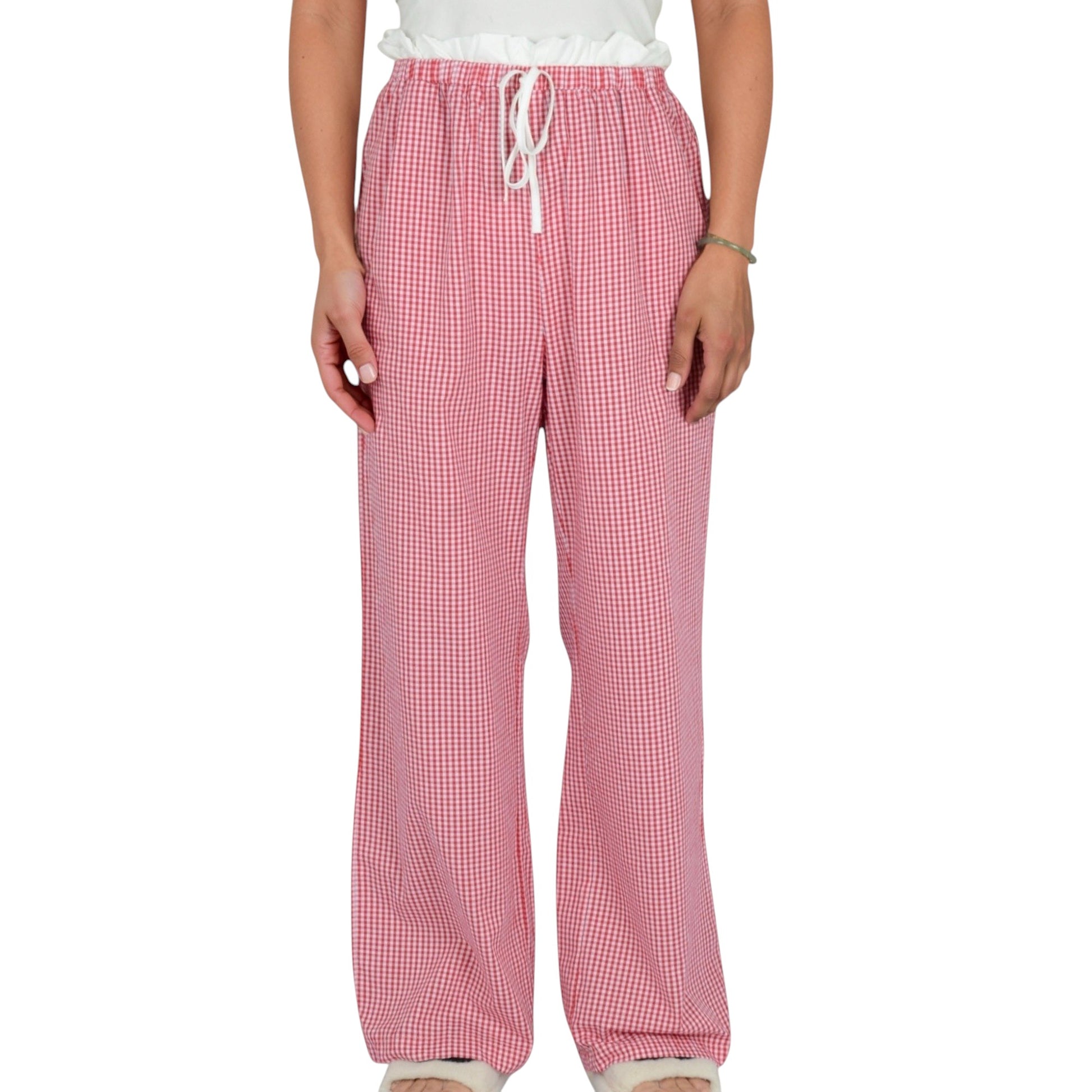 Anna-Kaci Lounge Women's Gingham Print Lounge Pants with Elastic Drawstring Waist and Relaxed Straight Leg Fit