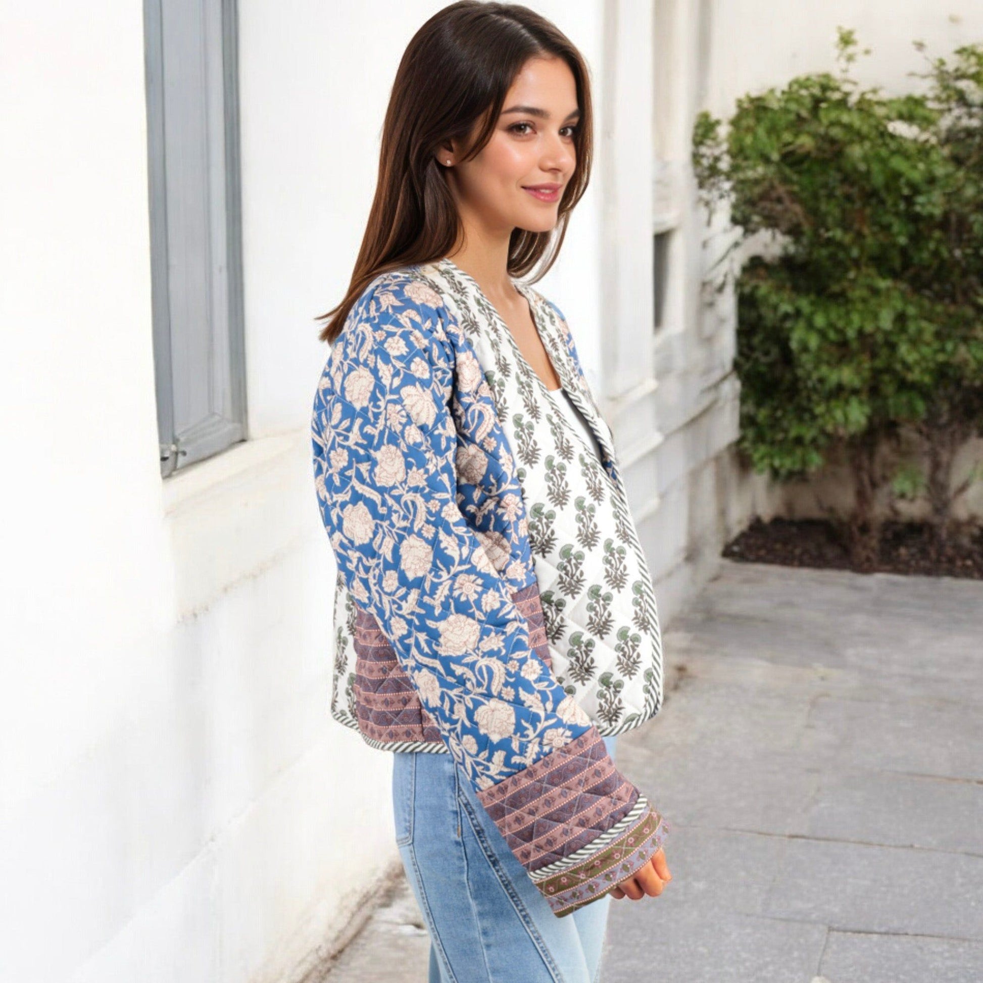 Patchwork Open Front Jacket with Floral and Geometric Prints