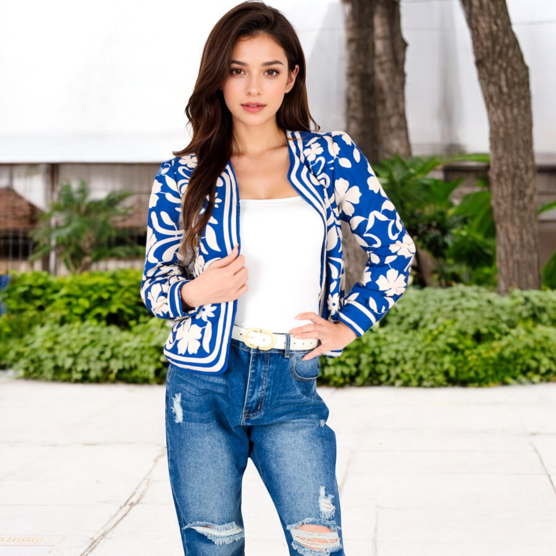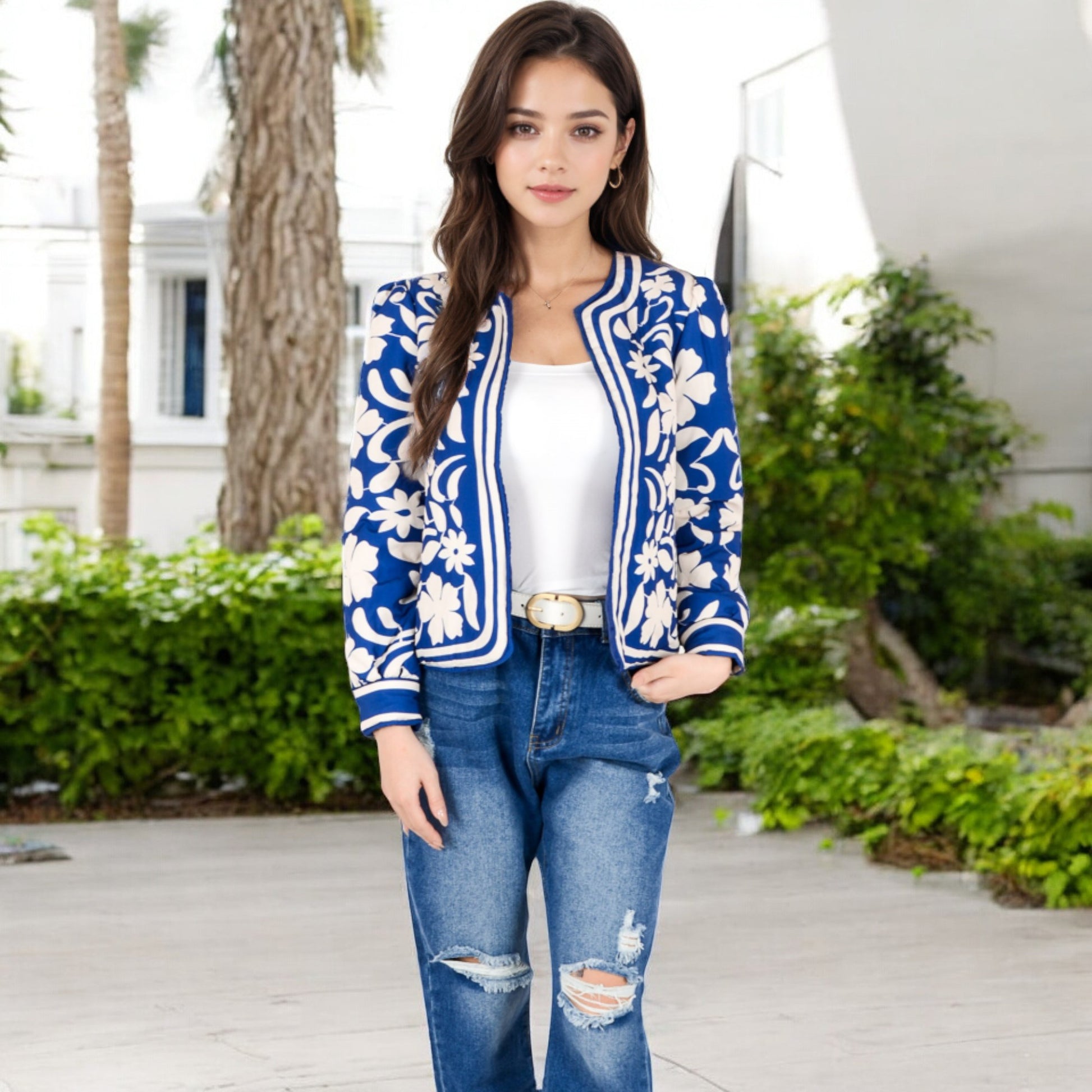 This elegant open-front jacket features intricate floral embroidery that adds a touch of sophistication to any outfit. The puff sleeves give a modern, chic silhouette, making it versatile for both casual and formal occasions. With its unique detailing and tailored fit, this jacket effortlessly elevates your look when layered over a simple top. Perfect for adding texture and style to your wardrobe staples.