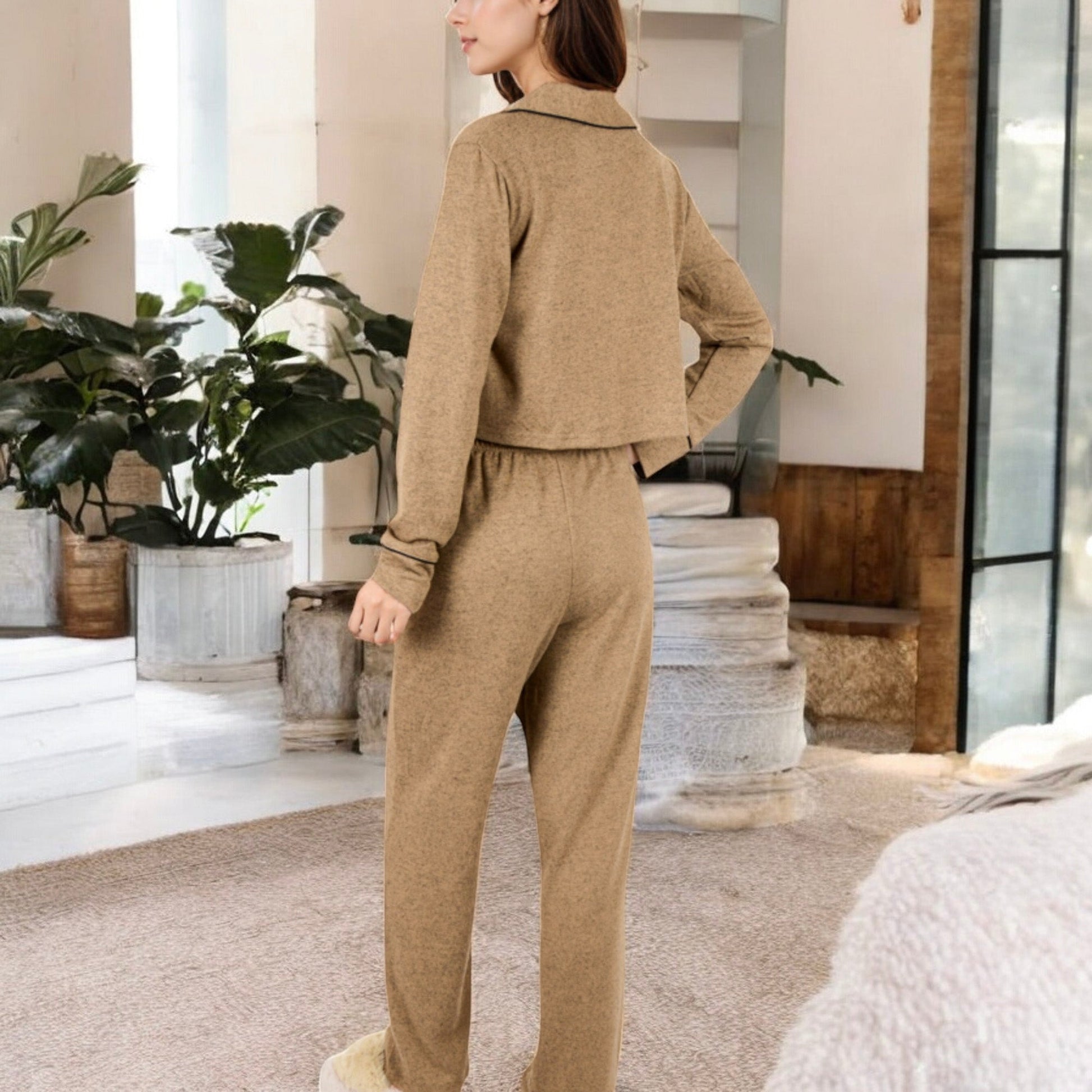 Anna-Kaci Women's Long Sleeve Button-Up Pajama Set with Piped Trim Details and Relaxed Fit