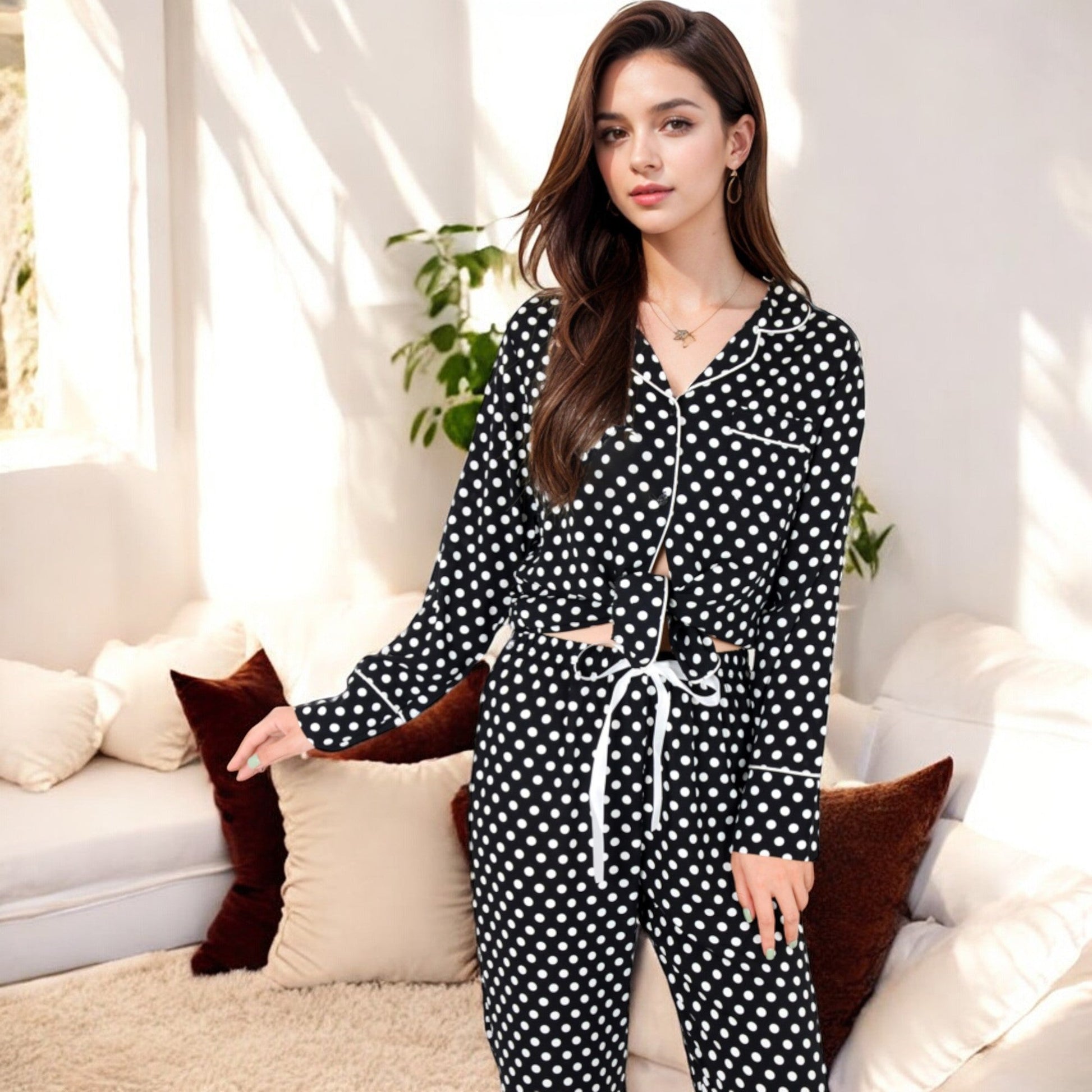 Anna-Kaci Women's Polka Dot Long Sleeve Pajama Set with Button-Up Top and Drawstring Pants