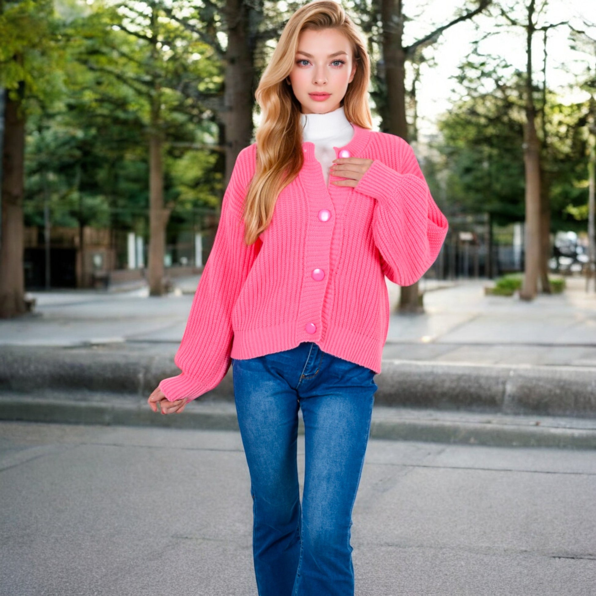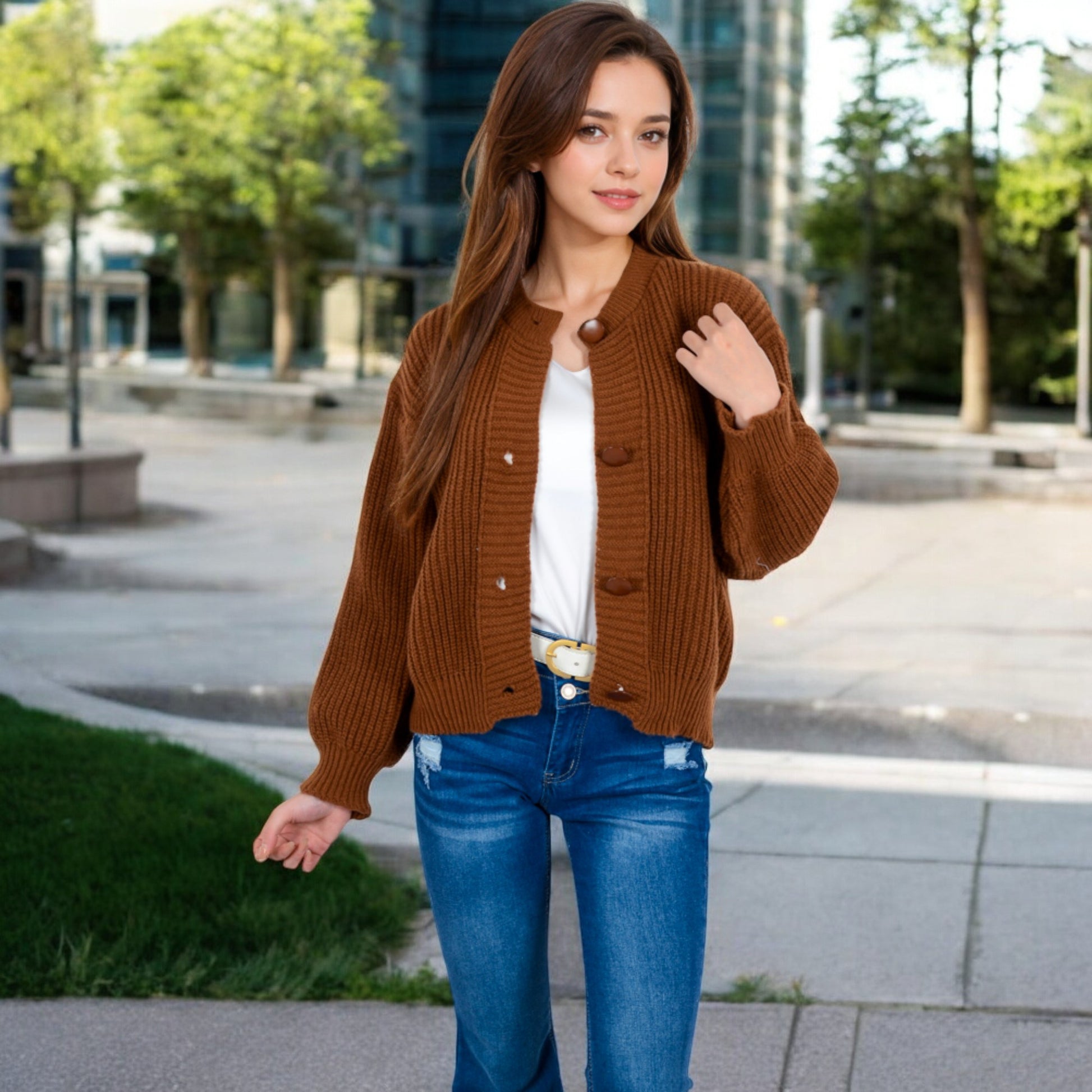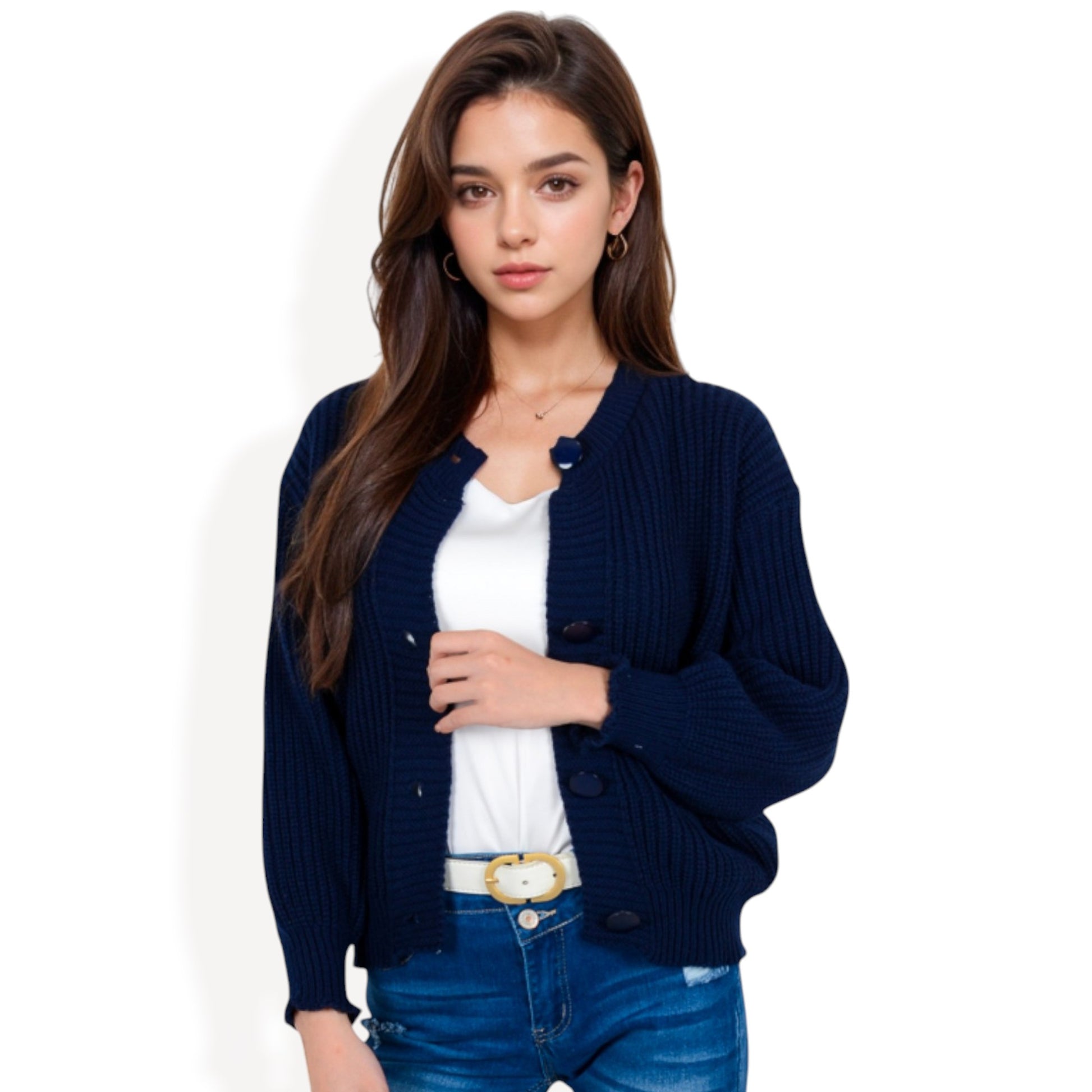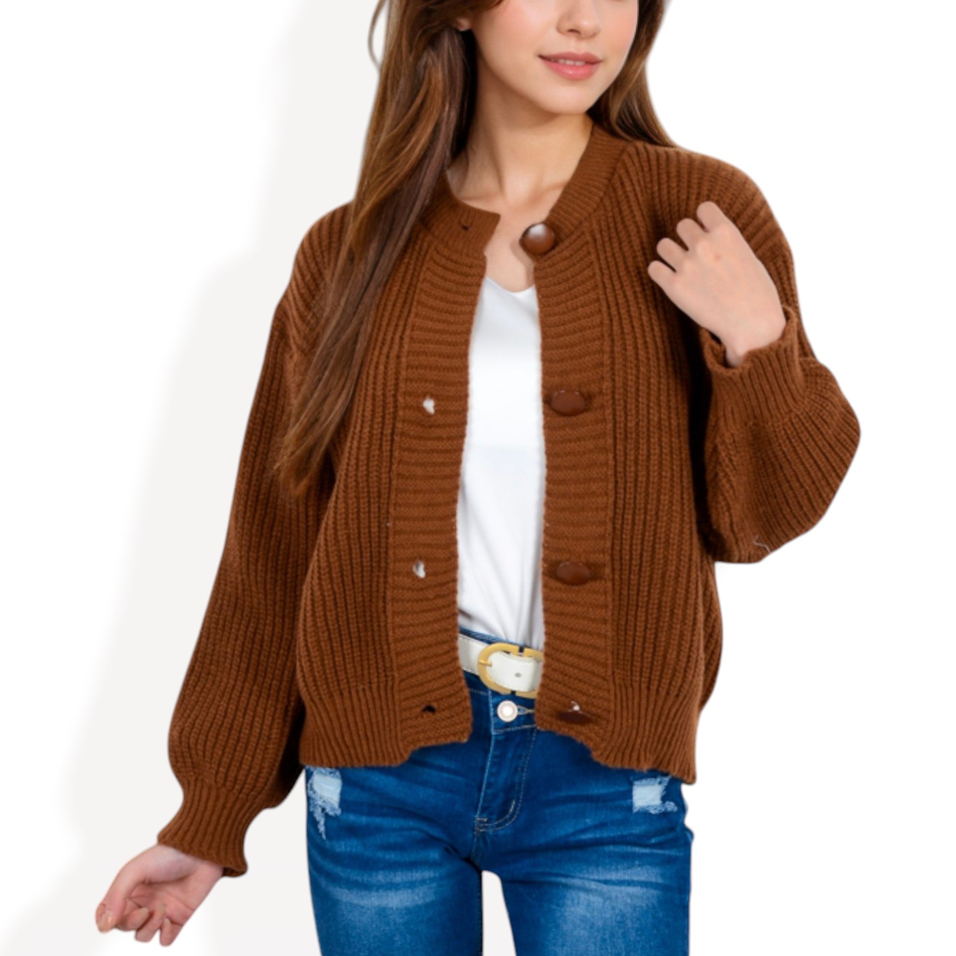Anna-Kaci Women's Chunky Knit Sweater with Button Front and Ribbed Textured Design