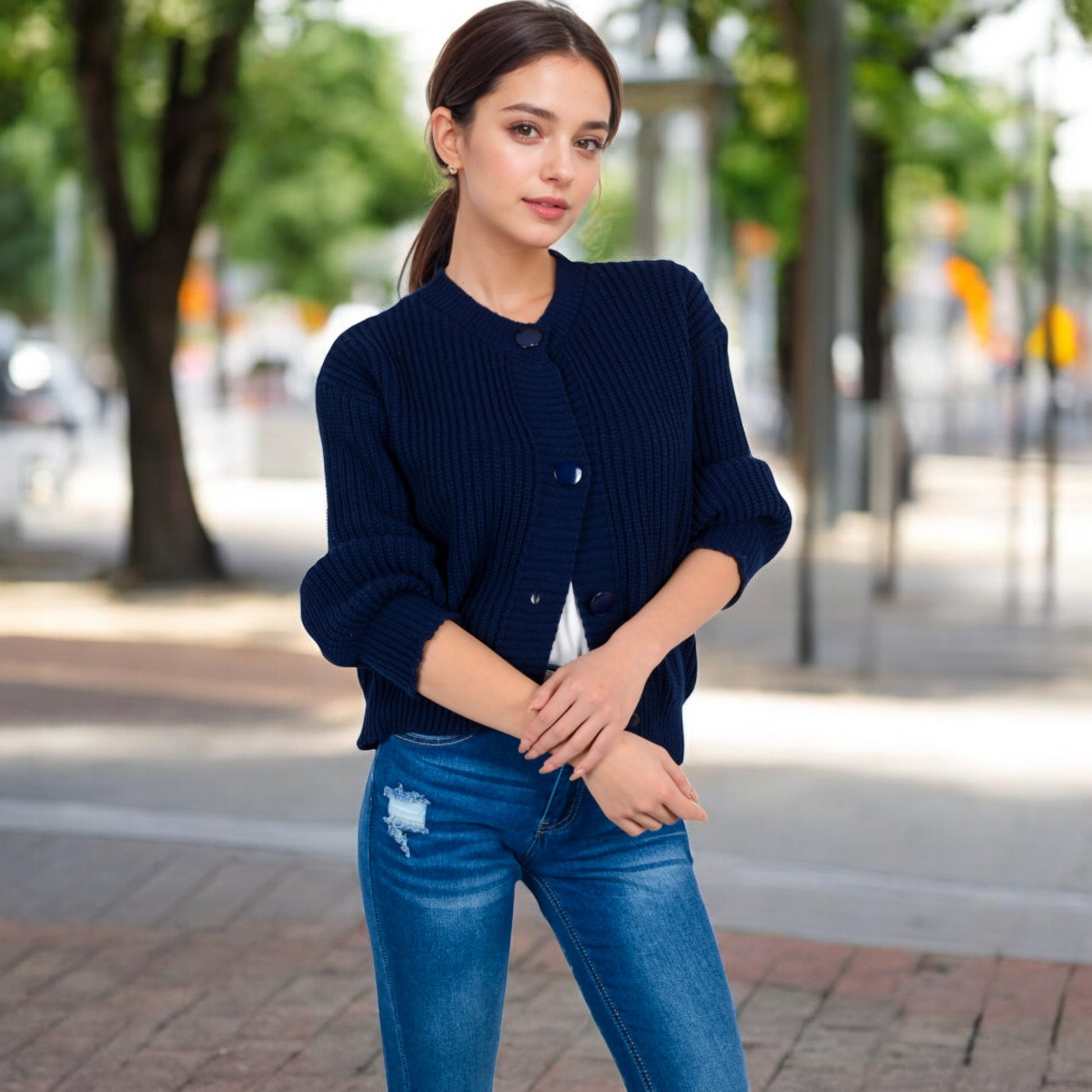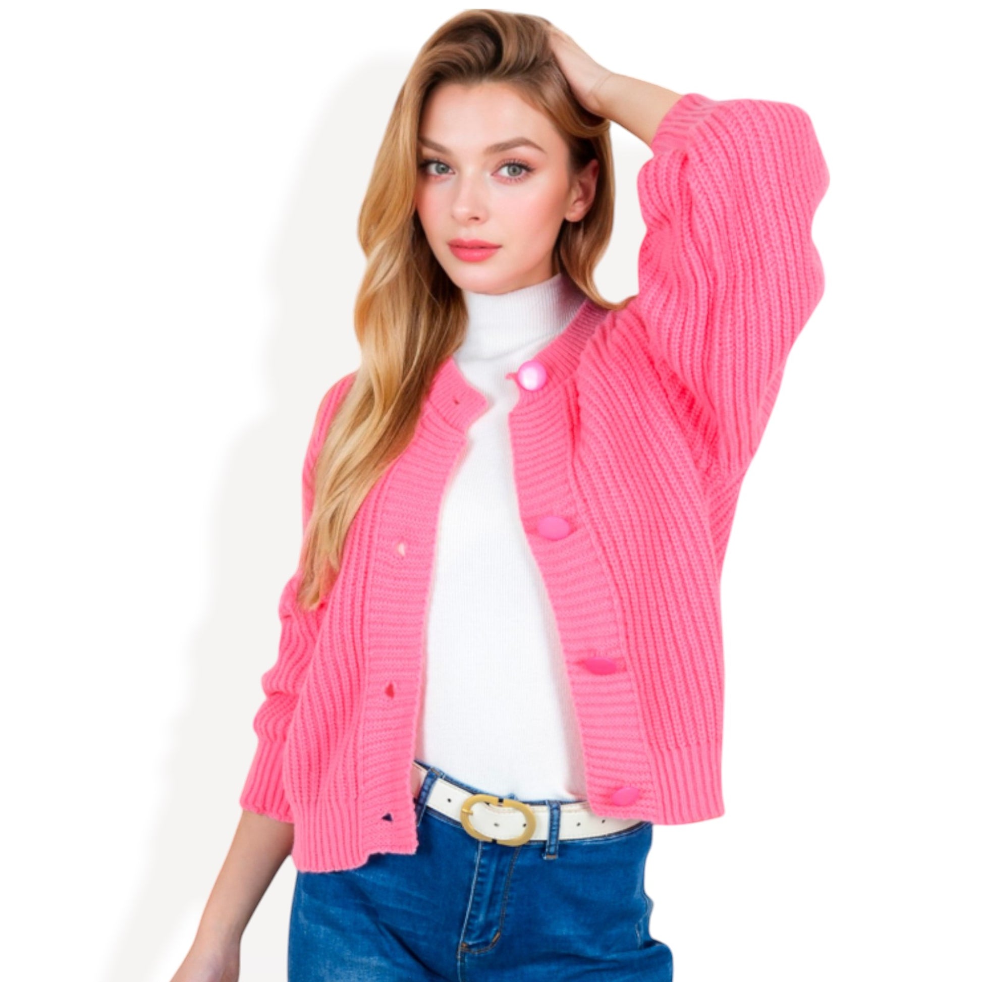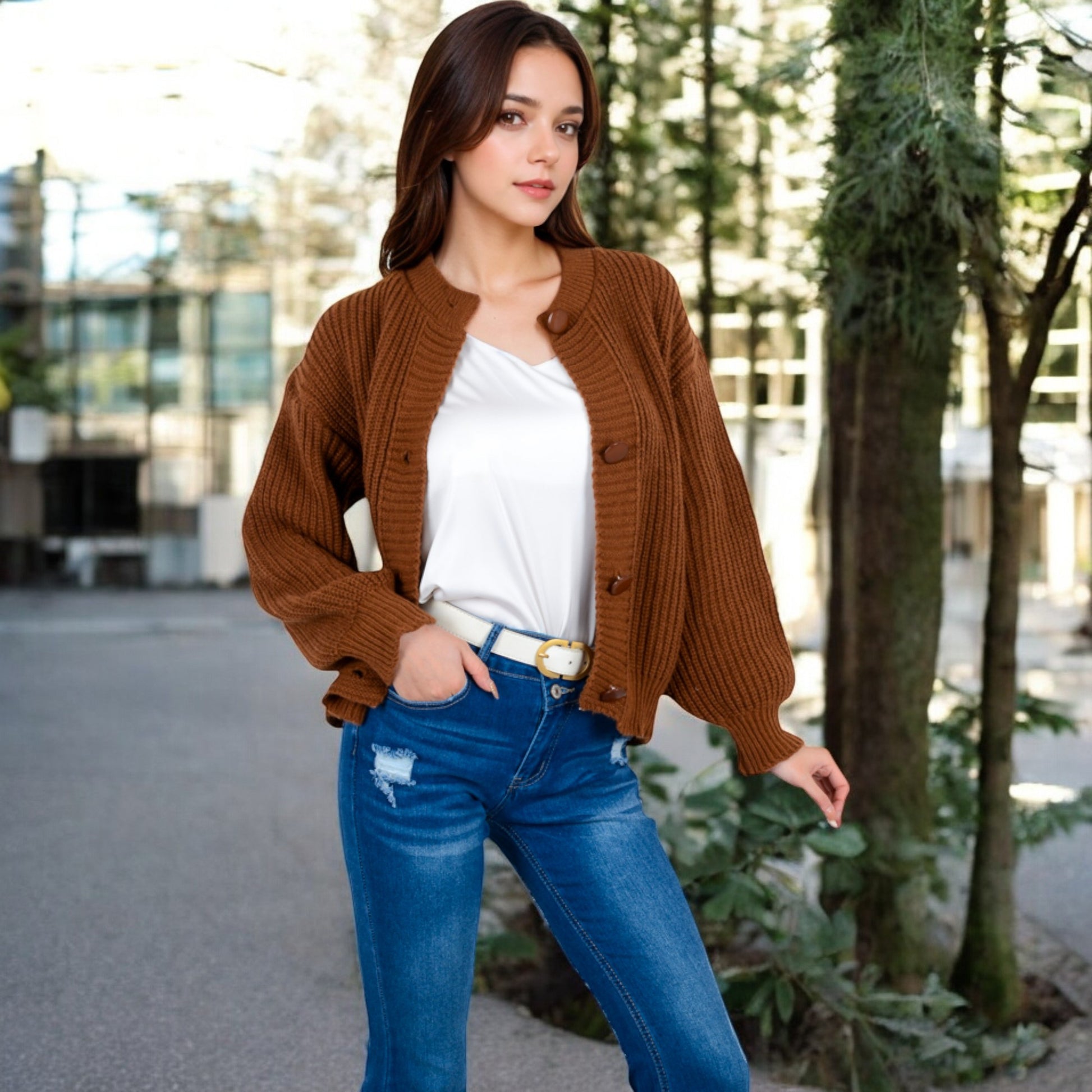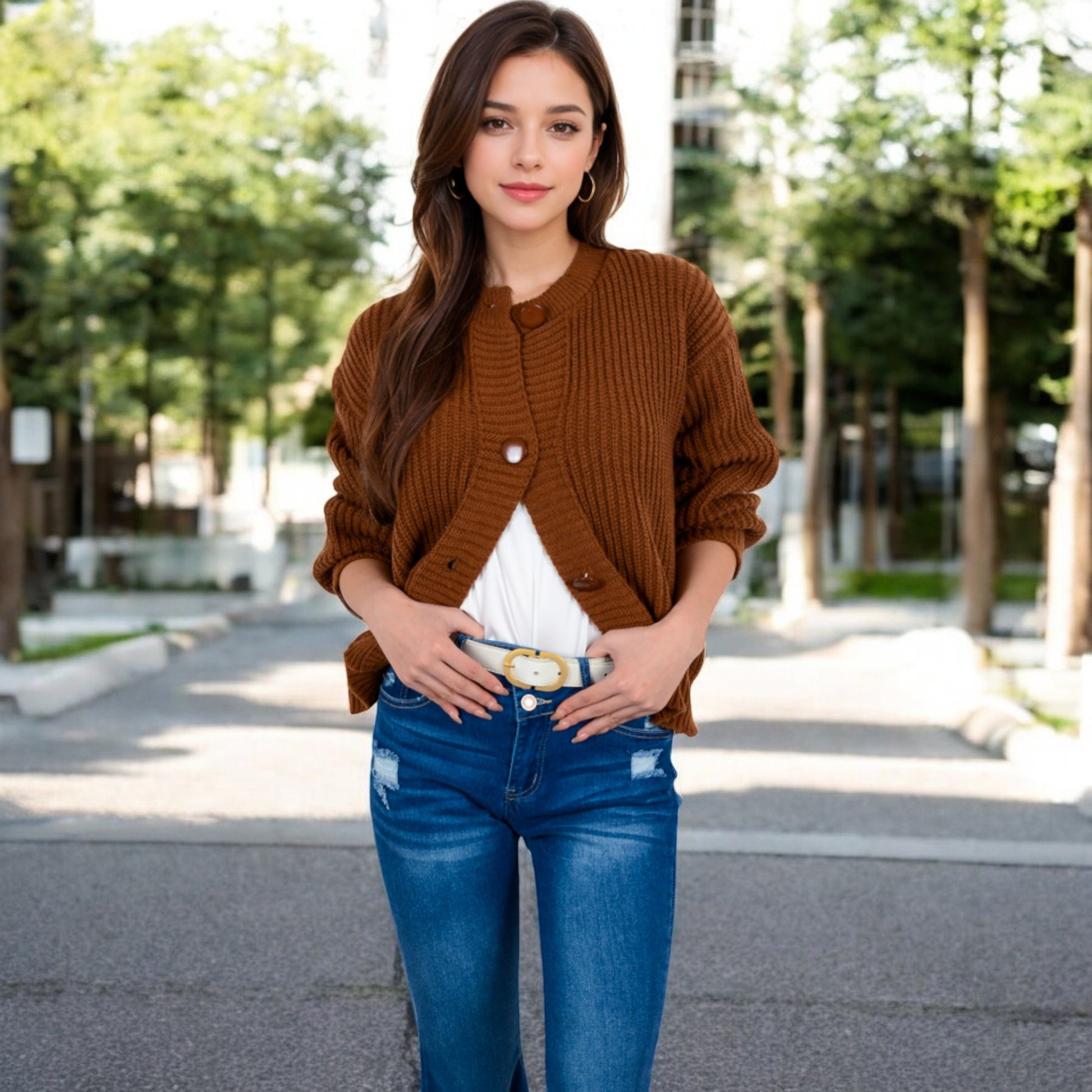 Anna-Kaci Women's Chunky Knit Sweater with Button Front and Ribbed Textured Design