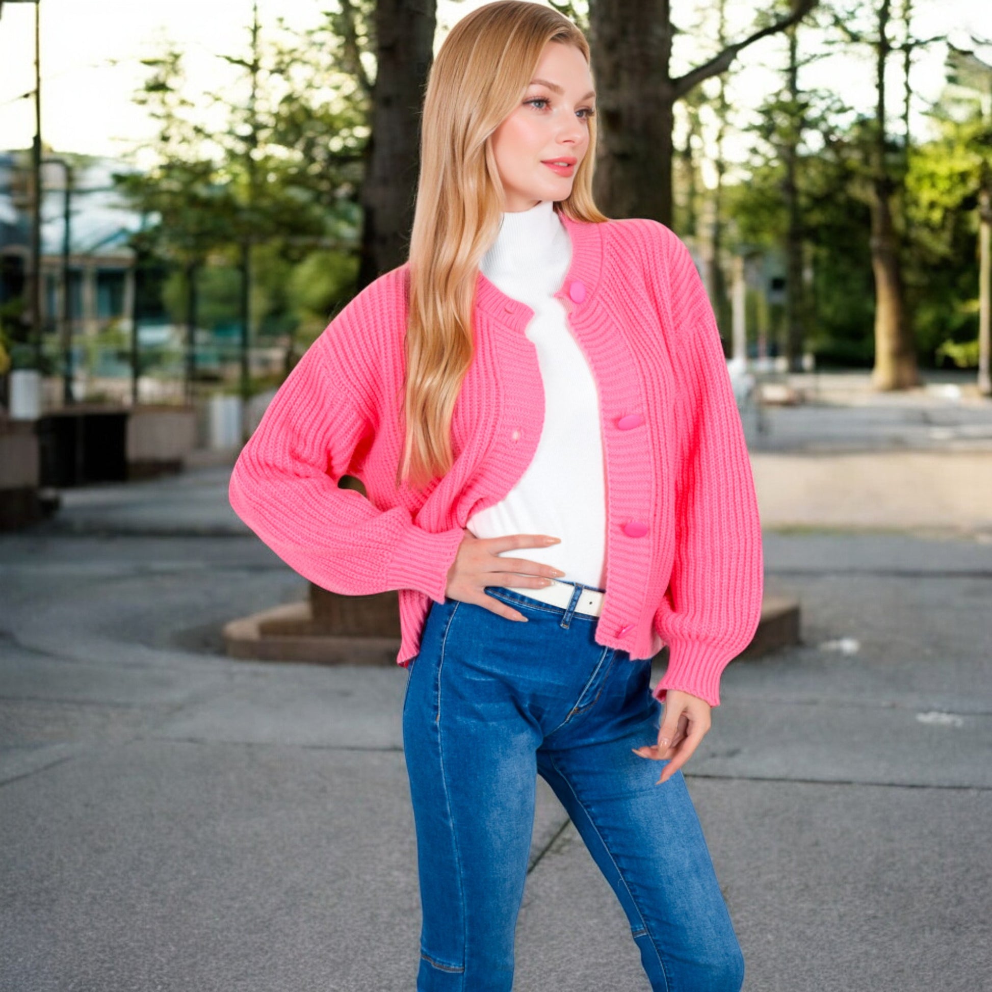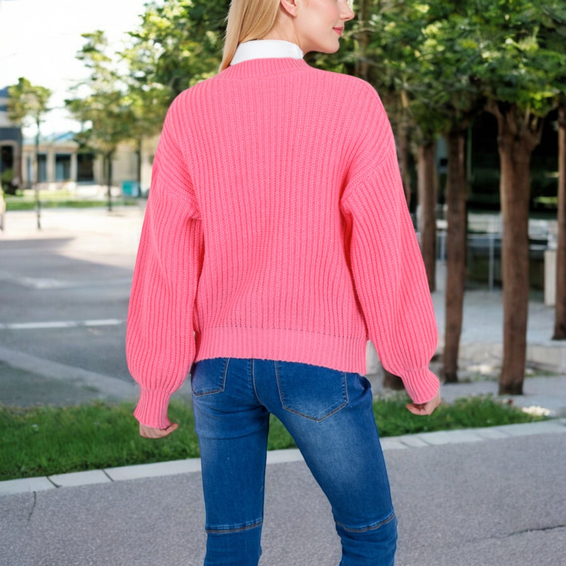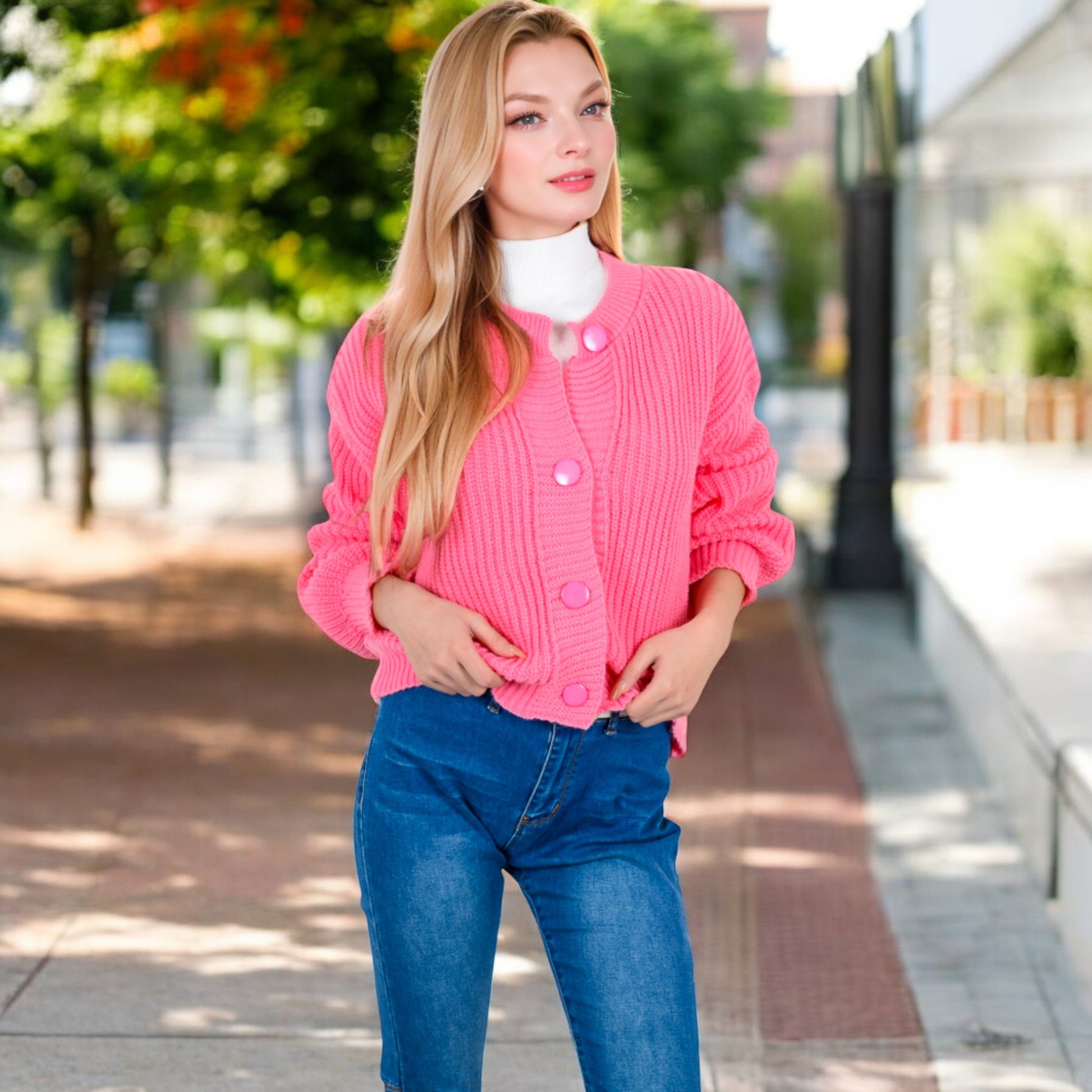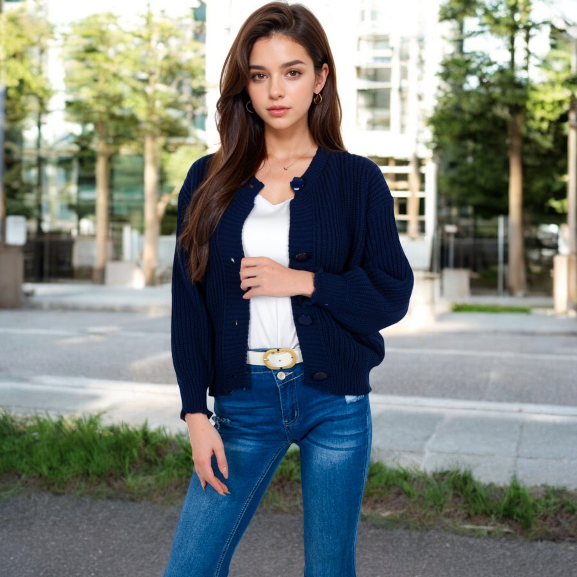 Anna-Kaci Women's Chunky Knit Sweater with Button Front and Ribbed Textured Design
