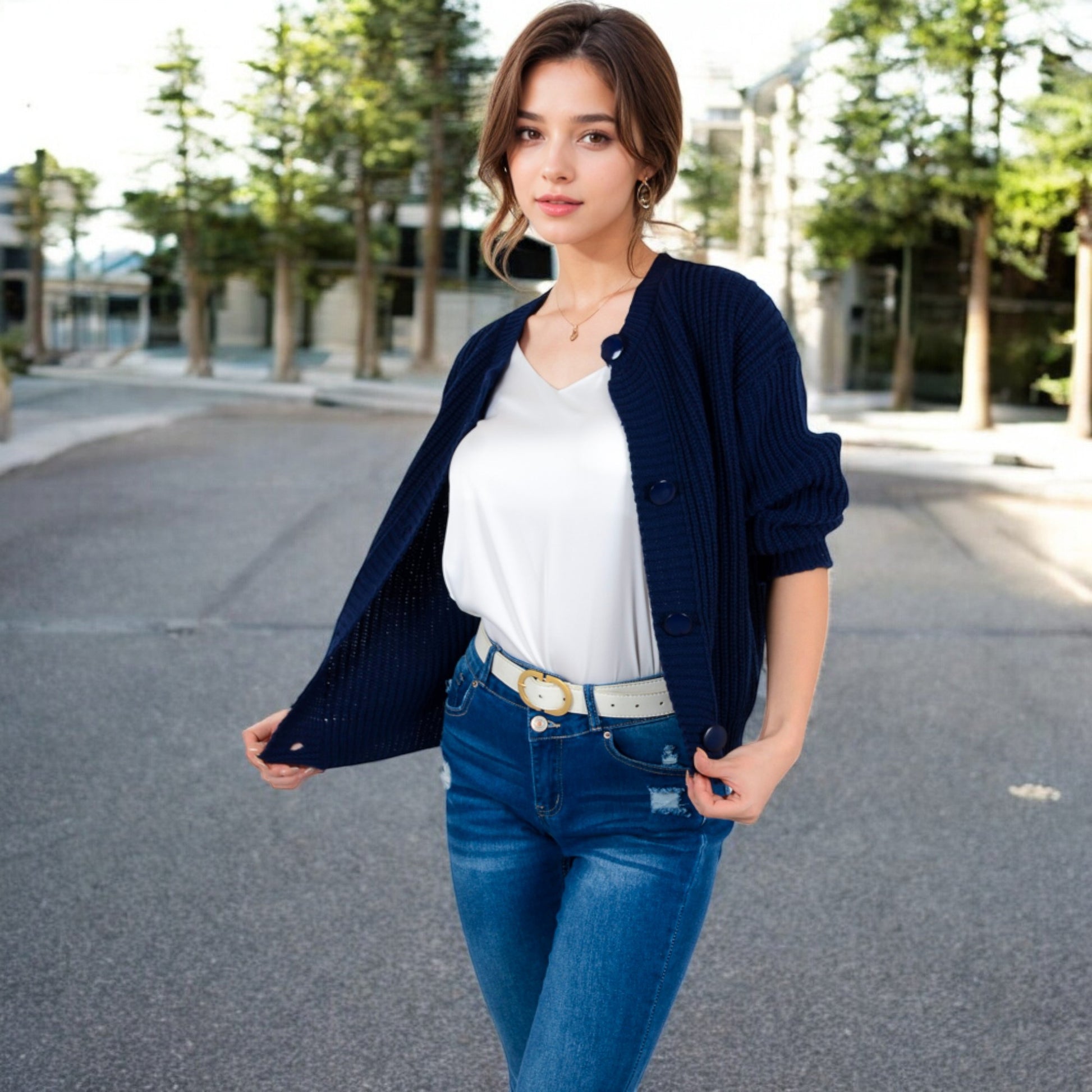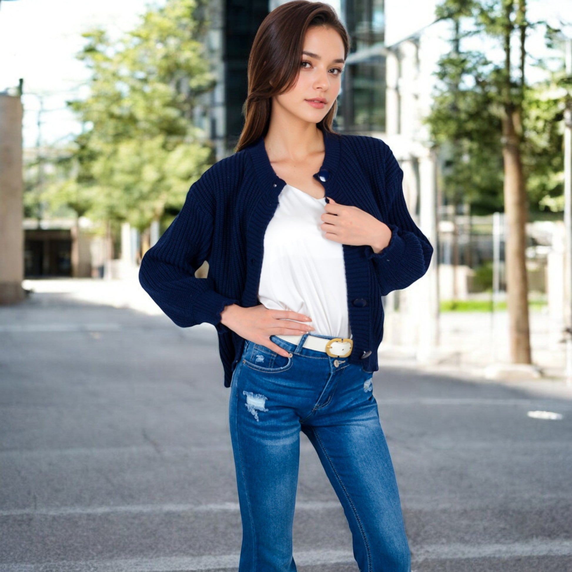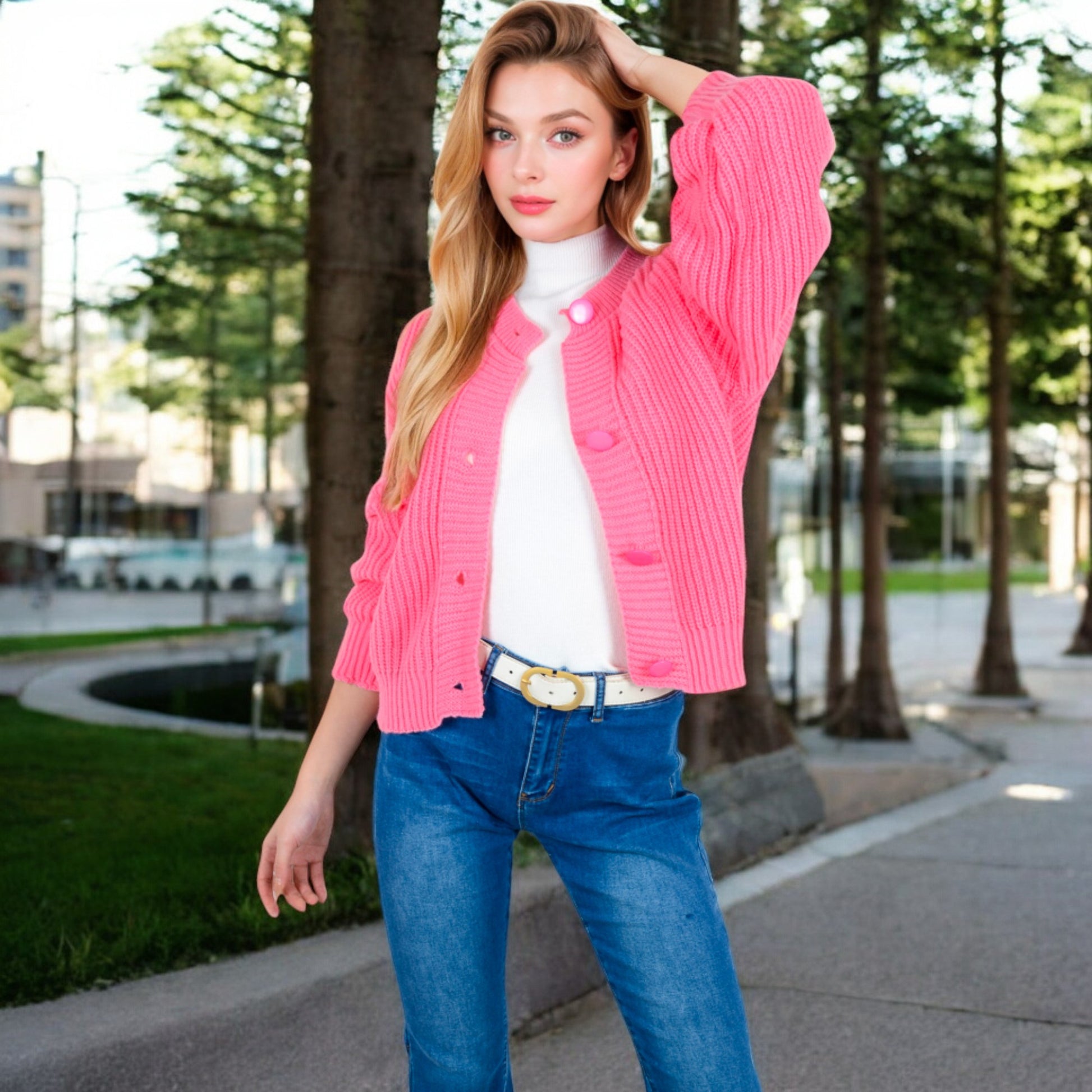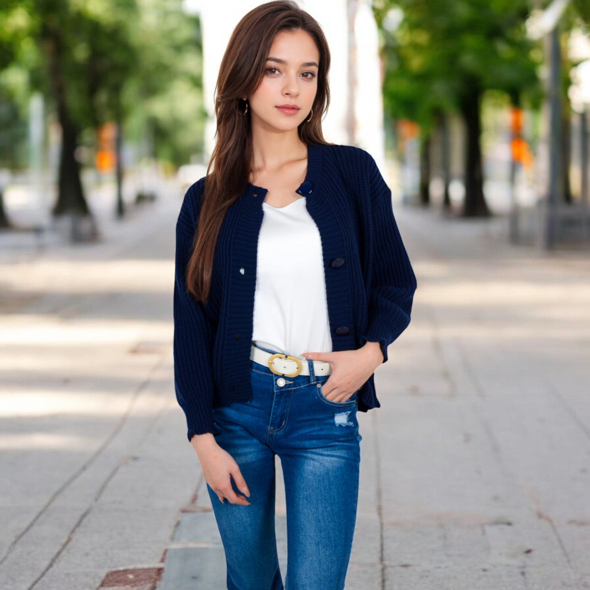 Anna-Kaci Women's Chunky Knit Sweater with Button Front and Ribbed Textured Design