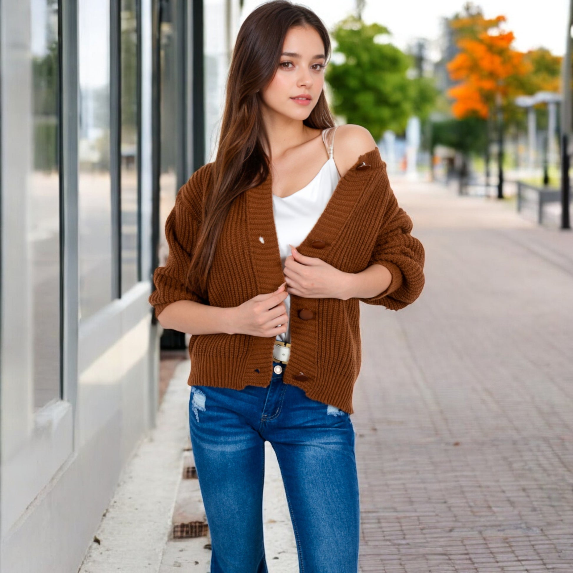 Anna-Kaci Women's chunky knit sweater features a cozy ribbed texture with a button-front design for a stylish yet relaxed look. The oversized fit and dropped shoulders ensure maximum comfort while creating a laid-back silhouette. Crafted from soft, warm fabric, this sweater is perfect for layering over your favorite tops. The versatile design combines classic detailing with a modern touch, making it a staple piece for effortless style.