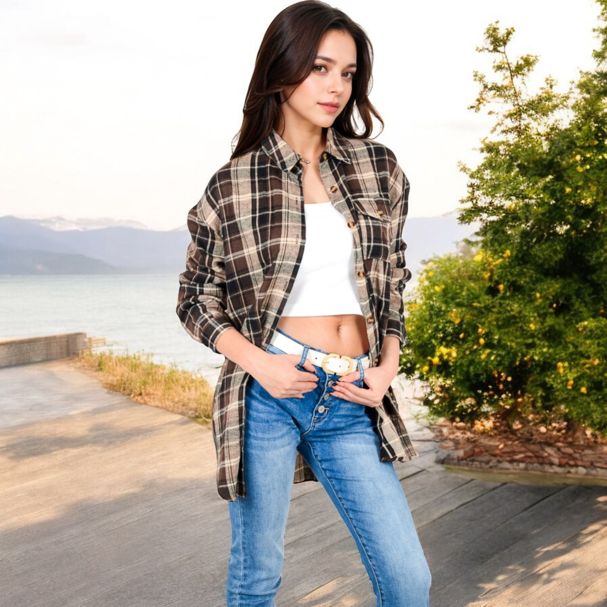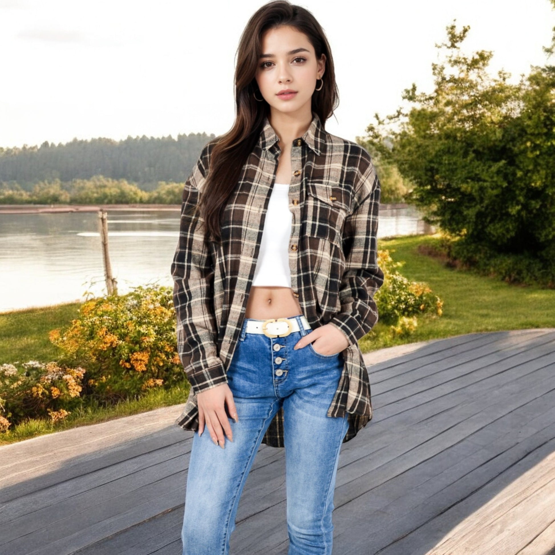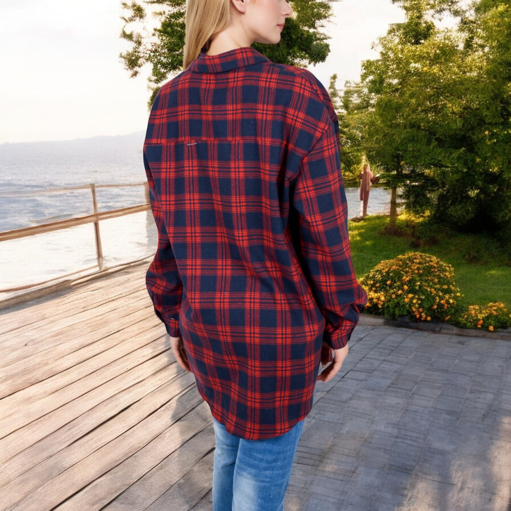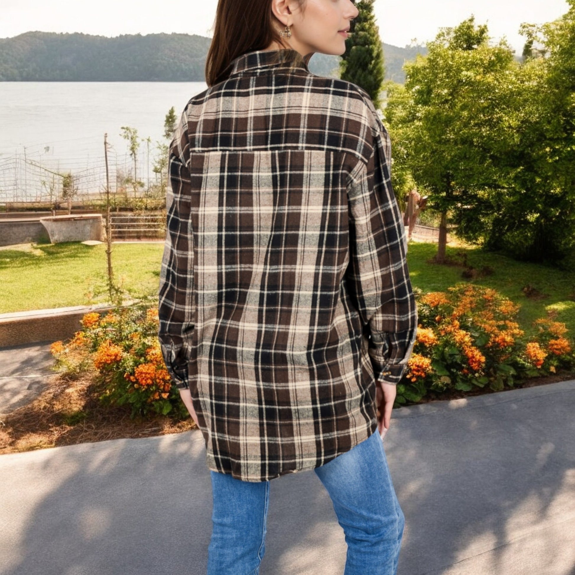 Anna-Kaci Women's Long Sleeve Plaid Button-Up Shirt Jacket with Collared Neckline
