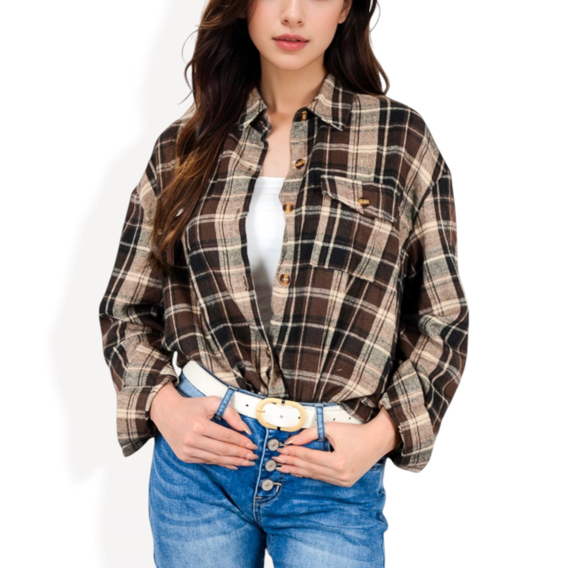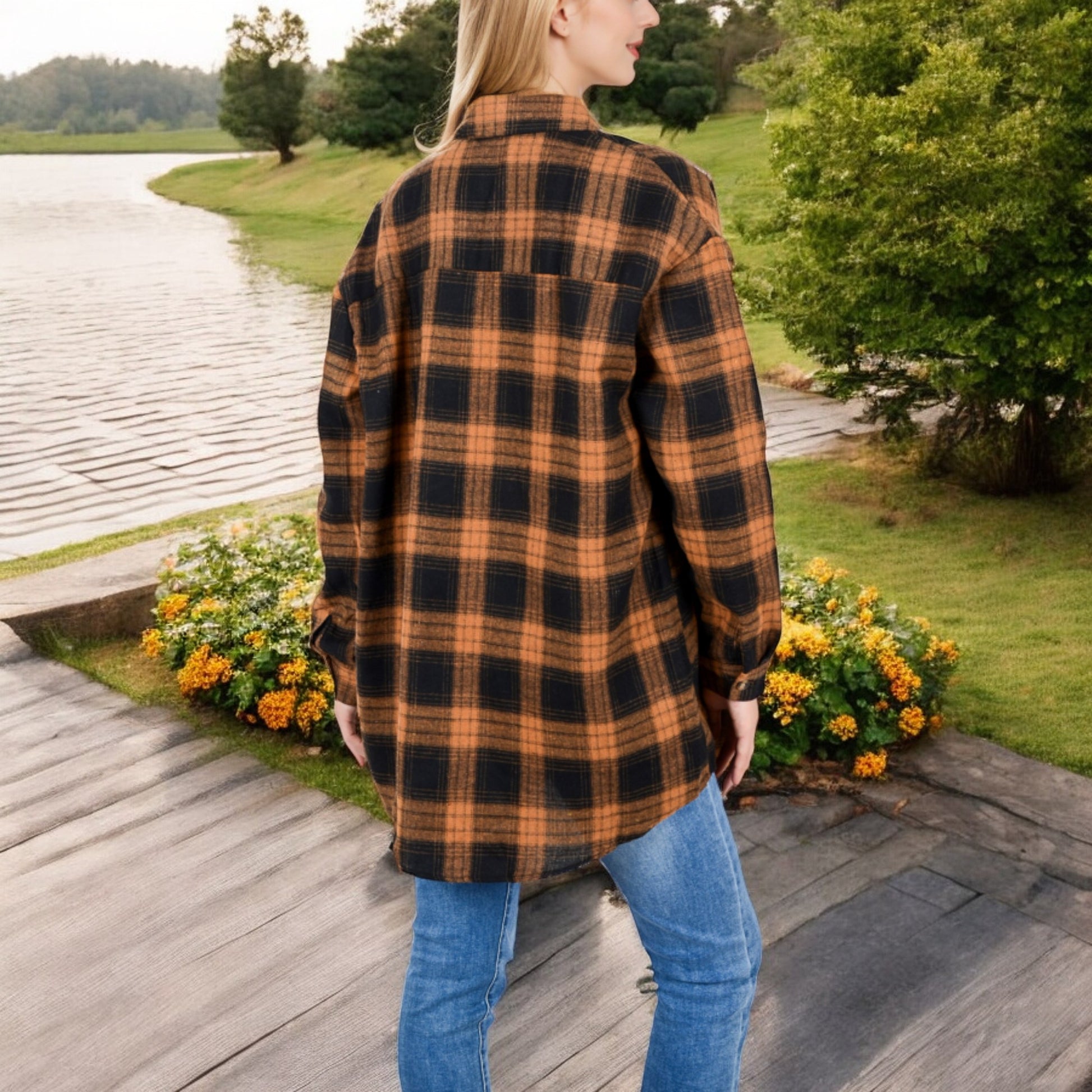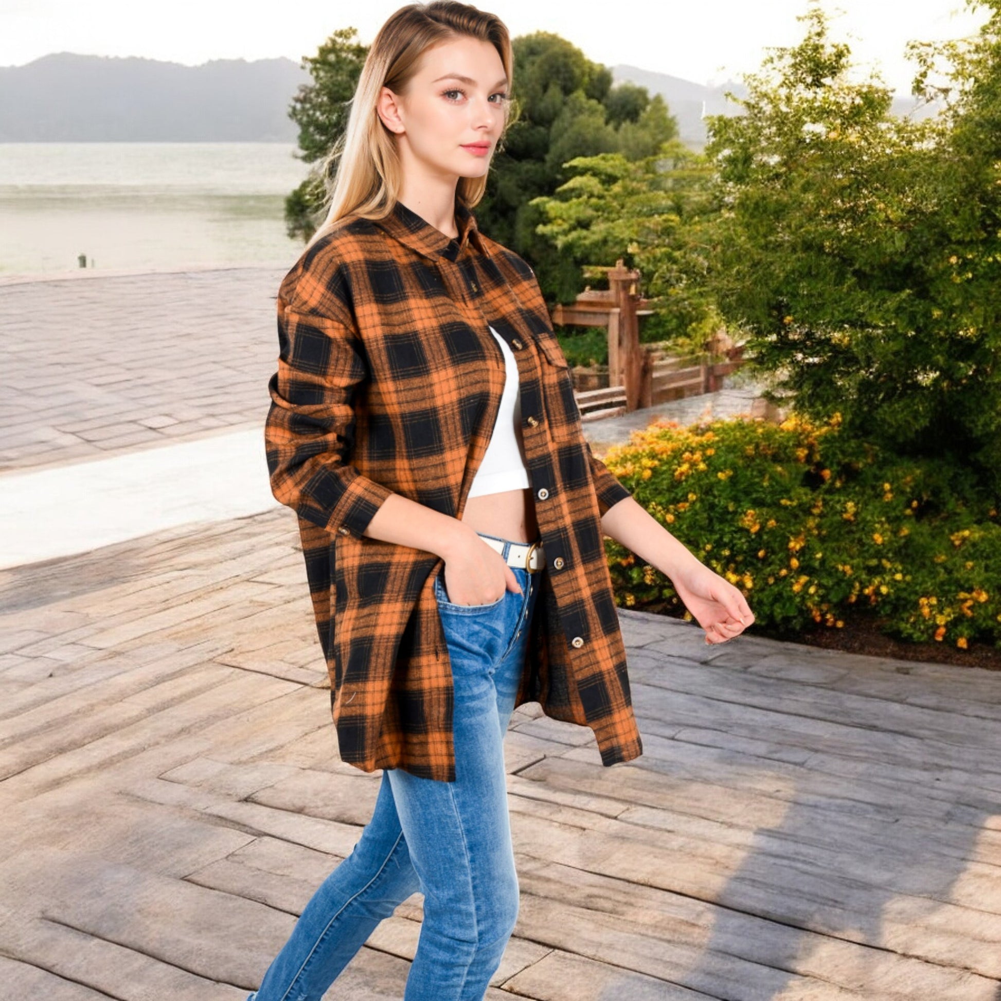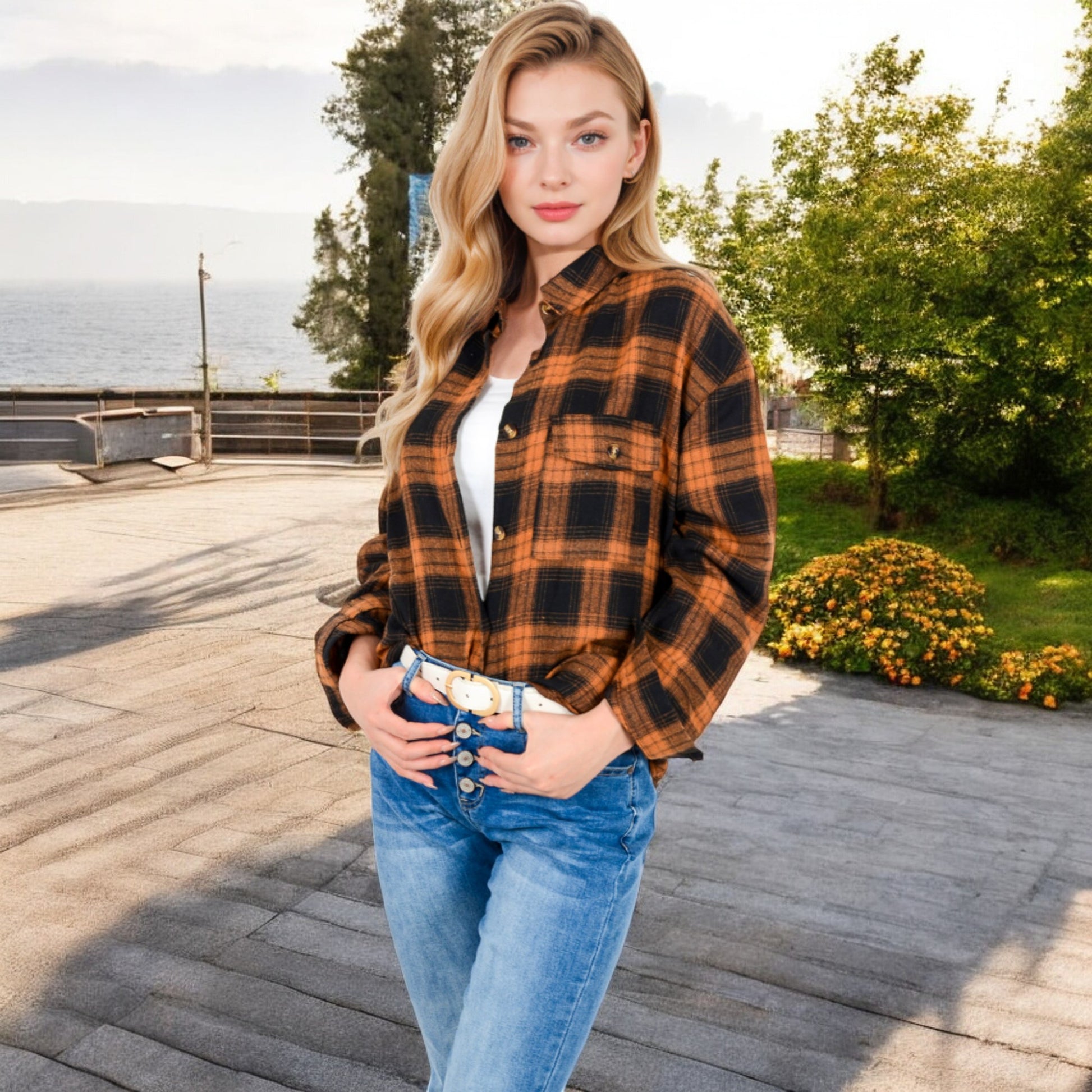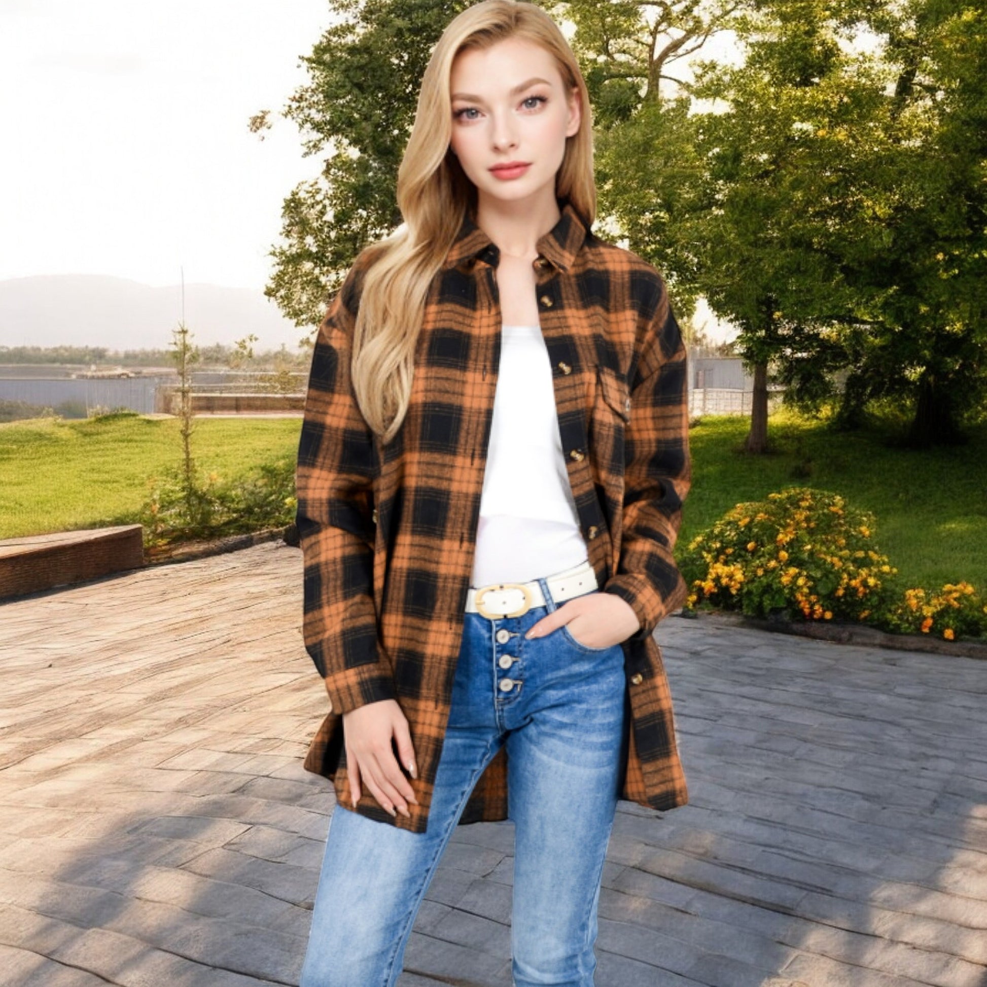 This long sleeve plaid button-up shirt jacket combines style and function, featuring a classic collared neckline and button-down front. Crafted from soft, cozy fabric, it's perfect for layering during cooler months. The relaxed fit allows for easy movement and all-day comfort. Ideal for casual outings, this versatile shirt jacket pairs effortlessly with jeans or leggings for a laid-back, trendy look.