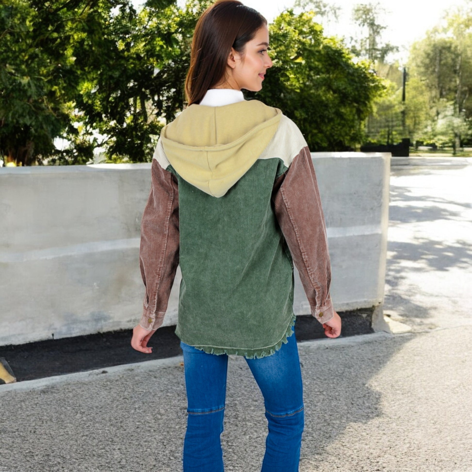 Anna-Kaci Women's Color Block Jacket with Attached Hood and Stylish Design