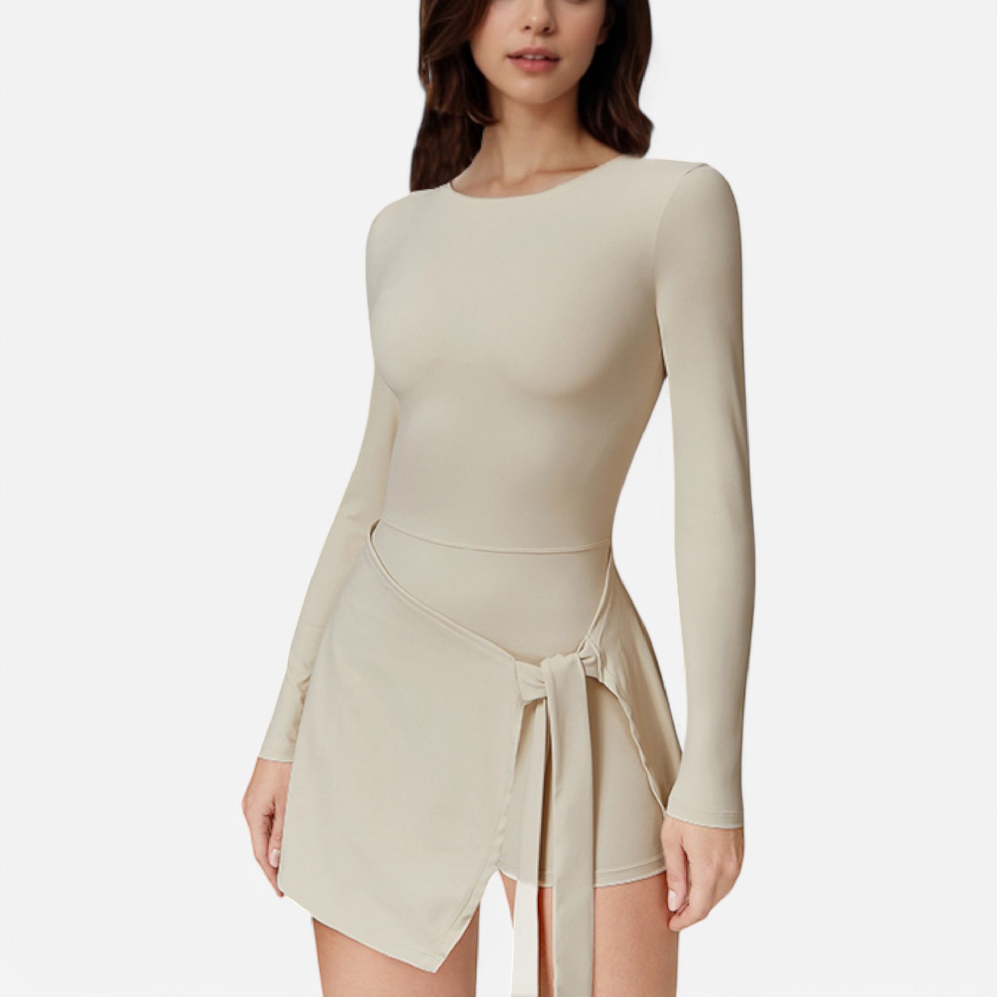 Anna-Kaci Women's Long Sleeve Bodysuit with Wrap Skirt Overlay