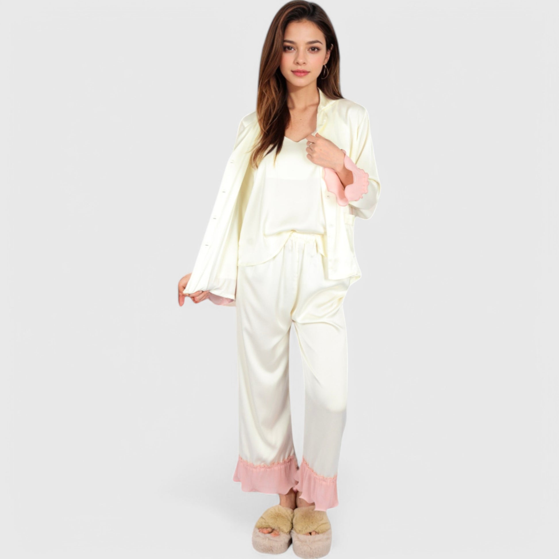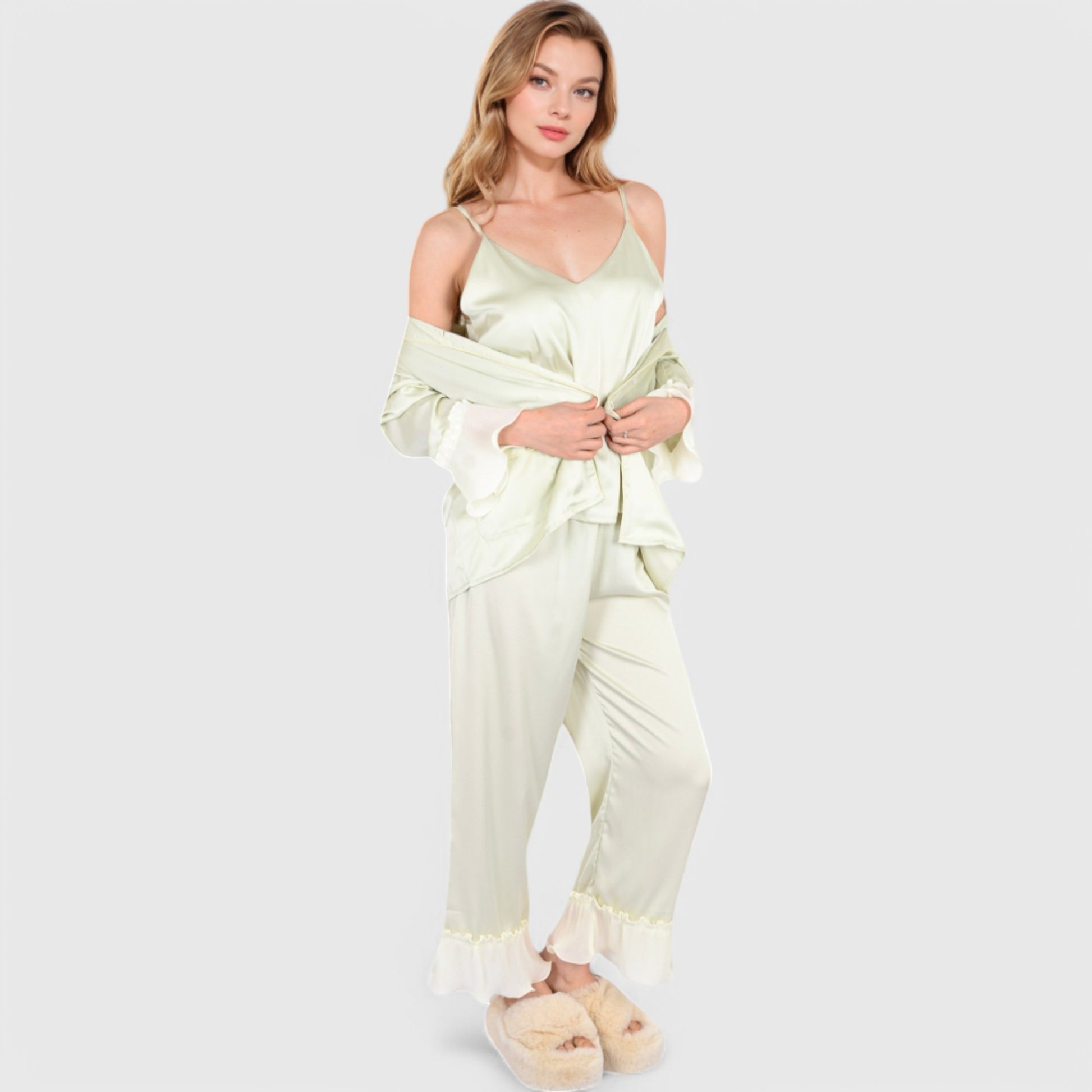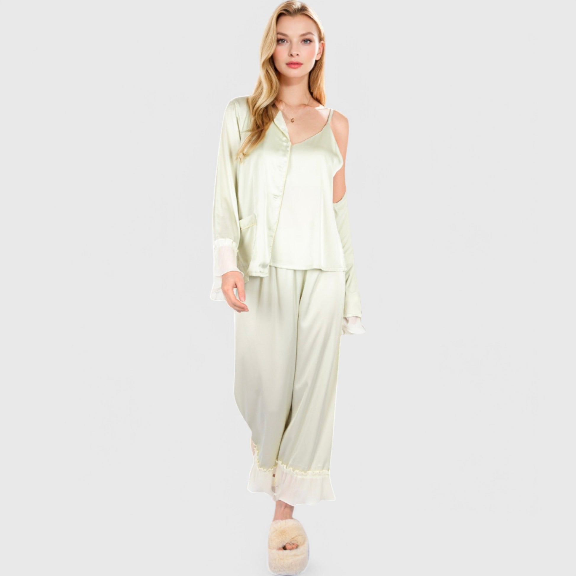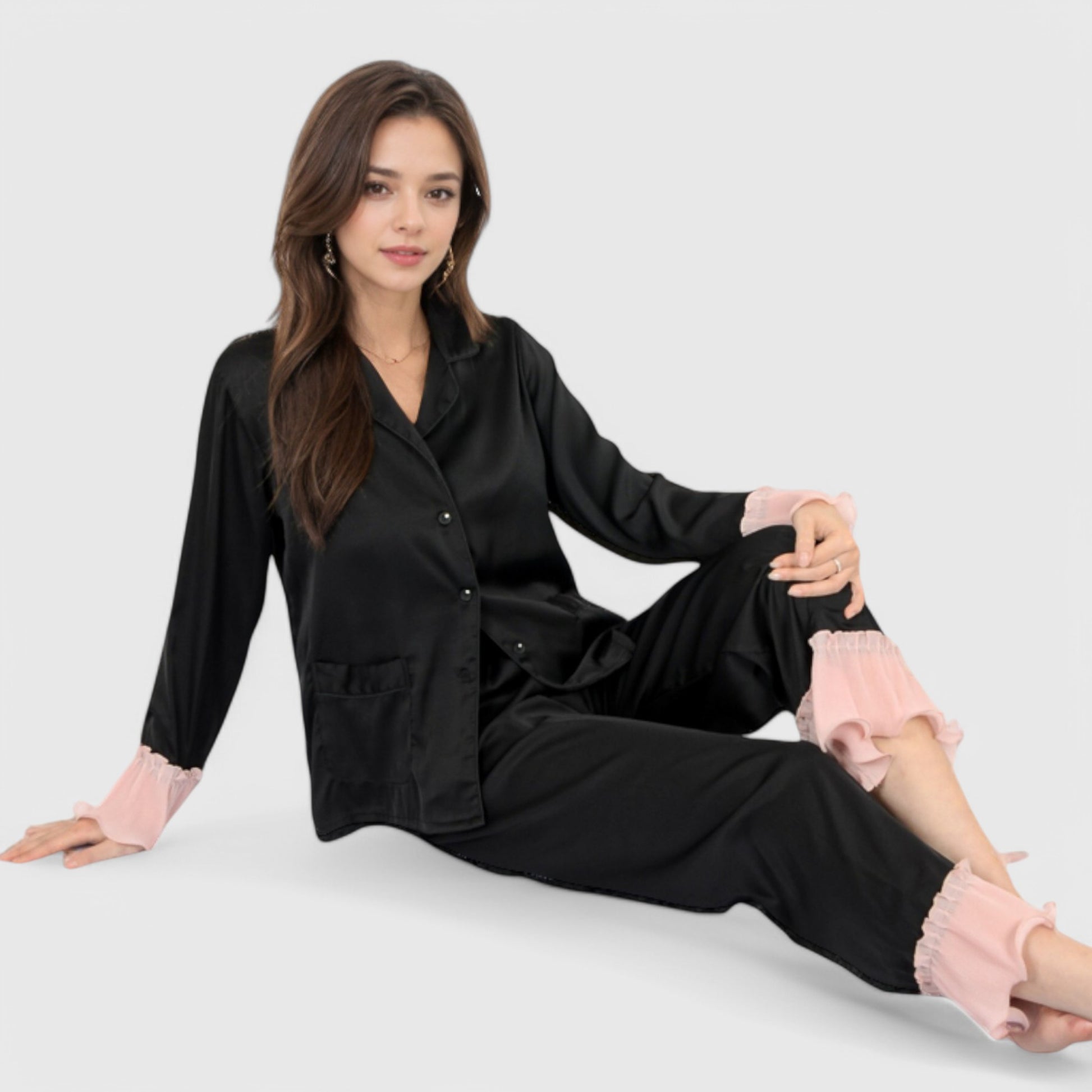 Anna-Kaci Lounge Women's Satin Pajama Set with Ruffled Cuffs and Button-Up Top
