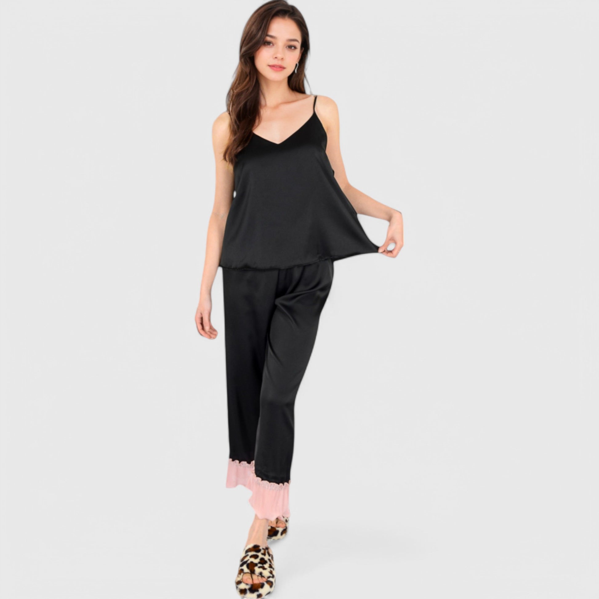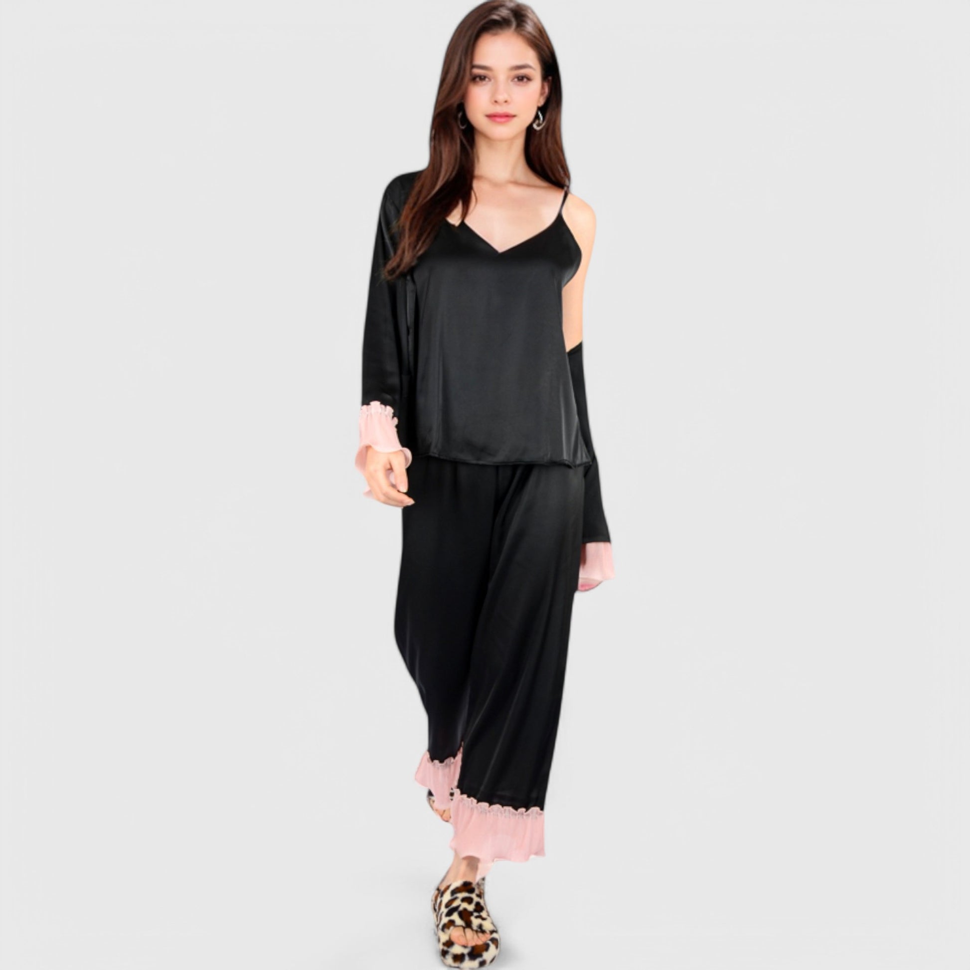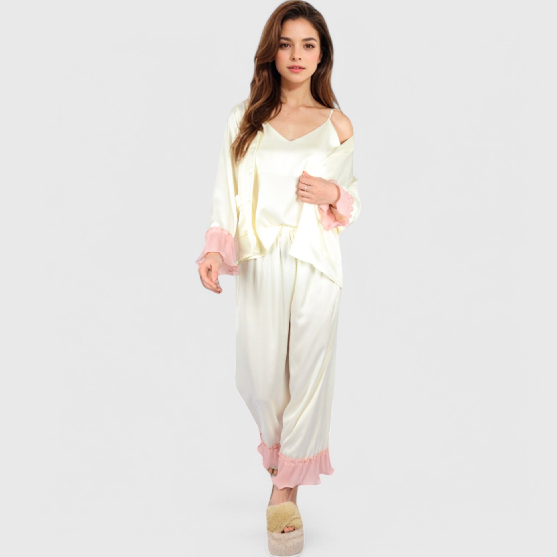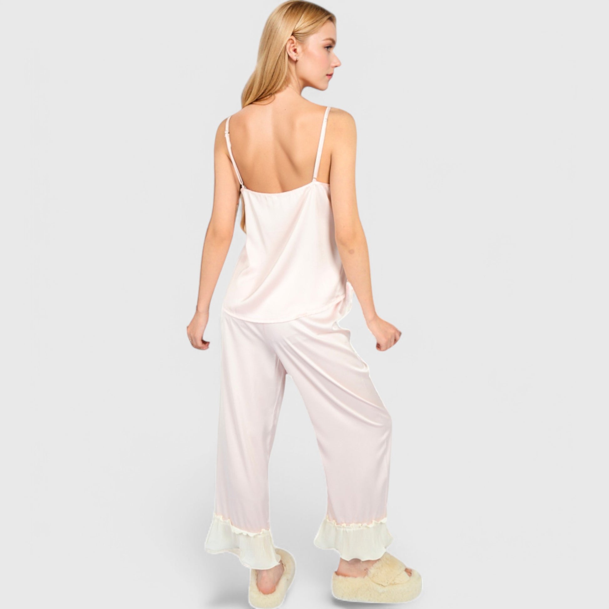 Anna-Kaci Lounge Women's Satin Pajama Set with Ruffled Cuffs and Button-Up Top