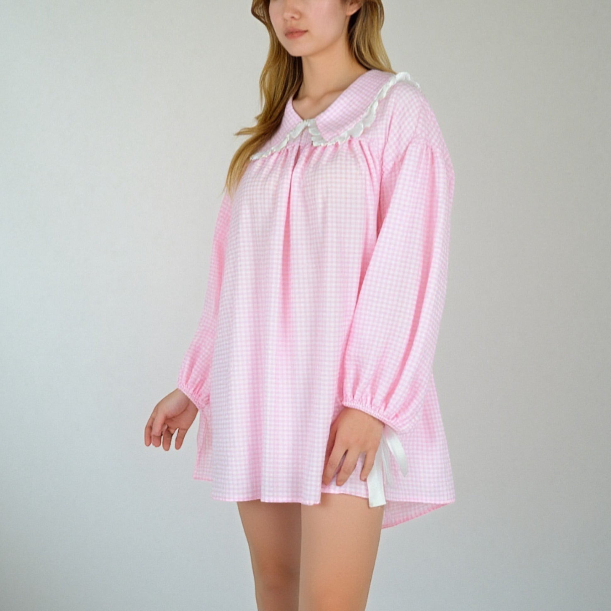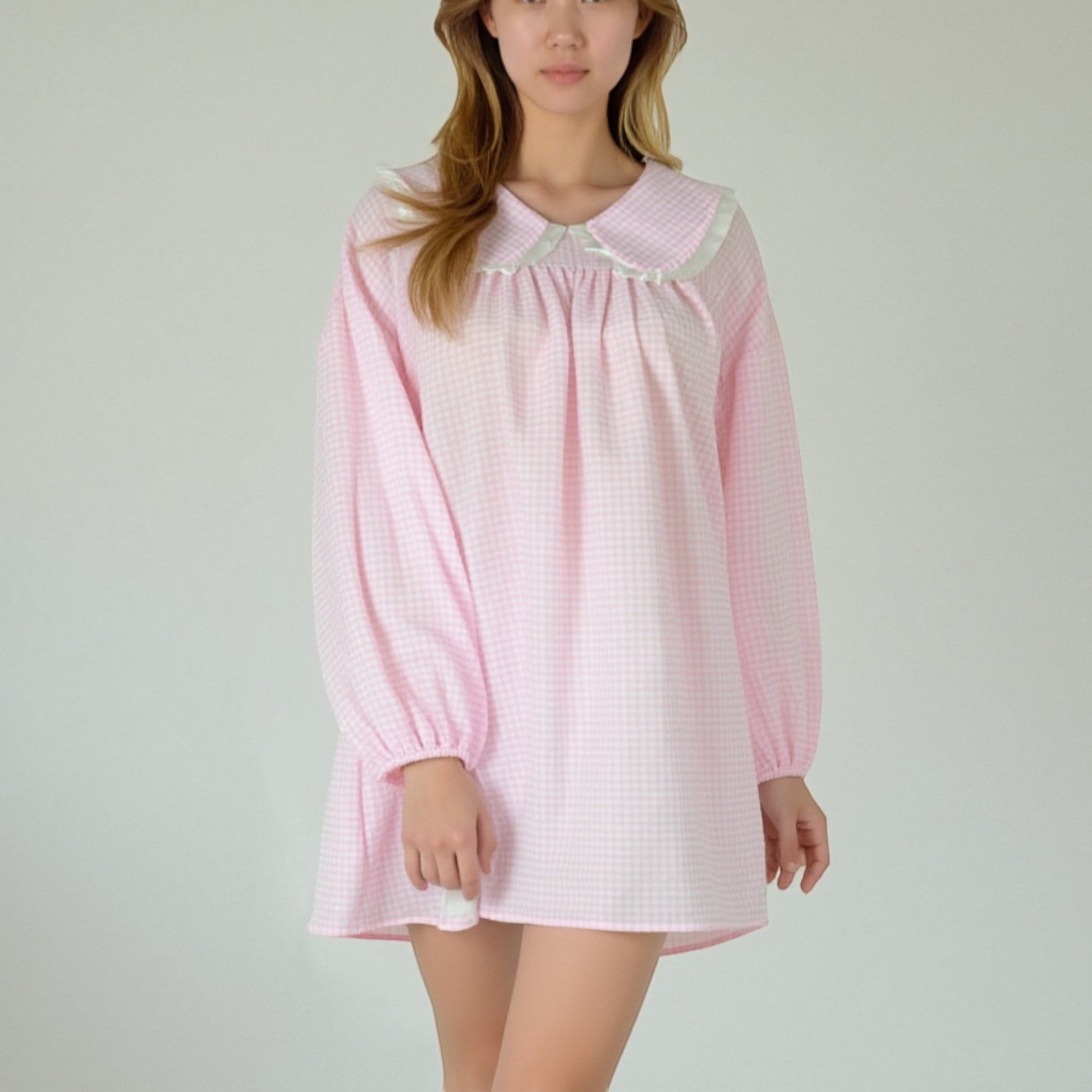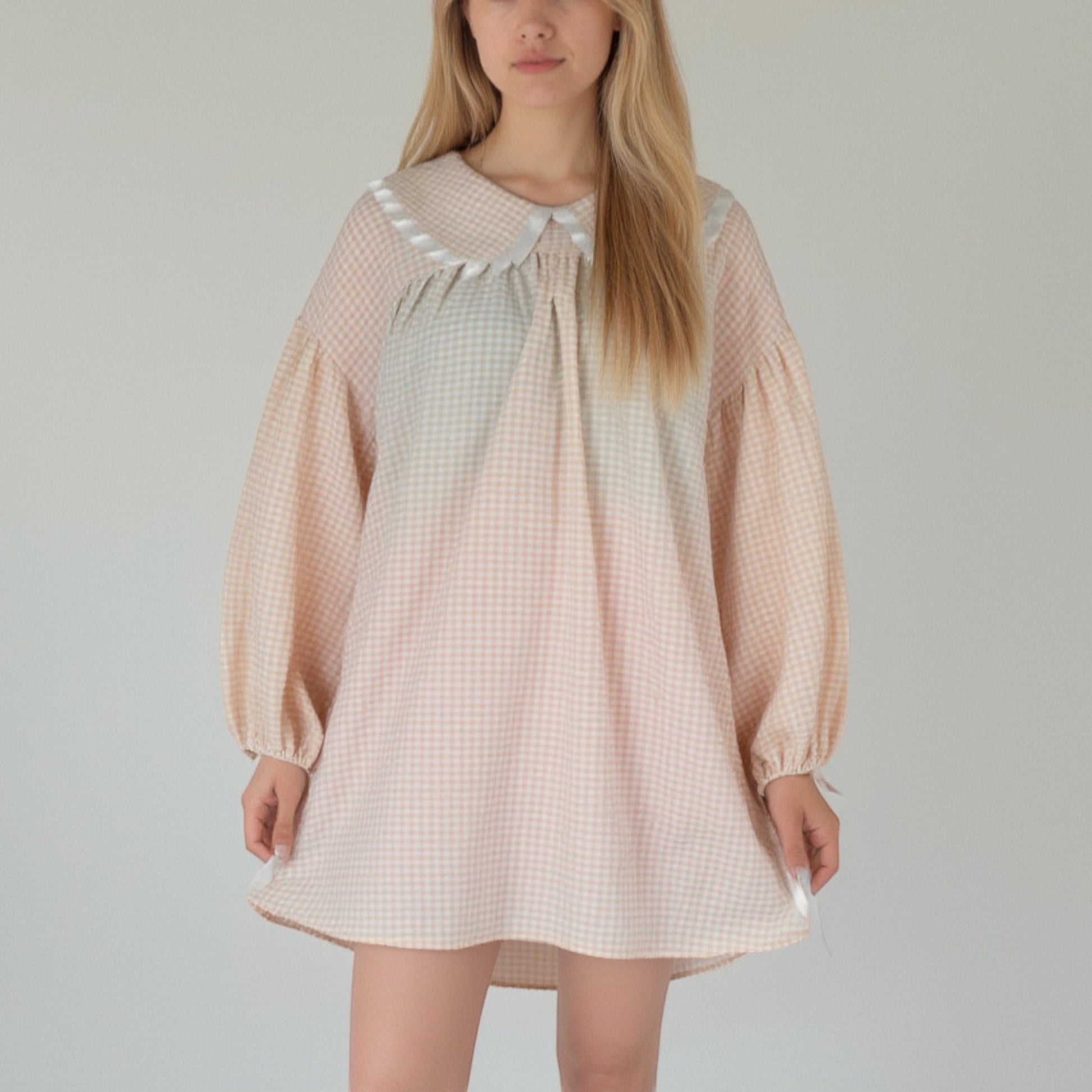 The Anna-Kaci Women's Gingham Long Sleeve Nightgown adds vintage charm to your loungewear wardrobe. Designed with a sweet Peter Pan collar and delicate ribbon trim, this nightgown features an airy silhouette and soft fabric for all-night comfort. The relaxed fit and voluminous long sleeves enhance its cozy, nostalgic appeal. Perfect for lounging, this timeless piece brings a graceful, feminine touch to bedtime routines.