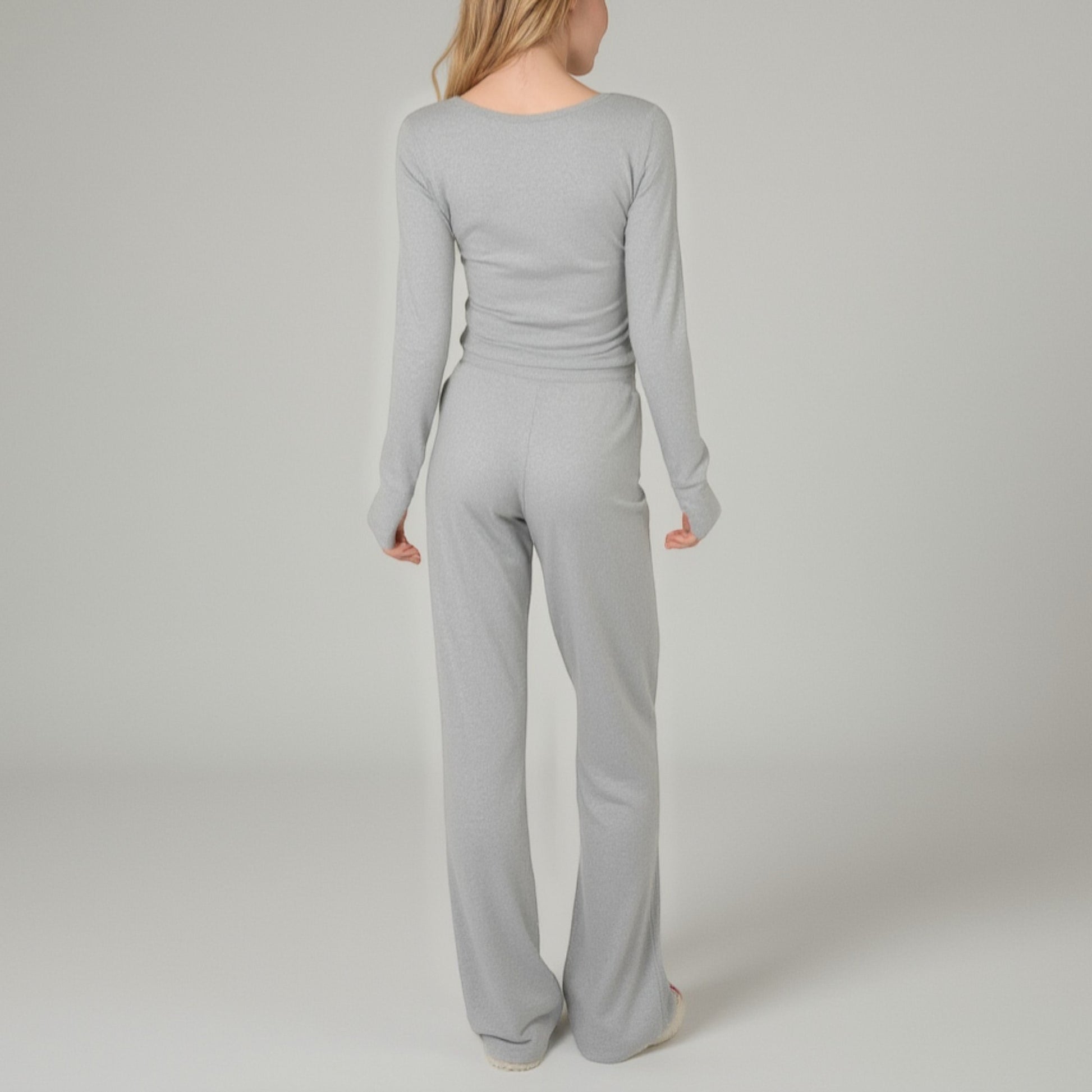 Anna-Kaci Lounge Women's Lace Trim Long Sleeve Lounge Top and Jogger Pants Pajama Set with Drawstring Waist