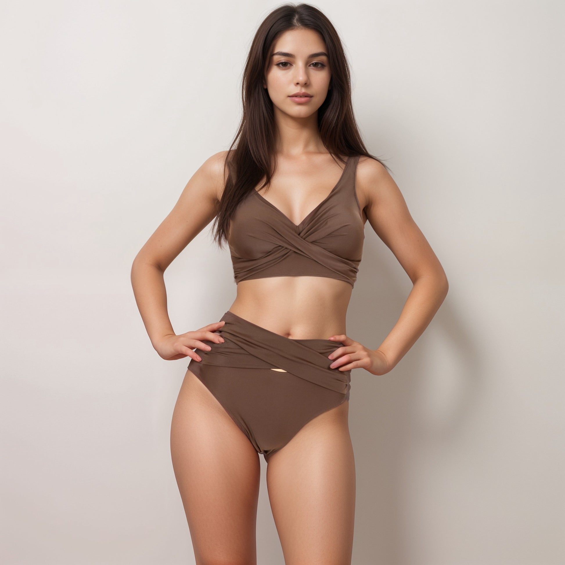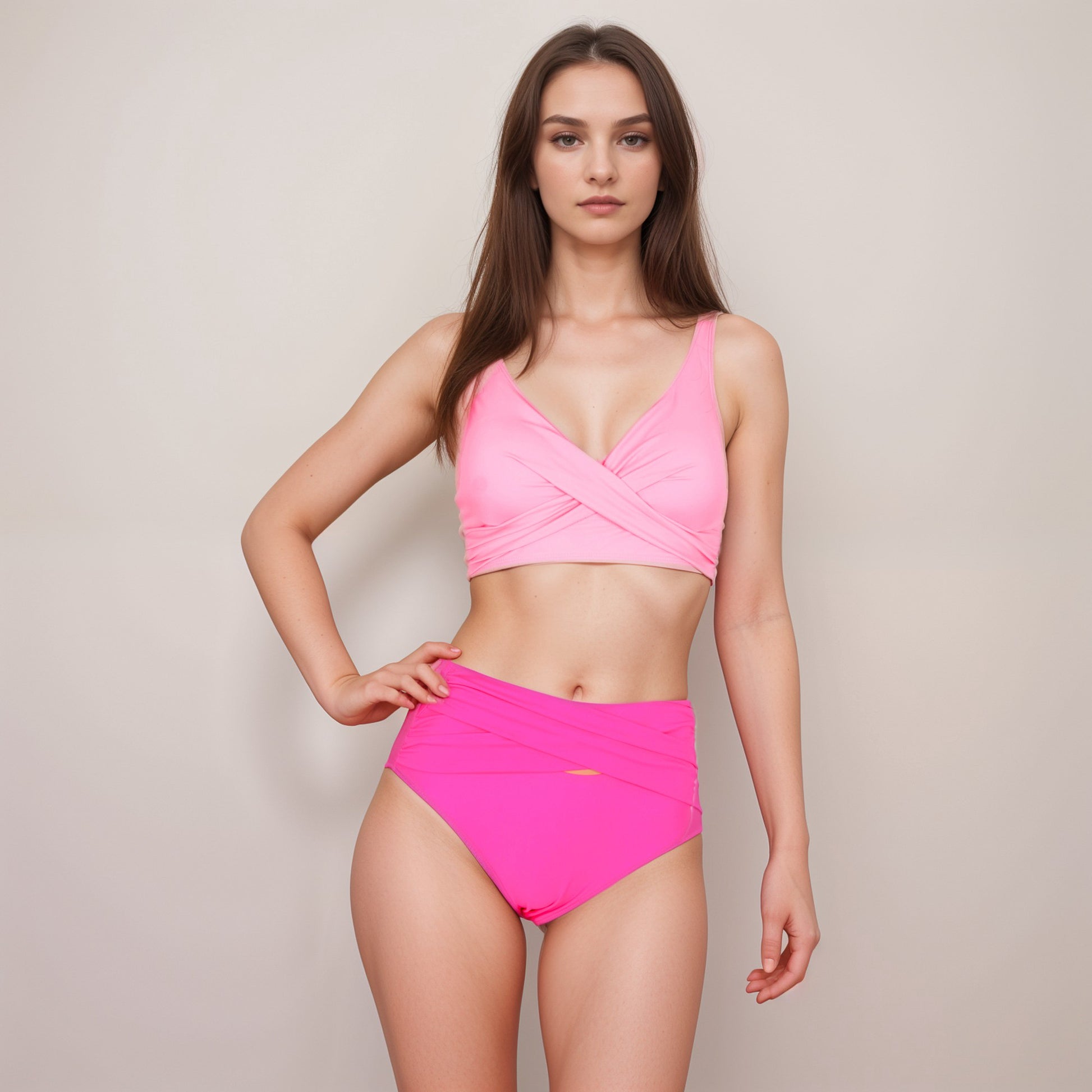 Anna-Kaci Swim Women's Crossover Bikini Set with Wide Strap Top and High Waist Twist Front Bottoms
