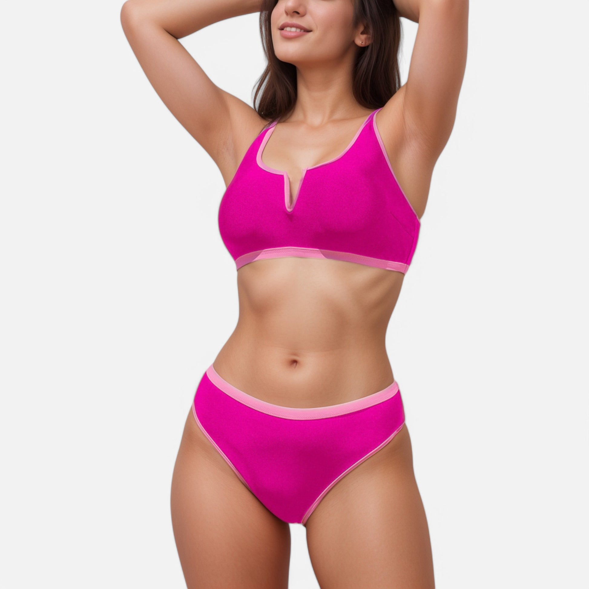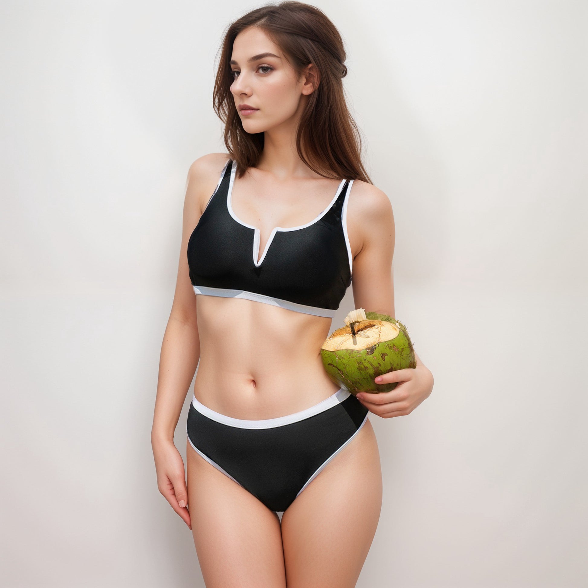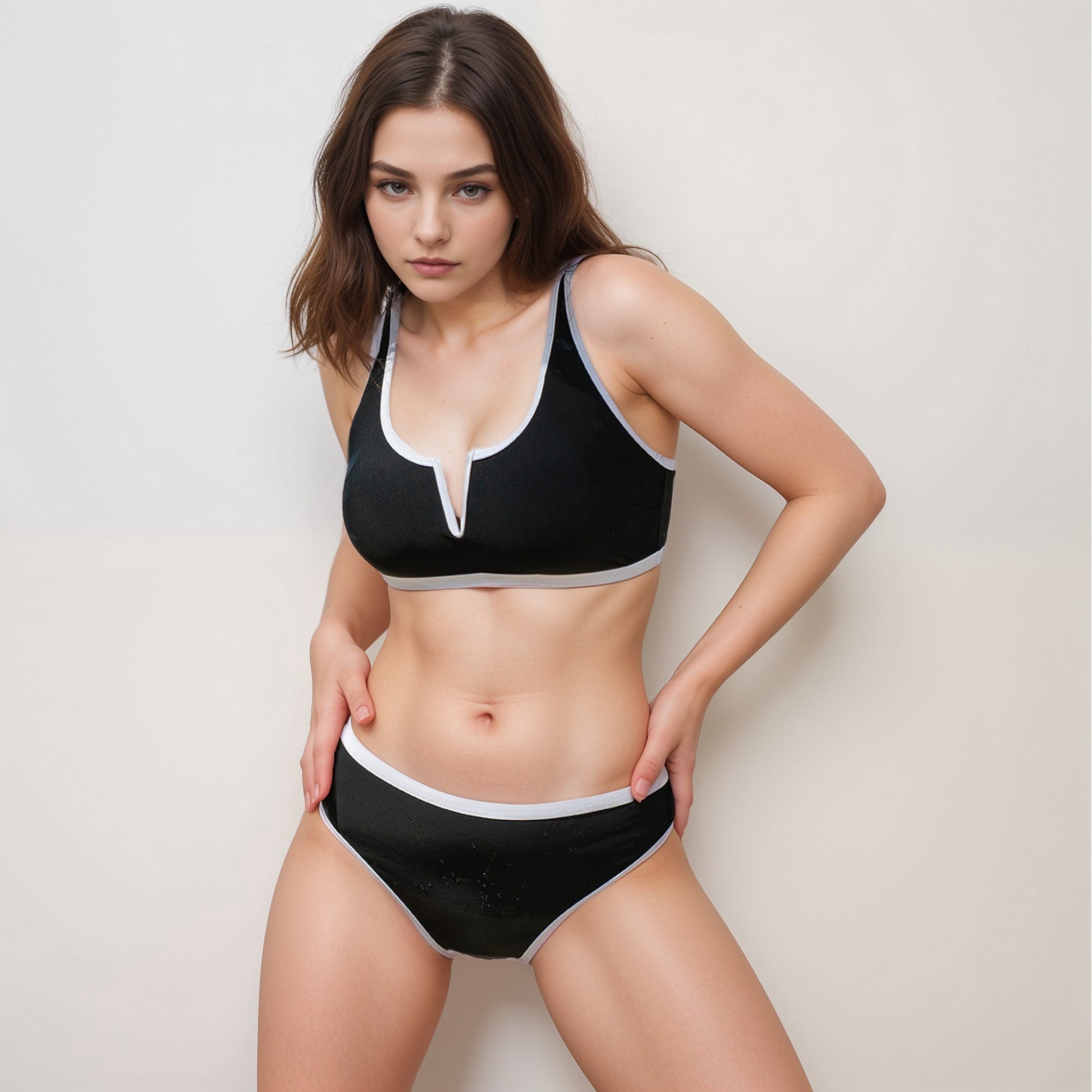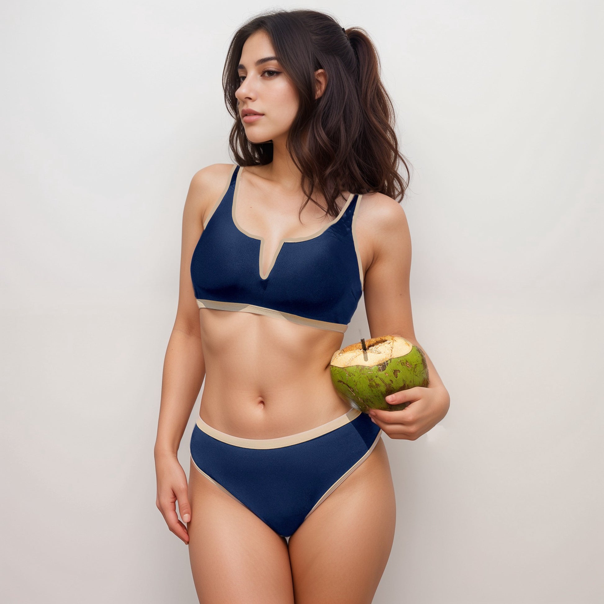 The Anna-Kaci Women's Contrast Trim High Waist Bikini Set brings a sporty twist to classic swimwear. Featuring a sleek V notch neckline and crisp contrast trim, this top provides a secure yet stylish fit. The matching high waist bottoms offer full coverage and a comfortable rise, ideal for all-day beach or poolside wear. Designed with smooth, stretchy fabric for flexibility and flattering support.